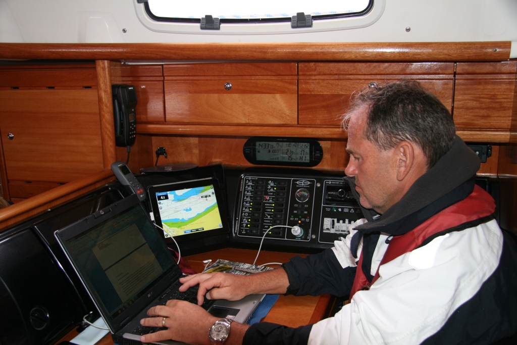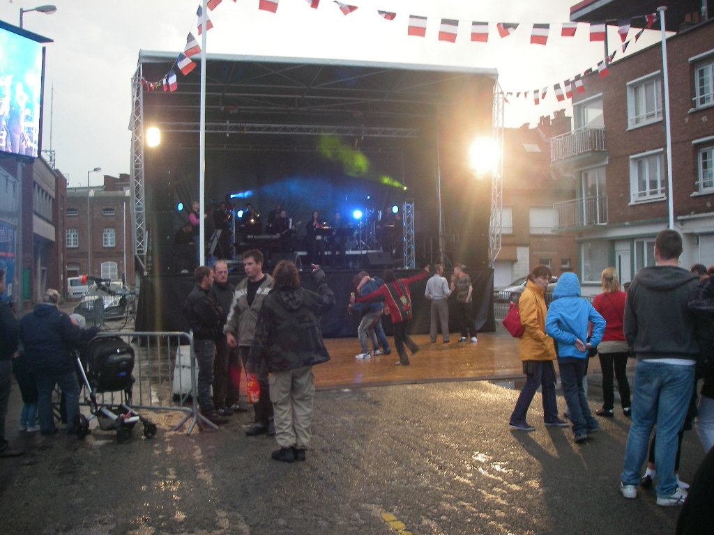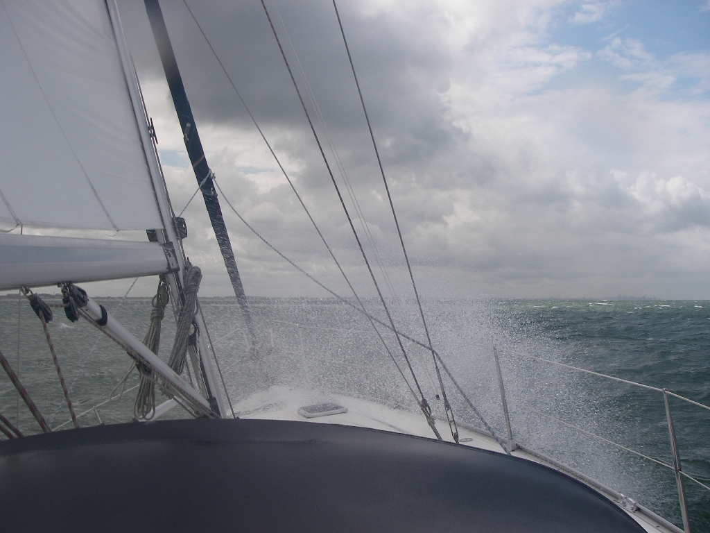 Het begint een beetje een ritueel te worden: ik sta vandaag om 4 uur op, bespreek het weer met Marion en Mark en dan mag ik weer een paar uur gaan slapen. Vandaag was de beslissing niet zo moeilijk die had ik zelf ook wel kunnen nemen (stortregen) maar Mark wil graag overal in meebeslissen. De regen bleef aanhouden, dus ben ik maar broodjes gaan halen. Na een ruim en rustig ontbijtje hebben we de laatste weerberichten bekeken: afnemende wind kracht 2 tot 3, we gaan koers zetten naar Duinkerke. Op zee was het al snel duidelijk hoge golven en veel wind. Een zeilboot, die iets eerder dan ons was uitgevaren, kwam met een om de stag gedraaid fok weer terug de havenmond in. Wij hebben het grootzeil uitgezet samen met de motor. Halverwege nam de wind nog meer toe en hebben we het grootzeil gereefd, waarbij Marion met de lifeline naar de mast ging. Daniel zorgde voor de navigatie. Al met al hebben we allemaal een zoute douche een paar keer over ons heen gekregen. Nu nog maar 3 mijl varen door een smal geultje tussen ondieptes met de wind pal tegen. Zo laveren we naar de haveningang van Duinkerke. Marianne heeft via de marifoon een box geregeld bij het havenkantoor en eenmaal aangelegen hebben we een reservering voor een tafeltje gemaakt bij de Yachtclub. Even het zout er af douchen en dan is het tijd voor borrelen. Oops, wat gebeurt er nu op de steiger, haaks op onze boot, precies in Marion’s uitzicht een Duitse stripper een soort oude Chippendale die z’n piepje uitliet, we konden duidelijk zien dat het frisjes was buiten. Het etentje bij de Yachtclub was weer prefect ondanks dat ze een kleine kaart serveerden in verband met quatorze juillet, een Franse feestdag. We vroegen aan de ober of er nog speciale festiviteiten zijn en hij vertelde dat er een groot vuurwerk zal zijn. Na de maaltijd zijn we naar de muziek die we hoorden gewandeld en hebben daar naar een goede band met eerst nog weinig publiek geluisterd en er waren ook een paar dronken clochards die probeerden te dansen. Om 22:30uur was het erg druk en werd het vuurwerk aangekondigd wat bijna een half uur duurde. Wat we niet hadden verwacht maar het was best spectaculair. De crisis heeft nog niet toegeslagen in Frankrijk. Na het vuurwerk hebben we onze bedjes opgezocht de wekker gaat om 2:00uur af, morgen richting Engeland?