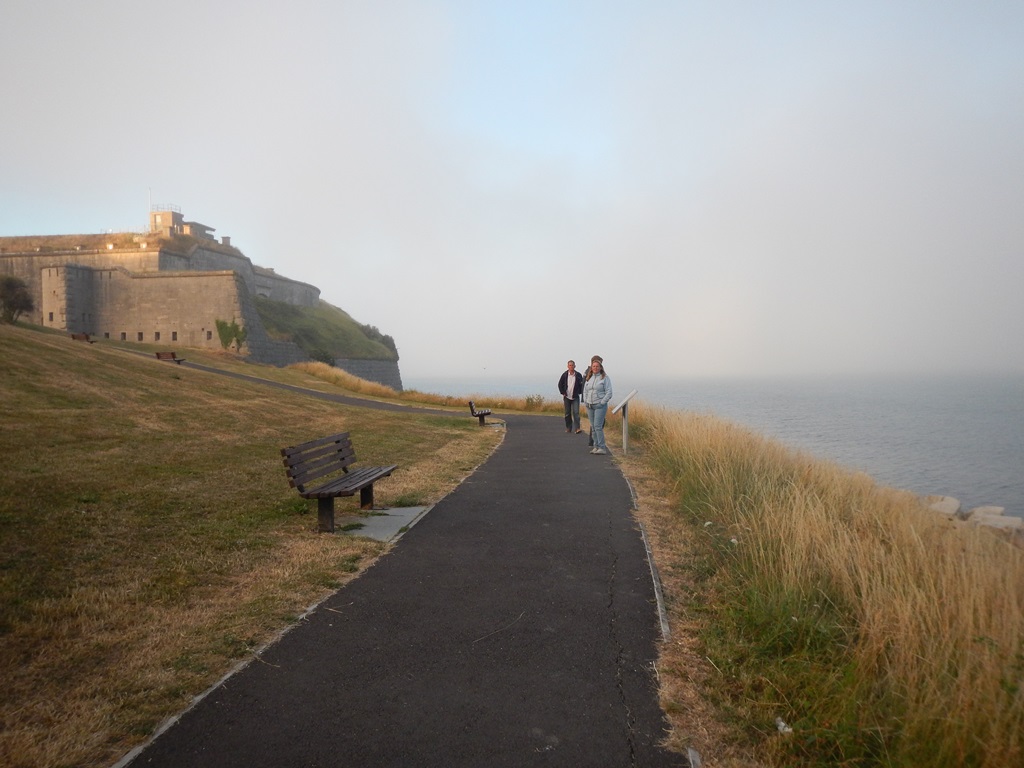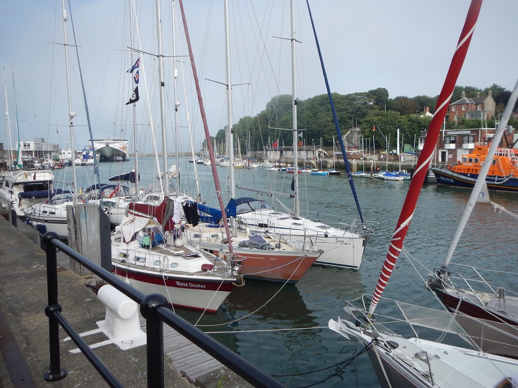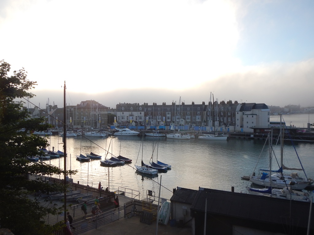 Rustig begin van de dag. Waterkampioen lezen, watertanks vullen, bakkie koffie, ontbijtje en om 9 uur trossen los, we gaan naar Weymouth. Op de Solent was het eerst zonnig, korte broeken weer. Toen mistig, lange broeken aan en een stukje voorbij de Needles brak het zonnetje weer door en was de mist verdwenen. Korte broeken gaan zo weer aan. Nou, de korte broeken bleven in de kast het werd weer mistig, de ene keer meer en dan weer minder, dus weinig uitzicht. Om 15:00 uur werden we opgeroepen via de marifoon en of we naar kanaal 08 wilden gaan. Wij vroegen ons af wat kan dit nu weer zijn? We bevonden ons in de “Firing Practice Area” en ze vroegen waar we heengingen. Wij antwoorden dat onze bestemming Weymouth is. Wij moesten om niet geraakt te worden onze koers verleggen naar 260 graden, dus we moesten 30 graden afvallen en recht tegen de wind in. We hebben de zeilen gestreken en varen nu op de motor voorzichtig onder de kanonnenregen 😉 door. Pfff wat een spanning. Toen we uit de firing zone waren konden de zeilen weer op en met een flinke gang doemde de lange haven van Portland op. Nog een klein stukje en we zijn in Weymouth. Van de havenmeester kregen we een plekje langszij een andere boot. Wandelschoenen aan en Weymouth in op zoek naar een supermarkt. We eten voor de verandering eens een keer aan boord. Al wandelend langs de boulevard kwamen we een Fish and Chips tentje tegen en omdat we in Dartmouth al een restaurantje op het oog hadden, wilden we toch een keer fish and chips eten in Engeland. Als toetje zijn we een Macdonalds ingelopen voor milkshakes en macflurries. Toch nog even langs de supermarkt voor melk en wat beleg. Nadat we de spullen in de koelbox hadden gezet, zijn we door het park richting Fort Nothe gewandeld. Jammer genoeg was het te laat voor het leuke roeibootpontje dus de wandeling werd iets langer. Terug op de Just had Mark last van fleurterig Engelse meiden van een van onze boten naast ons. Ze zagen er niet uit, dus hij wist niet hoe snel hij alleen zijn hut moest induiken. Het was ondanks de dikke mist toch een afwisselende dag geweest, morgen naar Dartmouth hopelijk zonder mist.