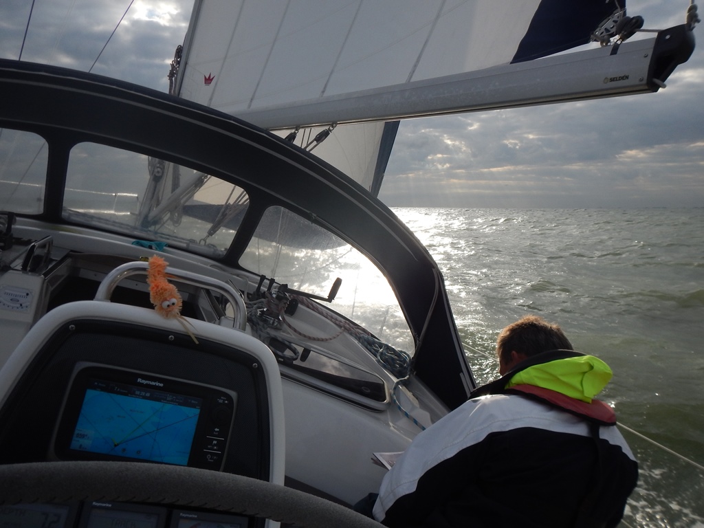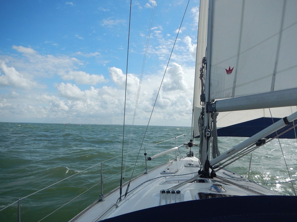 We mogen weer vroeg op, als we weg willen komen van onze ligplaats. Wekkertje ging om 6:00 uur en even voor 7:00 uur vaarden we uit. We hadden wind mee verwacht, maar we moesten hoog aan de wind varen. Met een lekker vaartje gingen we langs Zeebrugge, richting Nederland. Bij het ronden van Oostkapelle gingen we halve wind varen. Op naar de Roompotsluis, nog maar een paar mijl op zee deze vakantie. De Roompotsluis ging vlotjes. We konden gelijk naar binnen en de deuren ging achter ons dicht. Ook bij de Zeelandbrug kwamen we mooi op tijd aan en na 1 klein rondje gedraaid te hebben, ging die open. Op de Oosterschelde hebben we nog een klein stukje met de genakker gevaren. We gingen super hard, maar het begon harder te waaien, dus de genakker maar weer opgeruimd. Bij de sluis van Bruinisse hadden we pech. We konden net niet mee en moesten een uurtje wachten. Zo we hebben de haven in zicht nog een klein kwartiertje en dan is de vakantie voorbij. Morgen één keer uitslapen en dan alles opruimen en schoonmaken. We hebben deze vakantie veel nieuwe plaatsen bezocht, maar ook veel mijlen gevaren. Mede omdat we prachtig mooi weer hebben gehad met af en toe mist en tegenwind, maar bijna elke dag zon. Even wat feitjes, we hebben totaal 966,3 mijl gevaren, verste bestemming in Engeland: Dartmouth en in Frankrijk: Lézardrieux, de langste dag trip is geweest van Guernsey naar Deauville 17 uur en 20 minuten met een afstand van ruim 114 zeemijl. Totaal hebben we bijna 150 uur gevaren, en 2 nachttochten gemaakt. En in 3 van onze tochten totaal 12 dolfijnen rond de Just gehad. De gemiddelde snelheid was 6,09 knoop, we hebben 15 restaurantjes bezocht en 4 maal aan boord gegeten. Elke dag als het mogelijk was stokbroodjes gehaald, en heerlijke ontbijtjes gemaakt. Dit jaar voor het eerst GEEN English breakfast, want we zijn aan de lijn. In alle havens was het rustig en hebben we in een box gelegen. Behalve een impeller vervangen van het koelwatersysteem en de vuilwatertank doorgespoeld, hebben we geen problemen gehad. Al met al een geslaagde vakantie.