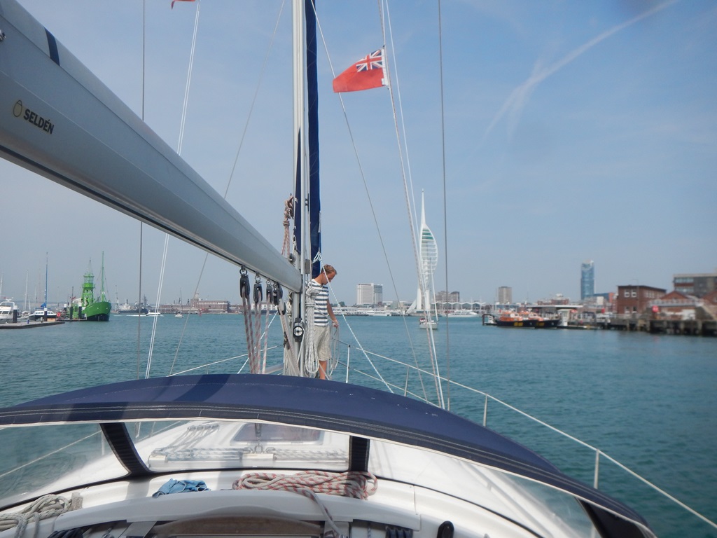 Nog even een naschrift van gisteren. Het was te pijnlijk om er gisteren over te praten, laat staan er over te schrijven. Ik ben gisteren tijdens het aanmeren in Portsmouth bij het afstappen van de boot uit m’n lievelings Helly Hanse korte broek gescheurd. Er was geen enige vorm van reparatie meer mogelijk, dus ik heb er snikkend afscheid van moeten nemen.