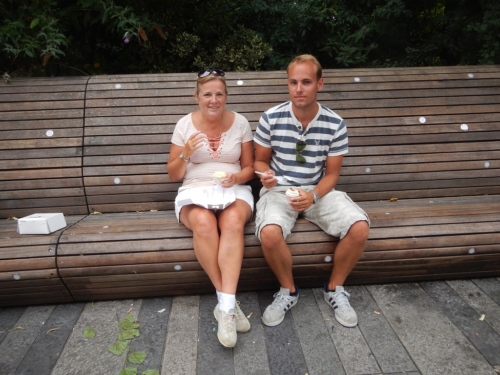 Internet werkt. Het usb-stickje was kapot, maar met een andere van Vodafone lukte het ook. De bemanning was blij en het luie zondagochtendtje kon beginnen met een laat ontbijtje en gekookt eitje. Toen al de internet verplichtingen gedaan en gelezen waren, zijn we naar de Asda gegaan om een beetje proviand in te slaan. De ijskast moet wel gevuld worden, want vanavond komen Mark en Marion bij ons aan boord. Ze komen vanaf St. Petersburg waar Marion 3 weken en Mark 1 week hebben gezeild op de Baltic sea en wat Russische cultuur op gesnoven hebben (Zwanenmeer ballet en winterpaleizen). Na een gezonde fruitlunch zijn we naar Brighton stad gewandeld. Op de Lanes en de North Laine was het gezellig slenteren en we hebben daar lekker ongezond gedaan. Cupcakes, chocoladetaart, ijsjes en als dinner een dubbele hamburger bij de Wetherspoon. Maar de wandeling heen en terug naar de Just is anderhalf uur wandelen, dus een ongezonde dag mag vandaag wel. Terug aan boord lekker lui met de beentjes van de vloer wachten op Mark en Marion die rond 23:00 uur aan boord komen. Zal wel een latertje worden met alle verhalen die die twee meebrengen.