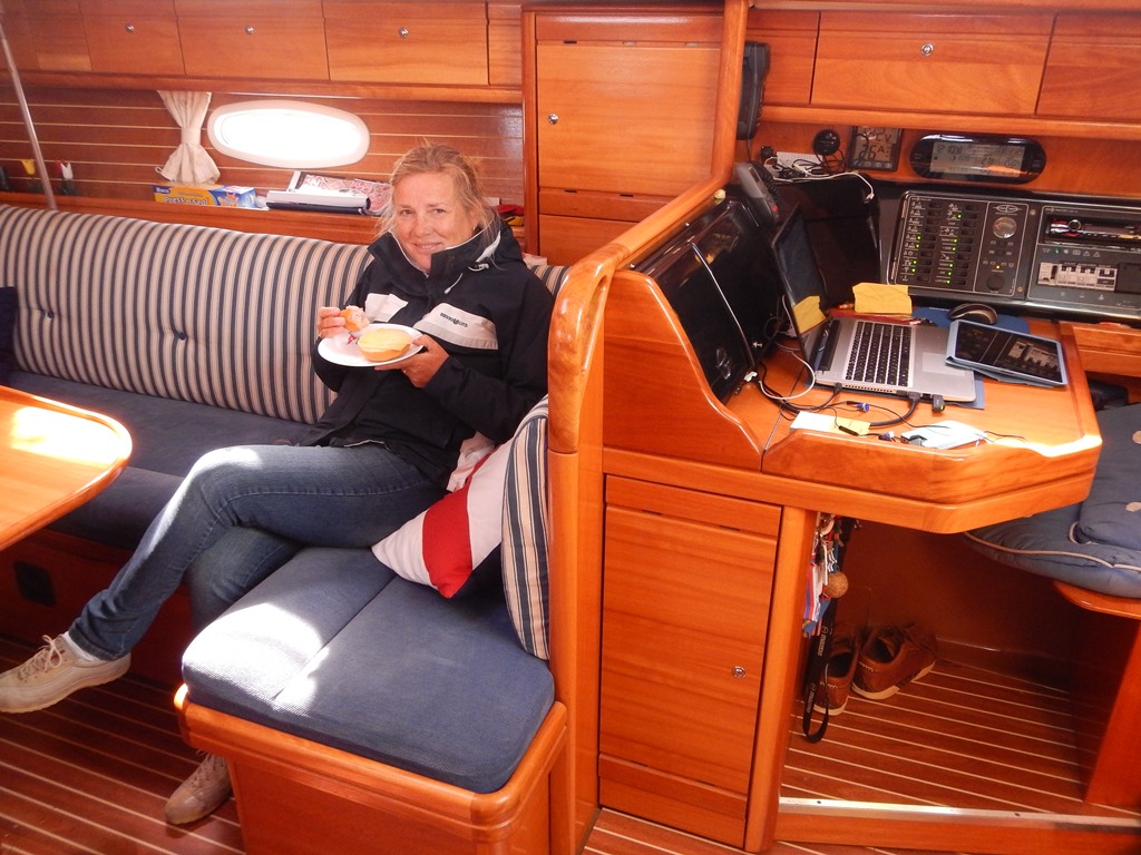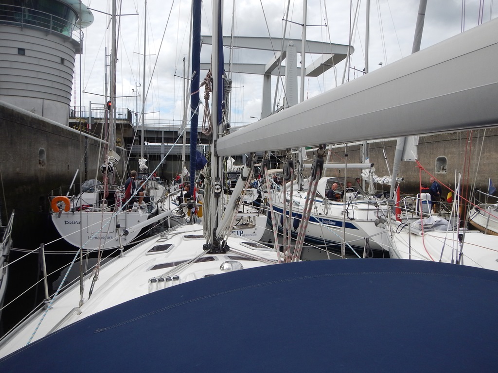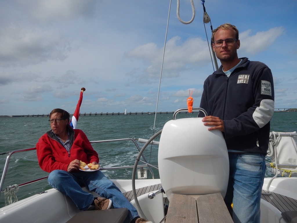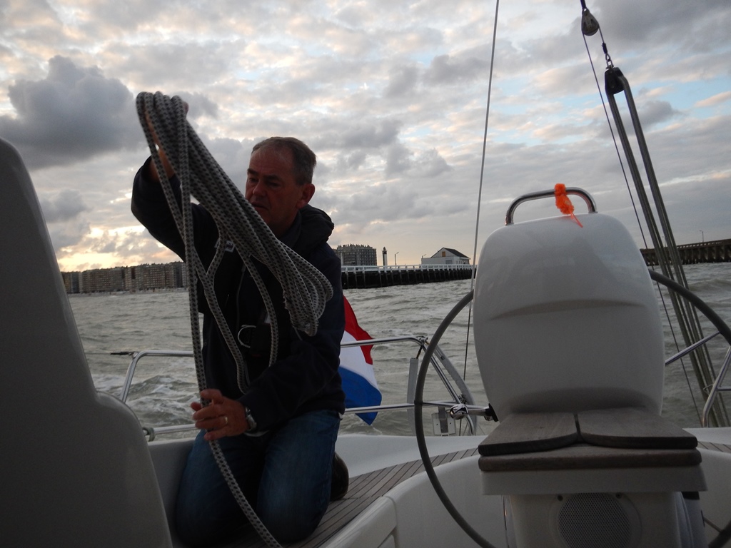 7:00 uur was bijna de gehele crew compleet aan dek, maar waar was Sonja. Deze keer heeft ze dik verloren. Zoals altijd was het uitvaren tussen de pieren van Blankenberge een hobbelige onderneming, maar niet alleen dit stukje maar tot de Roompotsluis hadden we last van een flinke deining. Tot ter hoogte van Vlissingen hebben gezeild, maar de wind kakte in en de stroom begon tegen te werken en onze snelheid van eerst ruim 8 knopen was nu nog maar 5 knopen. We hebben de motor mee laten helpen om toch iets meer dan 6 knopen te varen. De Roompotsluis stond open voor ons, snel alle zeilen gestreken en met 3 andere bootjes werden we geschut. Om precies 12:00 uur vaarden we de sluis uit, nog 2 obstakeltjes te gaan. 13:26 uur net te laat om mee te kunnen door de Zeelandbrug, dan maar een paar rondjes draaien en de opening van 13:40 uur afwachten. Op de Oosterschelde gingen we op het fokje super snel naar Bruinisse waar het gelukkig niet zo druk is. Daniel legde de Just netjes langszij en na een kwartiertje mochten we de sluis in, wat altijd een gekrioel van bootje geeft. Ze willen het liefst allemaal te gelijk er in en zoals altijd heb je mensen die voordringen. We pasten precies tussen een rij van 2 boten aan stuurboord en 1-tje aan bakboord. Het was millimeter werk maar ook dat kan je aan Daniel overlaten. 16:00 uur varen we de sluis uit en zetten we koers naar Port Zelande. We hadden de wind op de kop, dus geen zeilen meer. Precies 18:00 uur draaide we de box in van onze thuishaven, einde van een leuke vakantie. Alles wat we wilden doen, hebben we volgens onze planning gehaald. Zelfs enkele dagen in Londen, waar we toch onze twijfels over hadden of we dat met de weersvoorspelling (tropische storm Bertha) wel zouden doen. Wij gaan morgen opruimen en in de komende tijd tot ergens juli 2015 plannen maken voor onze volgende vaarvakantie.