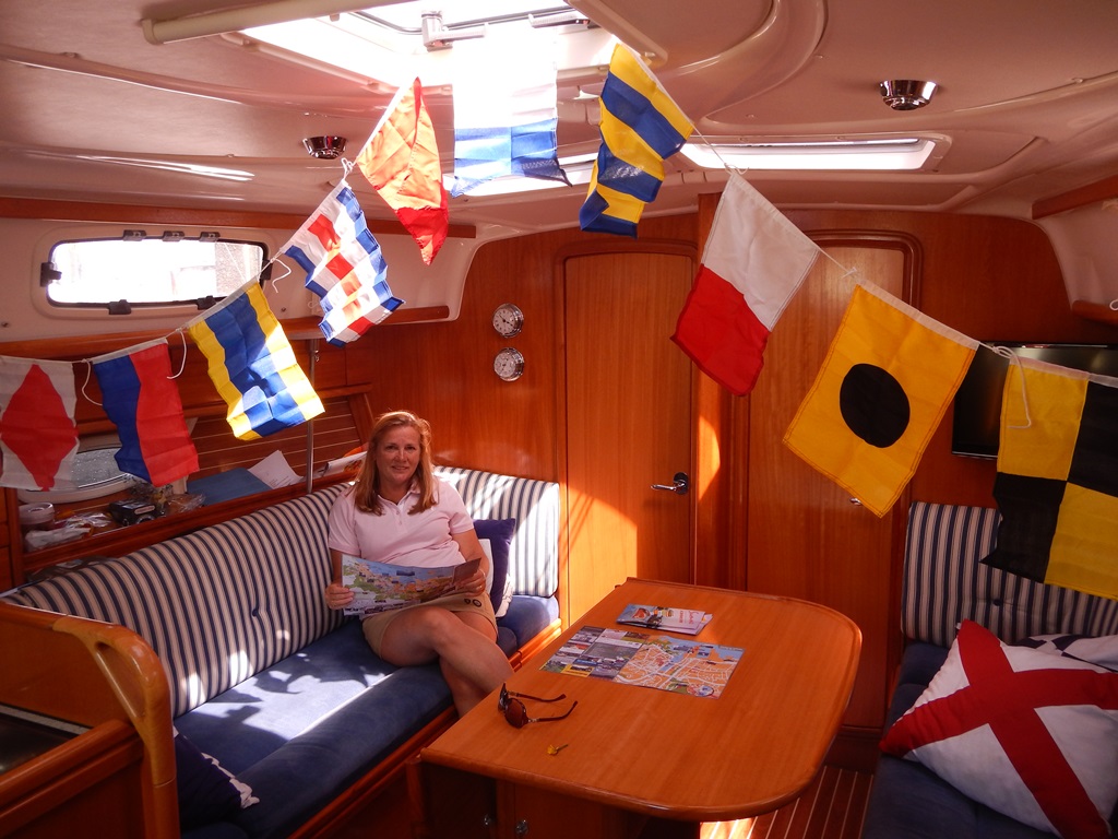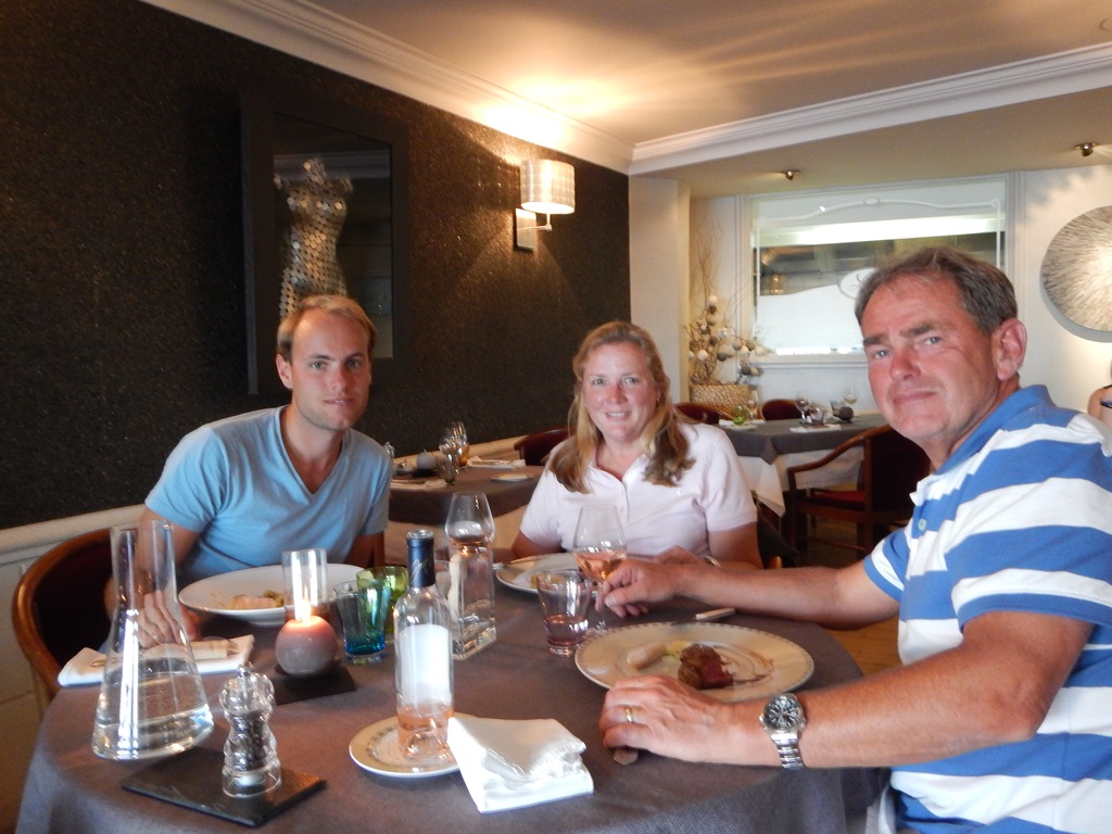 We beginnen rustig aan de dag, Marianne mag natuurlijk uitslapen en ik ga natuurlijk een baguette halen. We hadden plannen om met de bus naar Barfleur toe te gaan, maar de dienstregeling was heel erg ongunstig. We hebben eerst een verjaardagsgebakje met koffie gedronken en dan gingen we een Frans internetkaartje regelen, zodat we weer online zijn. Pfff, dat was een moeilijke klus. Eerst een simkaart kopen bij Orange, dan bij een tabacerie een voucher kopen. Met vriendelijke hulp van de receptioniste van het havenkantoor is het gelukt om deze samen te voegen. Op naar het office de tourisme voor info over de regio. Het andere plaatsje wat we op het oog hadden, viel ook af want er was weinig aan. Dan maar een lange en steile wandeling in Cherbourg, wat ons een mooi uitzicht gaf over de totale kustlijn. Daarna zijn we door de straatjes gaan wandelen en wat plaatselijke winkeltjes bezocht. Tijdens het wandelen hadden we ook bij diverse restaurantjes gekeken voor Marianne’s verjaardagsetentje. Met hulp van Tripadvisor hebben we gekozen voor het restaurant Le Vauban, wat op nummer 1 stond en dat was een meer dan prima keus. Als aperitief probeerden we de Normandische cider uit. Niks dus. De gerechten waren perfect en ook de opmaak van de borden was erg mooi. Lekkere wijn erbij. Het toetje was top. Op de Just aangekomen wilden we nog door gaan feesten, maar na bestudering van het getij en de route van morgen zijn we toch maar een klein aantal uurtjes gaan slapen. De wekker gaat om 3:00uur af.