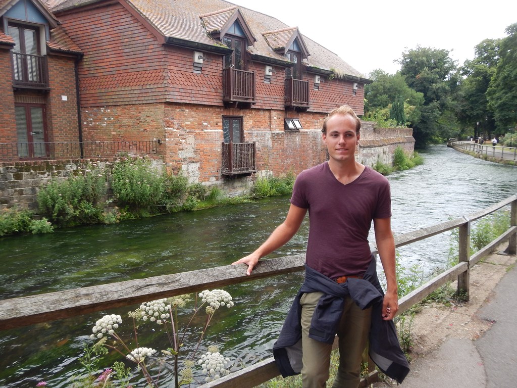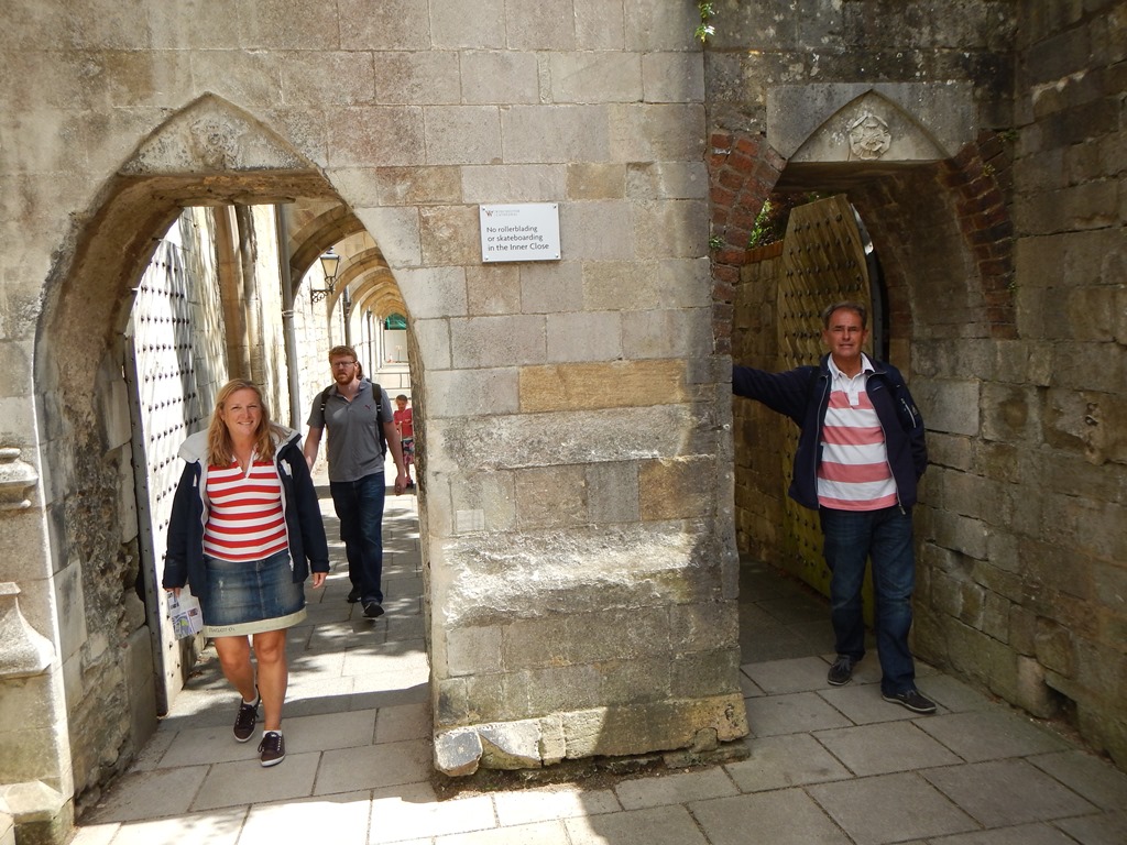 Vandaag gaan we wat historie snuiven. De ochtend deden we op ons gemakkie. De faciliteiten van de marina zijn heel nieuw en luxe. Naast een föhn is er zelfs een hairstraightener voor de dames. De crew sliep uit en ik heb de ochtend gebruikt om naar de Lidl te wandelen om daar flink de proviand aan te vullen. Toen ik terug kwam was de tafel gedekt en kon ik gelijk aanschuiven. We wandelden 10 minuutjes naar het busstation in het stadcentrum, waar we buslijn 1 namen naar Winchester. Dit was de vroegere hoofdstad van Engeland in de tijd van King Alfred circa 1060. Er zijn nog heel wat middeleeuwse bouwsels. De bussen ernaartoe zijn hier ook luxe: gratis WiFi en in de rugleuningen een usb-oplaadpunt en dan is het ook nog eens spotgoedkoop. Een klein uurtje rijden we door prachtige glooiende landschappen en langs mooie cottagevilla’s. In Winchester hebben we ons als toeristen gestort op een route langs alle bezienswaardigheden. Een groot beeld van King Alfred, een snelstromende riviertje dat langs de middeleeuwse stadsmuren liep en ons bij het huis van de Bisschop van Winchester bracht. Door 2 stadspoorten heen naar de kathedraal, naar het historisch museum en als hoogte punt de Great Hall met de ronde tafel van King Arthur. We wilden hieraan een broodje eten, maar hij hing aan de muur. Het blijkt dat heel het verhaal van de ronde tafel een mythe is en dat de tafel door Hendrik de achtste gemaakt is voor een feest. Maakt het uit. Wij hebben een hele leuke dag gehad in Winchester. We hebben nog wat geshopt in de High Street. Marianne kon nog voor twee truien slagen. Terug naar Southampton waar wij al een tafeltje hadden gereserveerd bij TGI Friday’s. Het was ons heel goed bevallen de vorige keer. Marianne koos voor een Sirloin Steak en Daniel en ik gingen voor hetzelfde lekkere Kipstrookjes en een Full Rack of Ribs, alles met de Jack Daniel’s saus. We hebben nog even op de kaart gekeken voor een toetje, maar daar konden we geen keus uitmaken. Dan maar voor een ijsje of ergens anders een toetje halen. Het werd ergens anders bij de Wetherspoon, waar we met z’n drieën twee toetjes zouden delen, Marianne vond een toetje voor haar alleen teveel, maar wat gebeurt er… ze neemt uiteindelijk van ons bijna ieder de helft van onze toetjes. Pff, de stap op de Just werd voor ons nu wel heel erg hoog door de diep in het water zakkende steigerpier.