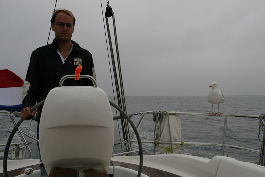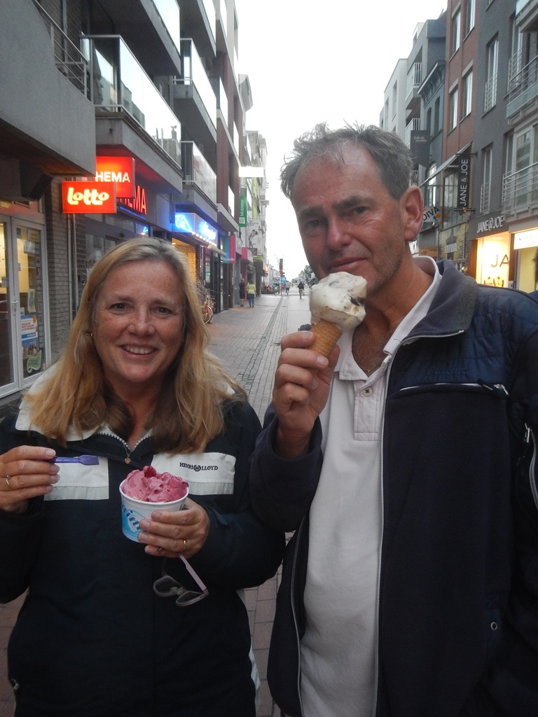 Het begint met een grijze lucht met miezerregen. Ik kwam net terug van werken toen ook bij Marianne en Daniel het wekkertje om half zes afliep. Snel allemaal een douche. We wilden (ik) rond half zeven vertrekken naar de haven. Door het slechte weer waren er veel files, dus onze planning liep gelijk al vertraging op. Ondanks dat we het laatste weekend alles aan boord hadden gestouwd, hadden we weer een volle auto, wat ook allemaal een plekje moest krijgen op de Just. Maar we hebben nu een extra bergplaats aan boord: de hut van Mark & Marion. Die hebben we nu maar ingebruik genomen als stouwplaats. Een half uur later dan de geplande 8 uur konden we de trossen losgooien. We zijn onderweg. Vol wind tegen en nog steeds dat miezerregentje waren we 2 uurtjes later in Bruinisse. Druk in de weer geweest met de Go Pro om het schutten te filmen met timelaps, die iedere halve seconden een frame filmt, zodat je uiteindelijk een hele snelle film krijgt van de doorvaart via de sluis. In de regen en met een gunstige wind, zodat de fok bijstond, waren we snel bij de Zeelandbrug. Helaas net voor onze boeg werd de brug gesloten, ondanks Marianne’s verzoek of we nog mee mochten. Op weg naar de Roompotsluis ging even de miezerregen over in wat dikkere druppels, maar aan de horizon klaarde het al op. Van onze meteorvrouw aan boord kregen we bevestiging dat ook tussen 14:00 en 17:00 er een zonnetje zal doorbreken. De Roompotsluis passeerden we rond 15:00uur. We waren op zee, de zwemvesten werden aangetrokken voor deze laatste etappe. De zee was flink hobbelig en toen we wat minder recht tegen de wind in vaarden, ging het fokje bij. We klokten snelheden van 10 knopen+ over de grond, dus we hadden flink de stroom mee. Bij het binnenlopen van Blankenberge was het laag water. Onze dieptemeter maakte overuren, hij gaf 1.60m. aan, met wat extra gas lukte het om met onze 1.90m. diepgang een extra geultje te maken tussen de pieren. Al schrapend over de bodem hebben we een ligplaats bereikt. Snel een Mexicaanse maaltijd opwarmen, die thuis al was klaar gemaakt. Voor ons is het een late maaltijd (21:00uur). Als toetje gingen we een lekker groot ijsje halen. Via de boulevard waar een avondmarkt was zijn we terug gewandeld naar de Just. We gingen gelijk naar bed, want morgen hebben we een tochtje van 75 mijl naar Dover.