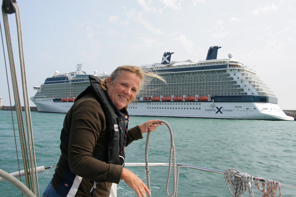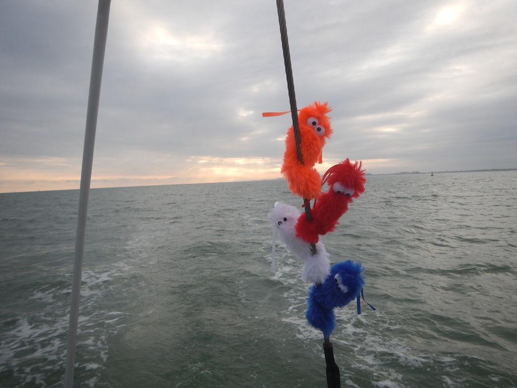 We hadden de wekker vroeg gezet, maar niet om 3:52uur. Shit, weer het alarm wat afgaat thuis. Altijd als we weg zijn krijgt Fransje het voor z’n kiezen om voor de zoveelste keer ons huis te controleren. Kost me weer een Hazelnoottaartje. Nu ik toch wakker ben en de wekker om 4:20 uur zal afgaan ben ik me gaan aankleden en heb de Just vaarklaar gemaakt. De rest van de crew druppelde ook uit bed en nu konden wel de trossen los op de geplande tijd van 5:00uur. Maar eenmaal op zee geen wind en ook geen golven. De motor gaat vandaag overuren maken en met een nog lichte stroming mee glijden we langs de Belgische en Franse kust. We hebben verschillende zeilvoering geprobeerd maar het beste was uiteindelijk de fok uitbomen en een beetje voor het windje te varen. Rond 13:00uur waren we bij de shippinglane en konden we die een beetje smokkelend haaks oversteken. Het boompje hebben we opgeruimd en met een nog steeds rommelig windje zijn we in de Engelse wateren beland. Na de shippinglane konden de koers verleggen naar Dover. 3 uurtjes later hebben we permissie gevraagd bij Dover Port Control of we de oostelijke ingang mochten invaren, maar we werden na de westelijke gestuurd, ook goed. We kregen een mooi plekje in de haven toegewezen tussen 2 veel grotere zeilboten in, waarvan er eentje nieuw uit de verpakking kwam. De haven heeft een goed WiFi-bereik en al snel waren we aan het internetten, facetimen en whatsappen. De klok is voor ons een uurtje terug gegaan, maar we waren door de lange dag moe. Dus gingen we vroeg naar de Wetherspoon voor een hapje en een Engels biertje. Toen we nog moeier en voldaan naar de boot liepen, vroeg Marianne aan Daniel of hij nog het nachtleven van Dover onveilig ging maken. Maar dat zag hij na het schrik moment van wat hij had gezien bij de Wetherspoon niet zitten. Hij was bang om die zonnebank bruine dame (jaartje of 60) gekleed in een roze hotpants met daarop een haltertopje, wat probeerde om haar dubbel D enigszins bedekt te houden, tegen te komen. Verstandig besluit want zo iets wil je toch ook niet als schoondochter. Op de Just hebben we de weersvoorspellingen gecheckt voor morgen, windkracht 7 en thundershowers dat wordt een extra dagje Dover of een later vertrek.