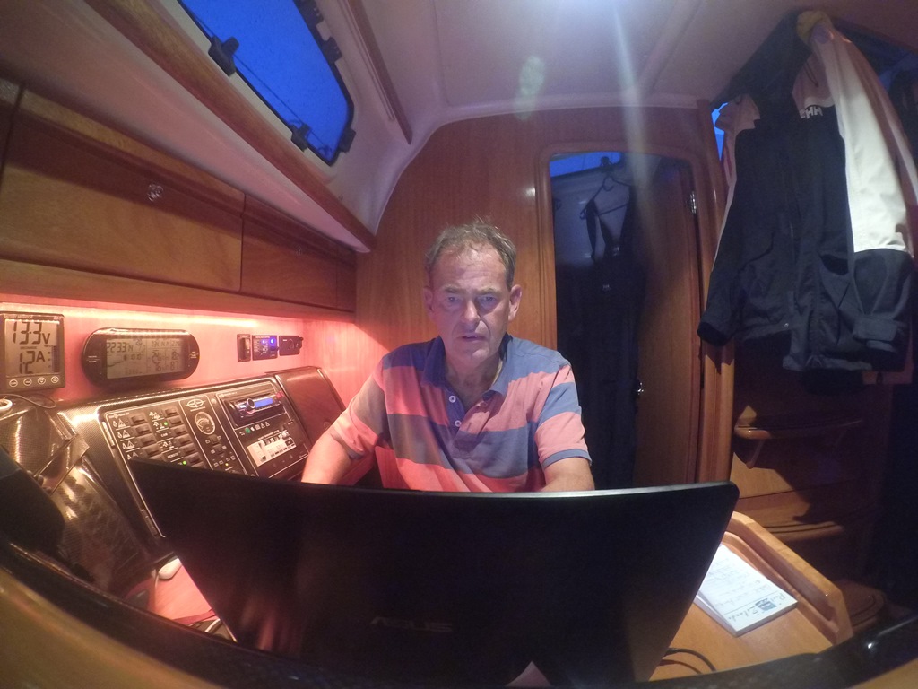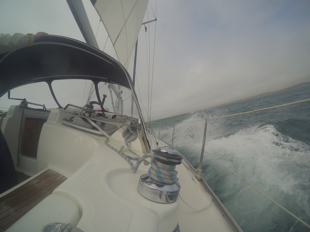 Vroeg uit de veren. De laatste voorbereidingen en nog even rustig ontbijten. We willen rond 9:00uur vertrekken. Een stuk later draaiden we de box uit, maar dat was een heel kort tochtje. Onze 1.90m diepgang was iets teveel en na nog geen 100 meter lagen we vast. Dan maar even een uurtje wachten en we gingen bij een grote Fairline langszij. Maar die waren er niet blij mee en een chagrijnige vent liet dat duidelijk blijken. Omdat we zeker een uur moeten wachten op iets hoger water, hebben we de Just maar even tijdelijk in een vrije box aangelegd. Om 10:45uur vonden we het wel welletjes en zijn vertrokken. Marianne had voor de zekerheid een zeeziektetabletje ingenomen en dat bleek een goede beslissing. De golven bouwden zich langzaam stiekem steeds hogerop en tussen top en dal van de golven was ruim 2/3 meter. Af en toe kregen we een aardige splash over de sprayhood en in de kuip. Bij de ‘Looe’ werden de golven nog iets hoger en daar vlak achter door de ondiepte waar we overheen waren, werden de golven die erop stuitten steeds onberekenbaarder. Maar de snelheid was goed met een top van bijna 12 knopen over de grond. Toen het water weer wat dieper en rustiger werd, konden we iets afvallen en halve wind varen. Nou het was wel een dagje met wat hoogtepuntjes. Marianne die heel de dag actief meezeilde en heel de reis in de kuip aanwezig was, hele hoge golven, een periode met 30 knopen wind (windkracht 7) en tot 3 keer toe een natte nek/rug door een overkomende golf. Moe maar voldaan draaiden we onze ligplaats in voor zeker de komende 2 nachten. Even snel wat eten, deze keer aan boord en dan lekker onderuit.