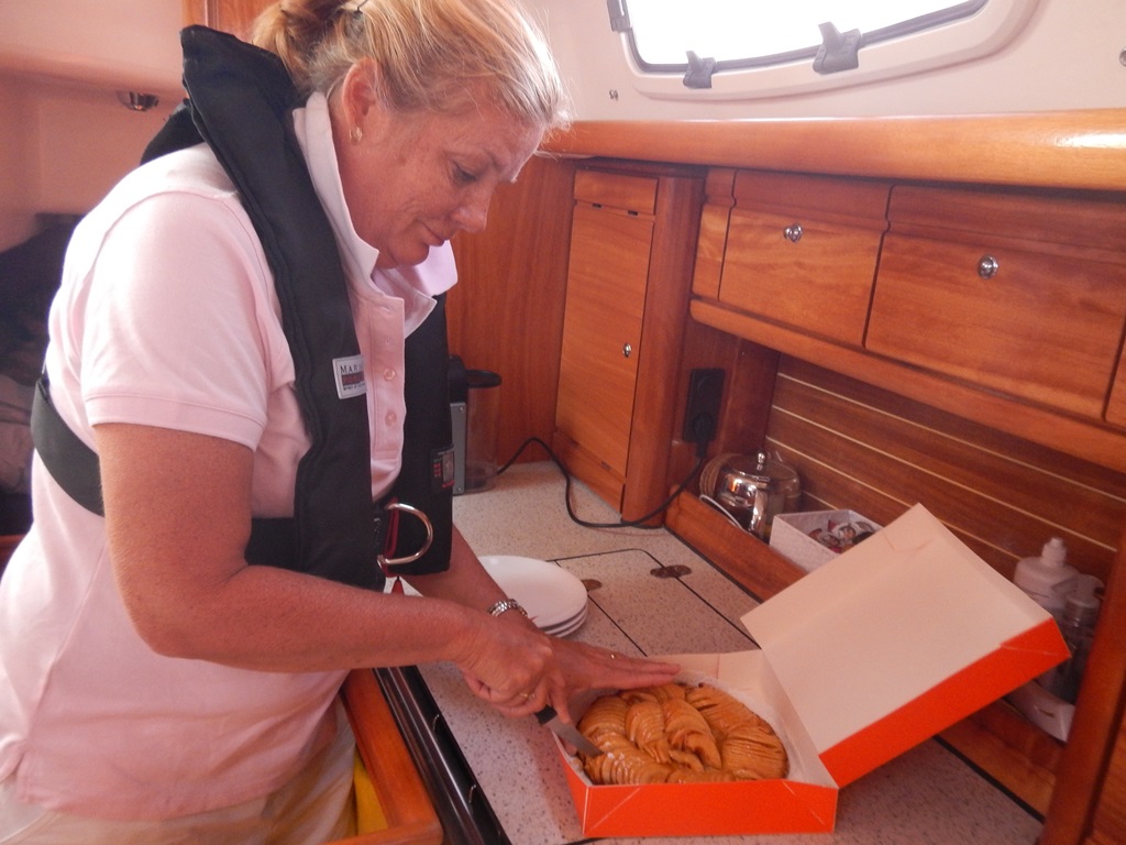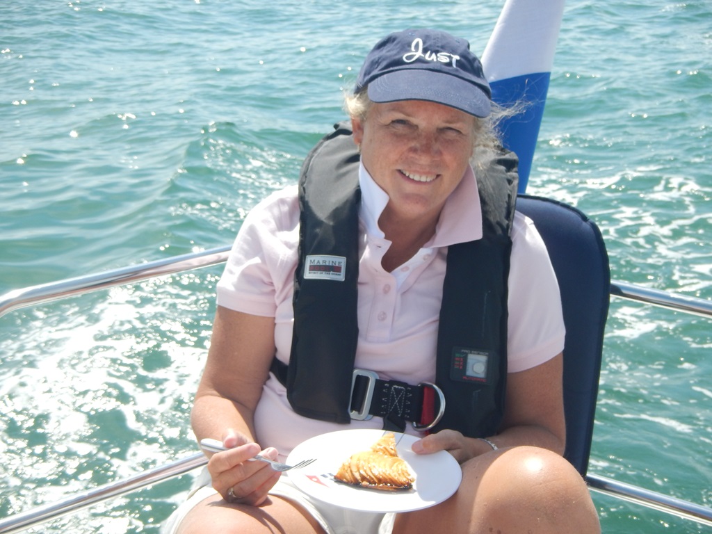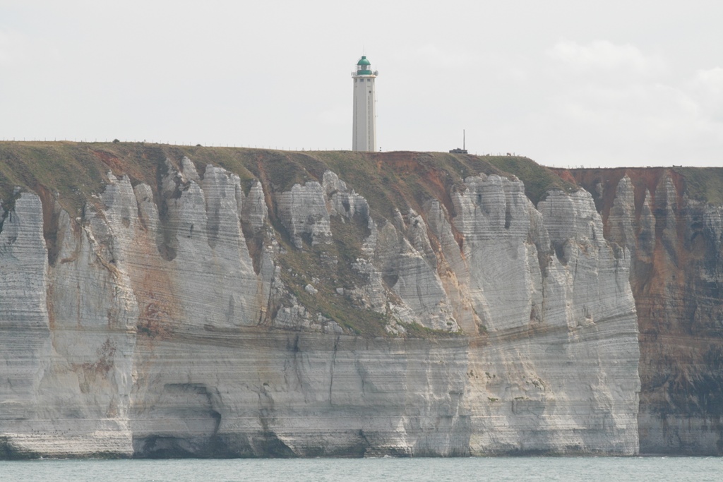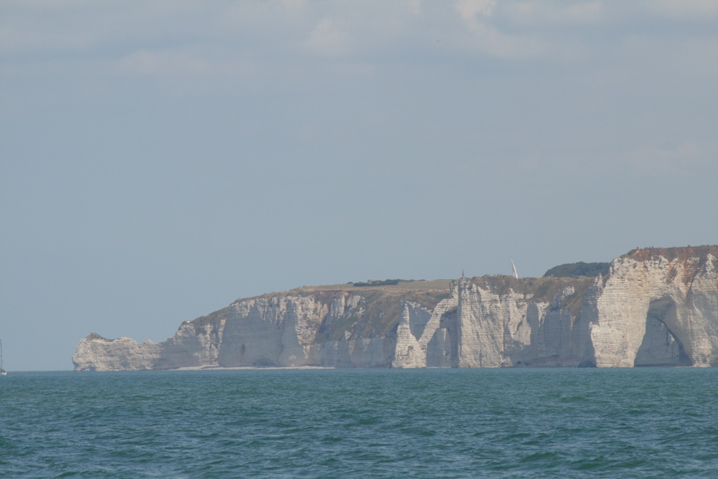 Het vakantiegevoel van mooi weer en lekker uitslapen begint te wennen. Zo mag het nog wel even blijven. Vandaag zelfs verplicht uitslapen, want de sluis gaat pas rond 11:30 uur open. Ruud haalt een stokbroodje, croissantje, koffiebroodje en een taartje. Zomaar omdat het kan en de taartjes er zo goed uitzien hier in Deauville. Alle tijd om even de paar vierkante meter van de Just te stofzuigen en nog een bakkie en wat te kletsen. Daniel wandelt nog even naar het sluisje om met de GoPro een timelaps filmpje te maken van de havenmond die langzaam volstroomt. Ruud komt verder zijn tijd door met leiding geven, waarmee het dan toch nog druk is voor hem. Een zonnetje maakt het compleet. De vooruitzichten voor de tocht naar Dieppe zeggen dat er zon is en een klein windje in de rug om te zeilen. Eindelijk kunnen we los gooien, we hebben weer ruim 60 mijl te varen vandaag. Aan boord is het vooral relaxen en af en toe de koers checken. Zo nu en dan een blik vooruit om te zien of er geen obstakels zijn. Even voor 16:30uur passeerden we Fecamp. Daniel opperde om daar aan te leggen een paar uurtjes en dan weer vertrekken als we weer de stroming meehebben. Maar ik had zo iets we varen gewoon door, wel met ruim 2 knopen stroom tegen, zodat onze snelheid iets onder de 4 knopen blijft hangen. We kiezen iets uit de bank voor de maaltijd, broodje rookworst en perziken als toetje. 20:10uur glijden we Saint Valery-En-Caux voorbij, de zeilen staan weer bij, er is nu een klein briesje. Tot nu toe was het een windstil tochtje. De snelheid loopt nu iets op tot 5.5 knoop. Zo we zijn er. Met de laatste 2 uurtjes vol stroom mee en een dolfijntje even langszij, waren we toch nog 1 uur later dan onze planning in Dieppe. Jammer, want nu moesten we in het donker een plekje zoeken en aanleggen. Maar ook dat ging goed. We konden rood verbrand onze kooien opzoeken.
