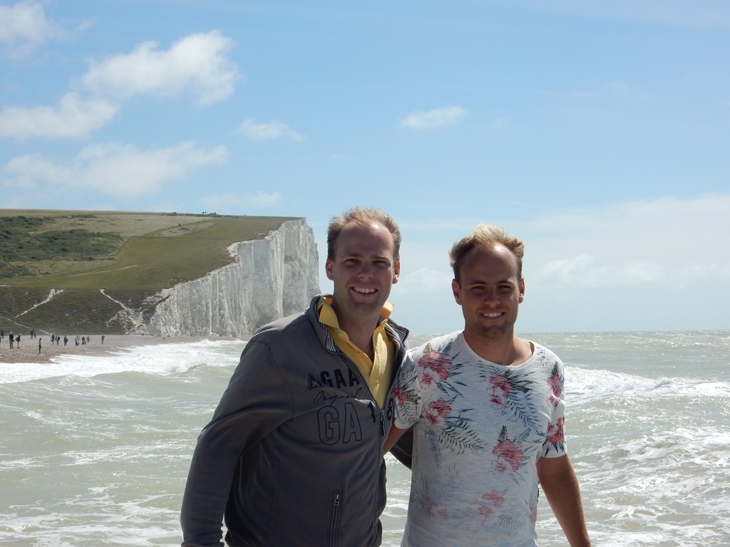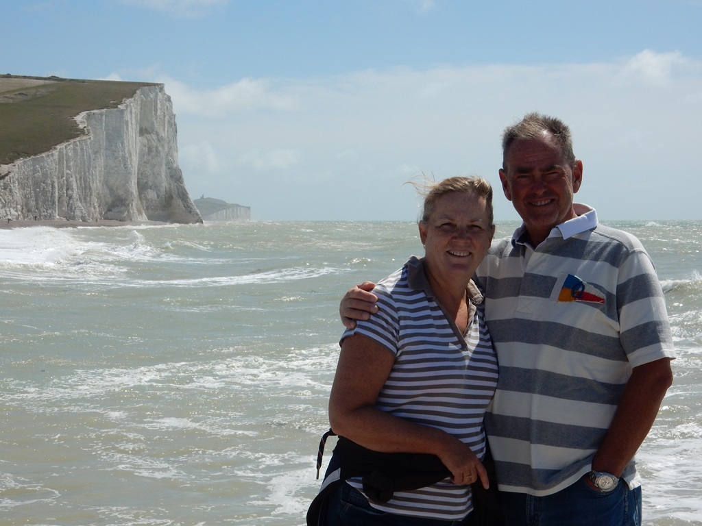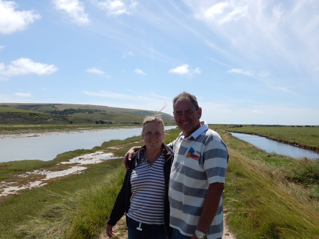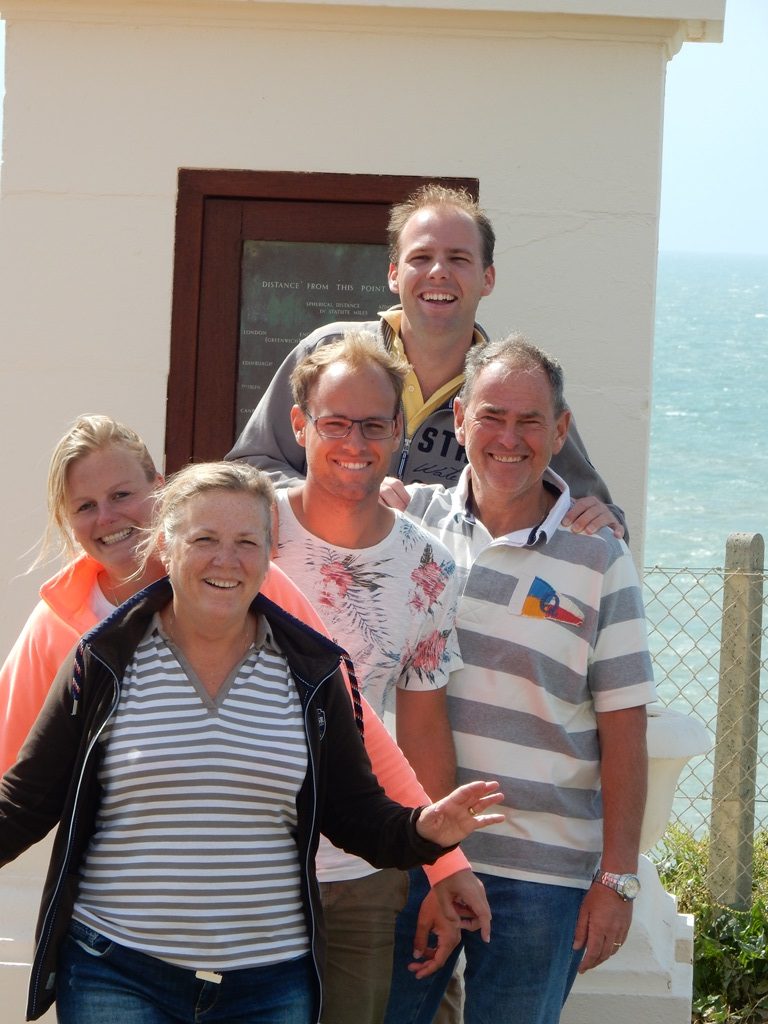 Tja, weer een verplicht dagje in Brighton. Maar Mark vind het best om op z’n verjaardag nog een dagje in Brighton te blijven. Mark was nieuwsgierig naar z’n kadootjes en was bijna als eerste uit z’n bed. Door de storm konden helaas niet de vlaggetjes in de mast hijsen, maar de kado’s werden goed ontvangen. Van Marion een helikoptervlucht in Kaapstad, van Daniel een racespel voor de computer en van ons een paar zeillaarzen. Het was nu al de vierde ochtend dat het stormde en van uitvaren kwam niks. Wat gaan we doen? Marianne was aan het zoeken of er een soort busroute was die we konden nemen van Brighton naar Portsmouth. En dan onderweg ergens bij een paar leuke plaatsjes uitstappen. Helaas de bus ging maar 2 of 3 maal per dag en de eerste was al weg en echt goedkoop was het ook niet. Marion was al naar huurauto’s aan het kijken. En ik mocht de knoop doorhakken. We gingen voor de derde keer deze vakantie voor een huurauto. We konden de auto vlak bij de haven ophalen en waren om 10:00 uur onderweg. We reden langs de kust richting Eastbourne en bij toeval belandden we bij de Greenwich 0 graden meridiaan. Altijd leuk voor een foto. Vandaar reden we naar Cuckmere Valley, waar we een mooie wandeling maakte langs een riviertje met voor ons aan de overkant het begin van de Seven Sisters. Het riviertje mondde uit in zee. We hebben er vaak langs gevaren, maar het is ons nog nooit opgevallen dat er een riviertje was. Via een iets hoger gelegen gebied zijn we terug naar de auto gewandeld. We reden verder via Lewes en Glynde naar Ditchling Beacon. Dit bleek een heel hoog gelegen, mooi glooiend landschap met schitterende vergezichten. We liepen daar tussen de longhorn koeien en schapen. Ons volgende stoppunt was bij Devil’s Dyke, waar je ook weer mooi kon kijken over de lang gestrekte Engelse landschappen en waar ook de residentie lag van Winnie The Pooh. Er was ook een restaurantje, waar we wat te drinken namen met daarbij een Pudding Share. We dachten we nemen er maar 2 met z’n vijven. Laten we het er op houden, het was een iets te groot verjaardagsgebakje. We hebben daar plannen gemaakt wat gaan we doen? Nog winkelen in Portsmouth of iets anders? Met hulp van internet kwamen op het plaatsje Worthing, ongeveer een half uurtje rijden. Met ietsje file waren we daar rond 17:25 uur. Een leuk plaatsje en centrum, waar helaas de winkels aan het afsluiten waren voor vandaag. Dan maar via de kermis op de boulevard naar de Pier, die er sinds 1862 staat en deels weer in 1922 is opgericht omdat die was ingestort. Toen we veilig weer van dat roestig ding op de boulevard waren beland gingen we op zoek naar een Wetherspoon. Mark had voor z’n verjaardag z’n zinnen gezet in een grote hamburger met een Pint bier. Toen we voor de Wetherspoon stonden zat daar naast een Chinees restaurant met als formule All You Can Eat. We hadden vorig jaar in Trouville een slechte keus gemaakt, dus ik waagde me niet om die keus te maken. Met Mark als backup hebben we een kijkje genomen en dat beviel ons wel. Geen buffet, maar een ruime kaart waar je gerechtjes kan uitkiezen, die dan geserveerd worden. Een uitstekende keus, we hebben een gezellige en heerlijke verjaardag gevierd. We pasten nog maar net in ons huurautootje, die ons in een klein uurtje via de kustweg naar Brighton terugbracht. De auto gingen we gelijk inleveren. En zette die op de 7e etage van de parkeergarage neer, toen we alles hadden uitgeladen was Marion nog zo helder met de vraag: moet je nog aftanken? Ja, dat moet. Dus weer 7 etage’s met iets te smalle afritjes naar beneden, tanken en dan weer de opritjes op. Pfff, we staan 22:30 uur. Daniel had uitgerekend, dat de beste vertrektijd rond 4:30/5:00 uur zal zijn, dus hebben we de Just zover mogelijk vaarklaar gemaakt. Kuiptent eraf, watertank vullen en de Just een beetje afspuiten en alles binnen een stevig plekje geven. We kunnen een paar uurtjes slapen. 4:00 uur gaat de wekker.
