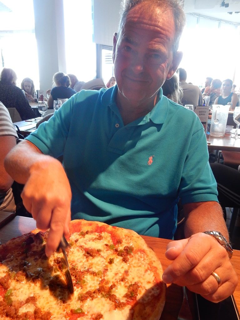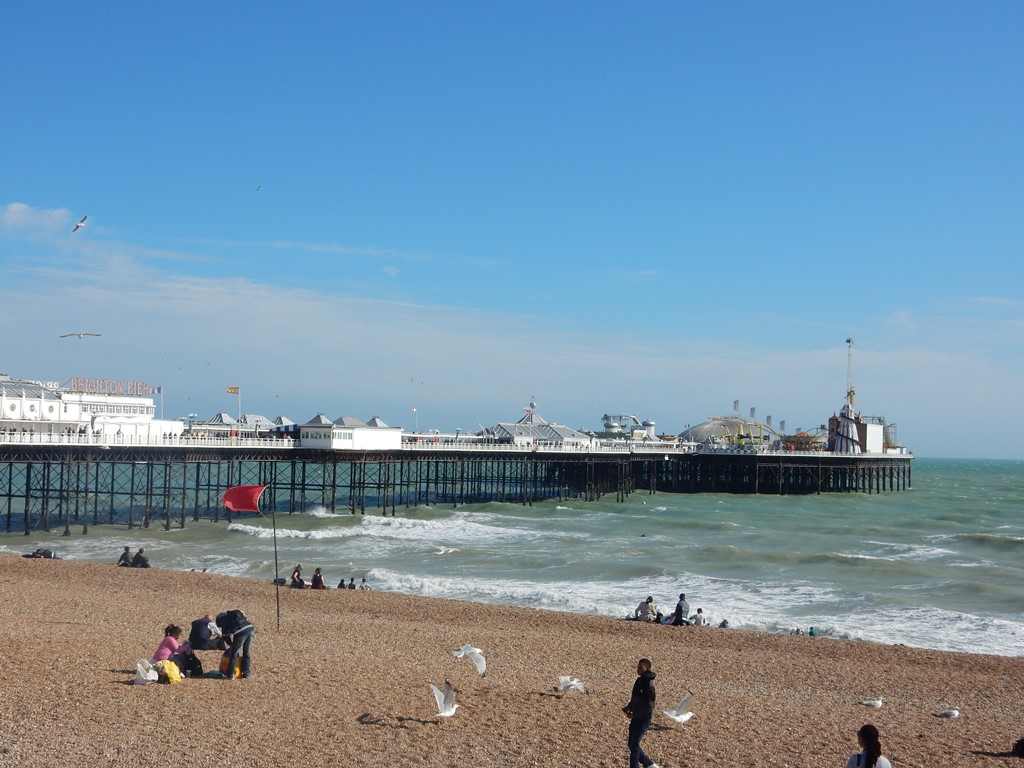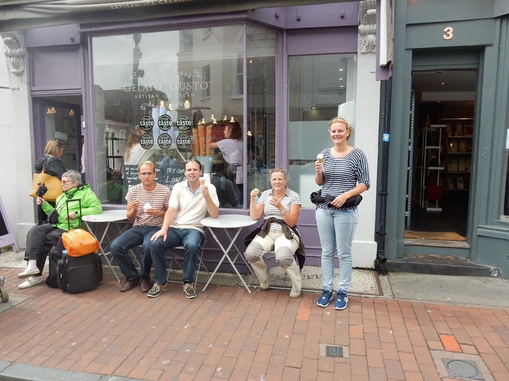 Om 7:00 uur nog steeds storm, maar het begon al snel iets op te klaren. Toen ik terug kwam van de ASDA gingen er 2 bootjes uit. Het plan was om naar Eastbourne te varen en met vertrek om 9:00 uur zouden we in een recordtijd daar aankomen. Maar er was geen beweging in de bemanning te krijgen. Alleen Daniel zat klaar voor wat actie. Al was dat met een racespelletje op de iPad. Ik kreeg het ene na het andere weerbericht naar me toegeslingerd, de ene met een nog rodere kustlijn en groene vlakken dan mogelijk en dat zien ze allemaal vanuit hun bedjes. Maar dat het zonnetje doorbreekt en de wind daadwerkelijk afneemt, dat willen ze niet visueel beleven. Inmiddels was het al 10:00 uur geworden en werd het steeds ongunstiger qua stroming. Dan maar uitgebreid ontbijten met m’n muitende bemanning. Ik zat nog net niet geboeid en hoefde gelukkig niet gevoerd te worden. Onderwijl moest ik alle plannen aanhoren die ze wilden gaan doen, Daniel tafeltennis, Marianne met de Breezebus, Mark naar een pretpark en Marion naar de Primark. En ik? Ik wil gewoon uitvaren. Voor straf laat ik ze weer wandelen naar Brighton centrum en nemen niet het treintje. In het centrum was het een shoppingtour met voor de heren lange wachttijden, want de dames deden inkopen. Mark denkt dat we morgen voor z’n verjaardag op zee zijn en z’n verjaardagsetentje een maaltijd uit de bank gaat worden, dus hij nodigde ons uit voor de maaltijd. Vanavond dus ook daar mee druk geweest en we hielden bij elk restaurant stil. Na alle aankopen zijn we met volle tassen naar de Just geslenterd en hadden inmiddels de keus aan restaurants gereduceerd tot 3, Casa Brasil, Harverster of Pizza Express. Het werd de laatste, een hele goede keus en nog goedkoop ook. Al koste dat wat moeite. Je had namelijk een 3 gangenmenu voor 12,99, maar daar had je een coupon voor nodig. Via internet hebben we die couponcode kunnen bemachtigen. Zodoende nodigde Mark ons ook maar voor morgen uit voor een etentje bij de Wetherspoon. Terug in de haven kwamen er wat bootjes binnen die niks gewend waren en klaagden over de zware tocht, die ze gemaakt hadden. Bij onze buren was naast hun een Oyster 46, een zware boot, aangelegd. Met 2 lijntjes lag die vast en alle stootkussens waren omhoog gekomen door de bries, die door de hoge gebouwen in de haven staat. Met man en macht hebben we die Oyster beter vastgelegd. Wij hebben onze plicht weer gedaan. We gaan voor de derde avond de weersberichten checken of het eindelijk ietsje beter gaat worden.