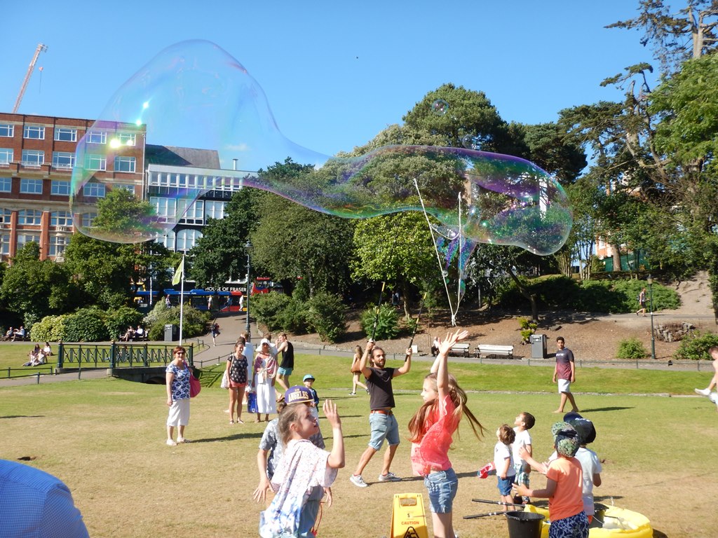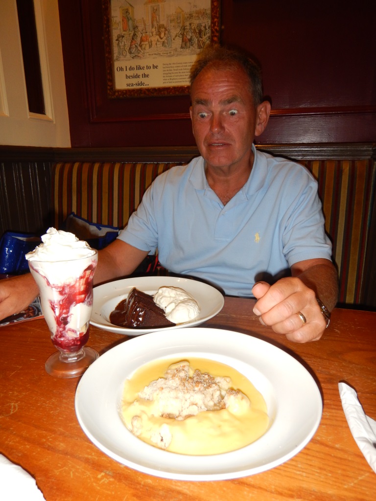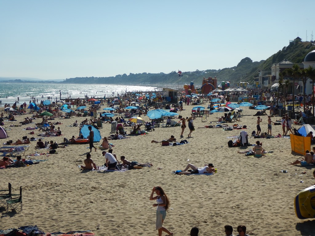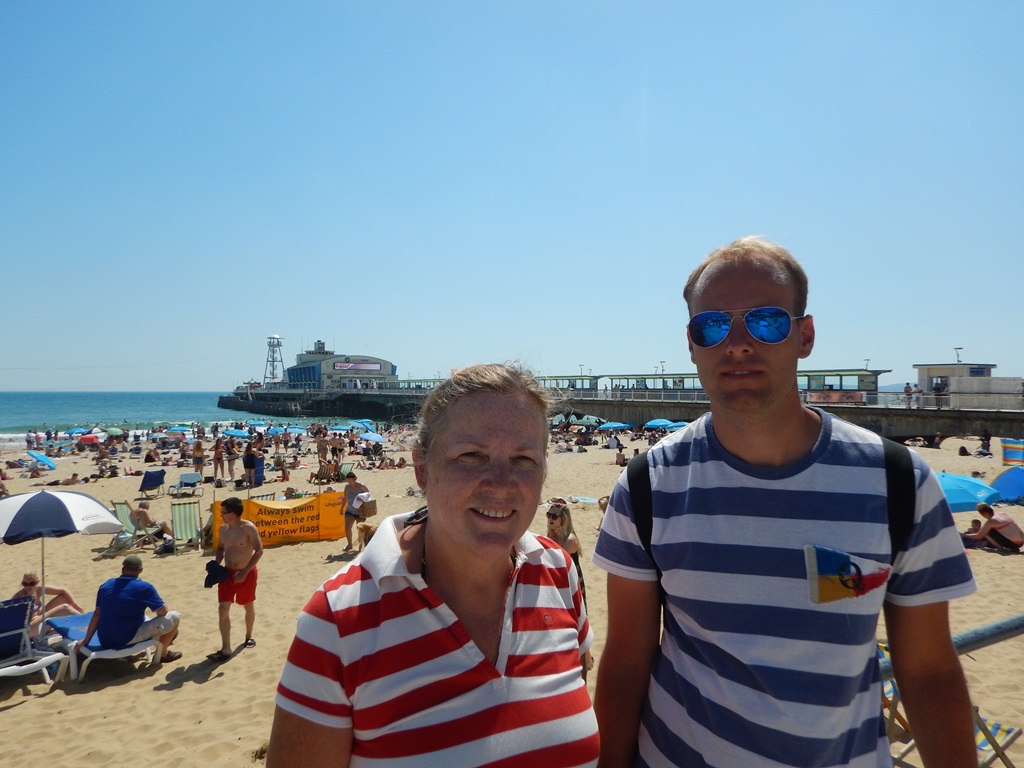 Omdat het vandaag een hele lange dag gaat worden, doen we in de ochtend rustig aan een ontbijtje, busroutes doornemen en waar stoppen die dingen. Oke, met het citybusje naar het grote busstation en vandaar met de M1 of M2 naar Bournemouth. In de bus kregen we al informatie van een vriendelijk Engelse lady, die ons een leuke wandelroute gaf. Dat was in een langwerpig park met een klein stromend beekje, wat uitkwam bij een Coy Pond. Leuk, maar snel naar het strand voor een verfrissende duik, want het is een warme dag. Brrrrr, water is erg koud, maar wel een super mooi strand aan de Dolphin Bay met een fantastische uitzicht op de Needles. De Engelsen vinden dat ook, want het is er druk. Na een paar duiken en wat zonnebaden gingen we toch nog het stadje een beetje bekijken en doken wederom een Wetherspoon in voor een lichte maaltijd en veels te grote toetjes. Toen snel terug naar de Just, waar we onze zoute lijfjes afdouchten. We proberen een beetje slaap te pakken, want we vertrekken om 00:00 uur naar Weymouth een tochtje van ongeveer 6 uurtjes.