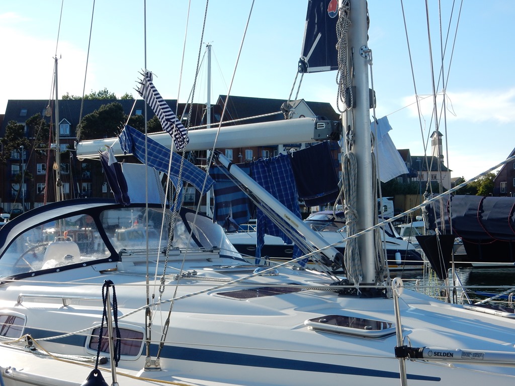 Vandaag een rustig aan dagje. Ontbijtje, auto wegbrengen, en naar het strand. Nou ja, dat was de bedoeling toen wij de auto wegbrachten. Had Marianne het idee om alle was te verzamelen en die vandaag te wassen. Maar eerst een paar uurtjes bakken op het strand. Toen alles schoon was, hebben we nog een wandeling gemaakt langs de winkeltjes, haven en de boulevard en als verrassing Fish and Chips eten bij weer een Wetherspoon The Willem Henry. Er was bij Daniel en Marianne iets van alweer Wetherspoon? Maar de Fish and Chips waren heerlijk krokant en niet te vet. We hadden besloten om de brug van 20:00 uur te nemen en ergens buiten een ankerplekje te zoeken. De bedoeling was voor het strand van Weymouth, maar we lagen daar lagerwal en zijn toch maar de oude marinebasis van Portland in gevaren, waar we tussen de moorings ons anker uitgooiden. Een rustig plekje voor de komende paar uurtjes. Vertrek is gepland om 6:00 uur