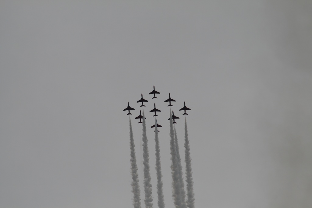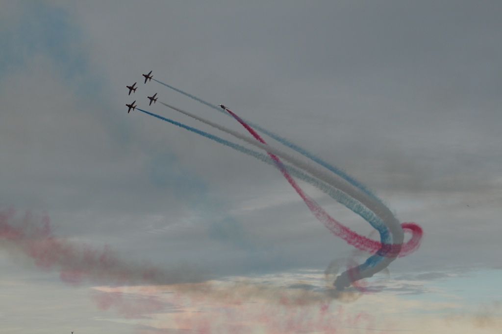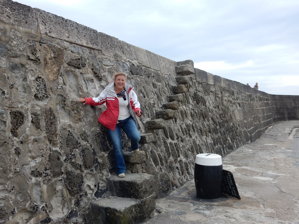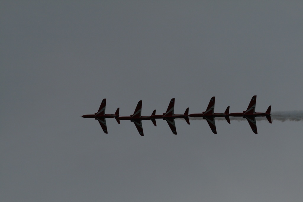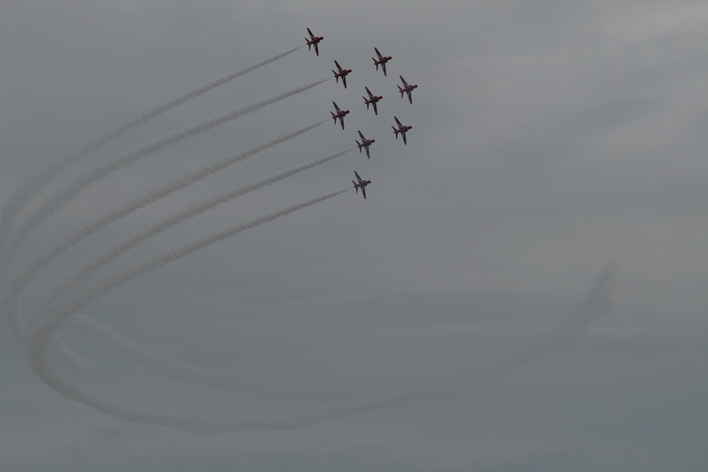 Na de brug meerden we af in een box, snel wat broodjes halen en ontbijten. Met Daniel ging ik de huurauto ophalen. We hadden een Opel Corsa gereserveerd maar kregen een Opel Astra Coupe GTC, prima karretje. Nu nog proberen aan de juiste kant van de weg te blijven en dat heel de dag vol houden. Met volle tassen vertrokken we uit de haven, een picknicktas, een strandtas, een fotorugzak, een geldzak en een slechtweertas. Gelukkig hadden we een grote kofferbak. Ons eerste doel was een wandeling bij The Fleet en de Jurassic Coast. Een mooi natuurgebied. We reden langs de Park And Ride waar we zouden parkeren om de Red Arrows te gaan kijken. We hebben daar op de kaart gekeken wat we zouden doen en besloten om maar gelijk te parkeren en op die heuvel te picknicken op z’n Engels. We namen de Ride naar Lyme Regis, wat een verrassend leuke badplaats bleek te zijn. Gezellige boulevard, droog vallende haven, authentieke winkeltjes, op z’n Engels Bowlende oude dametjes en een hele mooie track langs een Footpad. Na een terrasje namen we plaats op het kiezelstrand, waar we eerste klas zaten voor de spectaculaire The Red Arrows Airshow. Super gaaf. Met het busje terug naar de parkeerplaats en daar gekeken waar we nog heen konden rijden. 2 opties waren te ver: Stonehenge en Darthmoor. Maar als 3e mogelijkheid hadden we een mooi fabuleuse landschap. Tenminste, er stond area of outstanding natural beauty op de website. Nou het enige wat we gezien hadden waren een paar koeien en voor de rest ruim 10 kilometer of miles een zeer smalle weg ter breedte van 1 auto met aan weerszijde een hoge heg van ruim 2 meter. De takjes schuurden af en toe langs de auto en dat lag niet aan m’n rijstijl. Achter de heg was het inderdaad een mooi landschap, maar we hebben er erg weinig van kunnen zien. Na dit avontuur zijn we richting Weymouth gereden door een zeer heuvelachtig en steeds donker wordend landschap en dat op weggetjes waar je als nette Hollander niet harder zou mogen rijden dan 50 Km. Hier mochten wij 60mile rijden. Niet normaal, maar we zijn schadevrij bij de haven aangekomen. Marianne en Daniel namen nog een ragoutje en ik zette alle filmpjes en foto’s op de laptop, die we nadien nog even bekeken hebben. Ik redde dat niet en zocht m’n slaapplekje op.