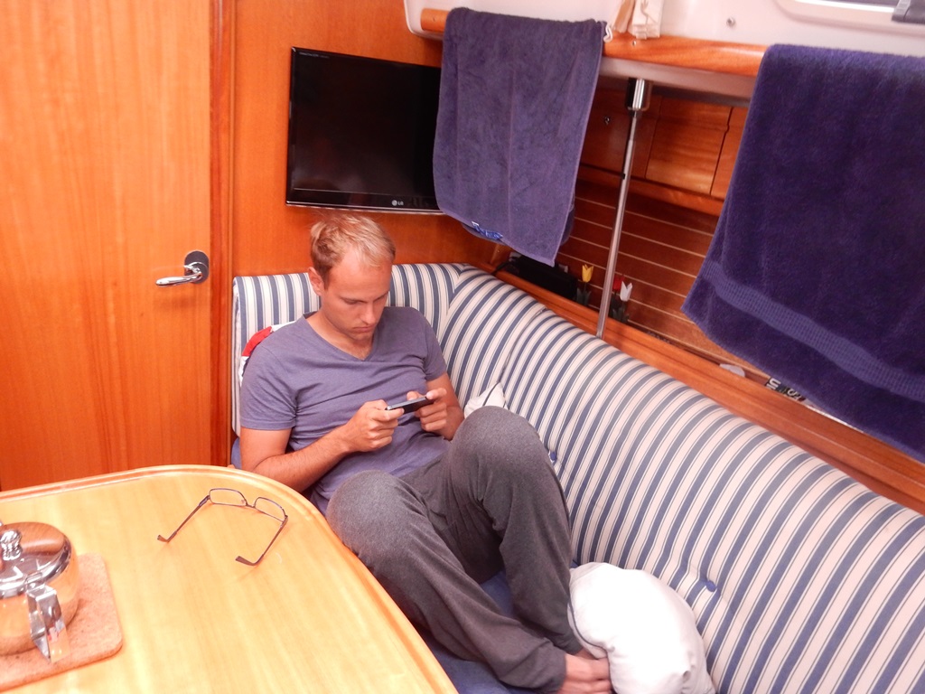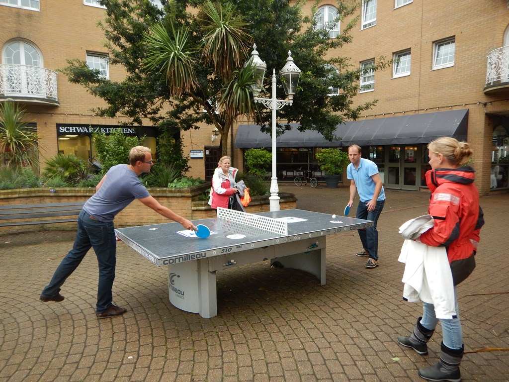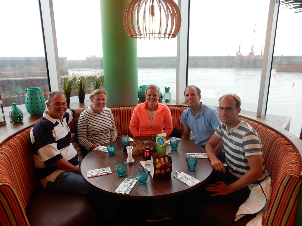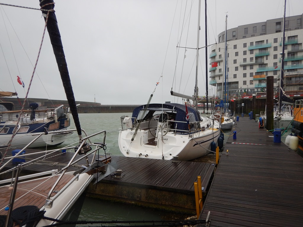 Vannacht riep Mark me. Ik lag weliswaar in coma, maar sprong uit bed. De Just lag aan lagerwal en er moesten extra stootkussens om de boot te beschermen. 3 extra stootkussens hebben we snel tussen de Just en de steiger gepropt en snel terug naar bed. s’ Morgens waaide het nog steeds stevig en hebben we 3 lange lijnen naar de wal uitgezet en de Just ligt nu helemaal vrij van de kant. We hebben wel een ontbijtje verdient met zonder vers brood, maar wel met lekkere wentelteefjes. Ja, en wat doe je dan op een regen- en stormachtige dag in Brighton. Lekker helemaal niks. We zochten allemaal een hoekje en doen alweer een klein dutje. Tegen de middag waren we uitgerust genoeg voor een wandelingetje. Niet naar het centrum, maar gewoon bij de haven en ASDA. Marianne scoorde een mooie tas, wat frutseltjes en kadootjes voor het thuisfront. De tafeltennistafel gaf ons een uurtje afleiding door een paar potjes rondo tennis te spelen. Terug aan boord zette Mark speciaal voor de dames een voorspelbare vrouwenfilm op. Met nootjes, chippies, wijn en bier hebben we een mooi aperitiefje voor ons bezoek vanavond aan Casa Brasil, een Churrascaria restaurant. Ongeveer hemelsbreed 50 meter van de Just verwijderd. Zo, dat was geen verkeerde keus. Gezellig en heerlijk gegeten en de bediening was top. Ze bleven langs komen en op het laatst alleen maar voor Mark, die kon maar geen nee zeggen tegen de mannen met de zwaarden met grote stukken vlees. Ik mag het niet meer schrijven, maar we zijn weer naar de Just gerold en nu geholpen door een windkracht 7. Vanavond nog de laatste weerberichten checken.
