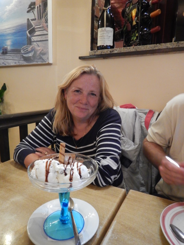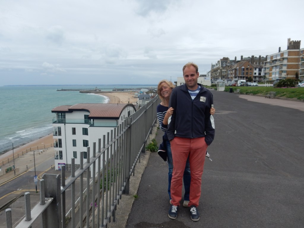 Tja, wat te doen op een stormachtige dag. Je staat iets later op voor een later ontbijtje. En dan toch maar een stadswandeling. De Vikingtrail vonden we iets te pittig, maar als alternatief gaan we naar Petticoat Lane Emporium, waar ruim 175 stalletjes met van alles wat zouden zijn. Ha, een beetje tegenvaller, het was een soort grote hal met allemaal oude meuk. Maar de wandeling erheen was een belevenis door van die echt oud Engelse straatjes, veelal met jaren vijftig tegeltjes, gordijntjes en verfwerk van 30 jaar terug. We wandelden terug bovenlangs de boulevard, waar we duidelijk konden zien dat het veiliger is om niet op zee te gaan. Er stond al veel wind en de eerste druppels begonnen te vallen. Terug op de Just begon het echt te hozen. We hebben met een ragoutje en een snackje de laatste aflevering van Game Of Thrones bekeken. Maar we zaten ook nog steeds met hoge nood aan boord en er was nog geen verlichtend telefoontje van het havenkantoor gekomen. We belden dus maar of ons pakketje van Jabsco aan gekomen was, en ja hoor het was er. Marion demonteerde het boordtoilet en ik ging in de regen het pakje halen. Gezamenlijk hebben we in een recordtempo de belt gemonteerd en de toilet weer werkend gekregen. Mark en Marion nodigden ons uit voor een etentje bij de Pizzeria. Gelukkig regende het net even iets minder en kwamen we redelijk droog aan voor een lekker samengesteld 3 gangen menuutje. En gelukkig voor ons zijn we ook weer droog aangekomen op de Just. Nu even lekker onderuit op een schommelende Just.