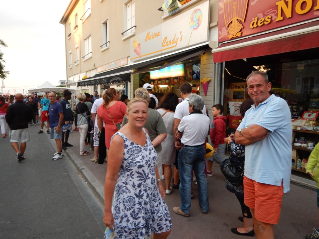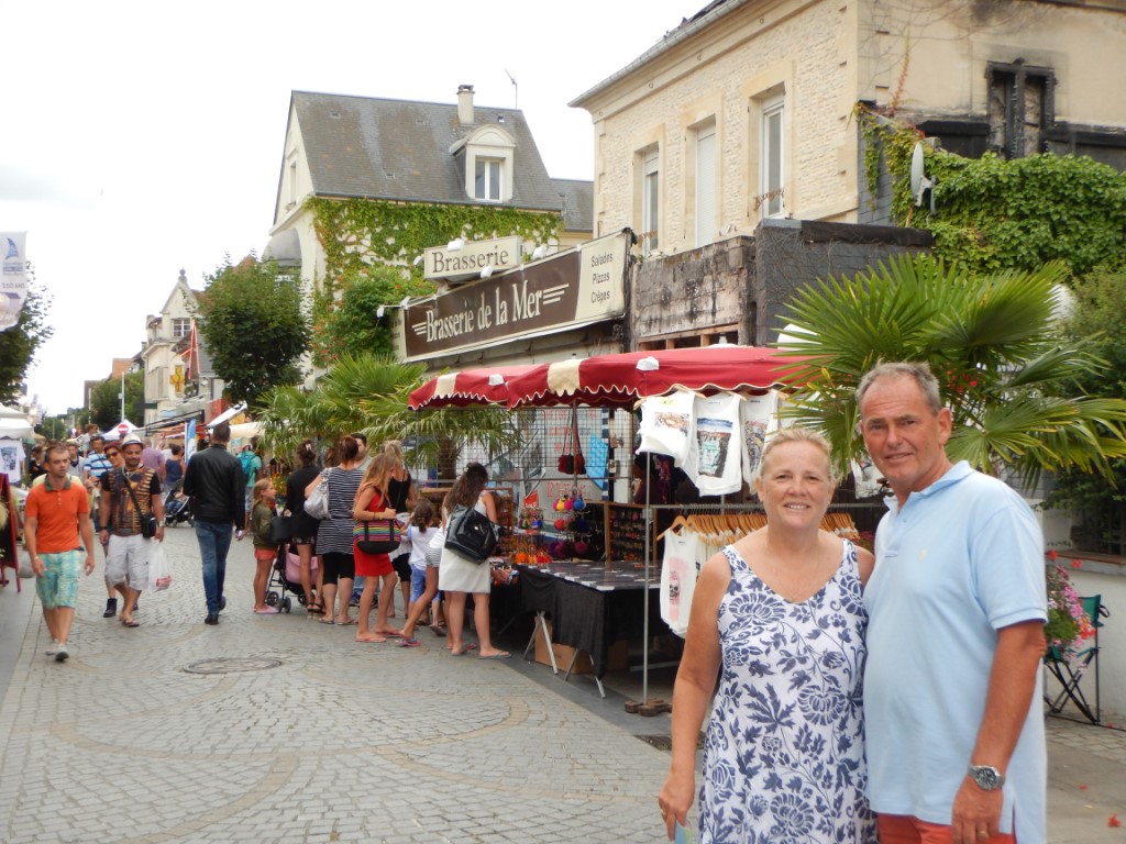 Perfect ochtendje, rustig ontbijten en vertrekken. We hebben iets te lang voor het sluisje van Deauville moeten wachten, maar eenmaal op zee konden we de zeilen hijsen. Met een mooie bezeilde koers vaarden we naar Ouistreham. Stom zeg, we hadden iets minder relaxt moeten wezen vanmorgen en de Almanak even moeten lezen. Dan hadden we een uurtje eerder moeten vertrekken zodat we niet tot 16:30uur voor een gesloten sluis hadden liggen wachten, een klein minpuntje. Maar goed, we gaan zo na de lunch Ouistreham bekijken en misschien in de namiddag nog door naar Cean? Met Marianne een wandeling gemaakt door Ouistreham, terwijl Daniel bij de Just bleef bij de sluis. Hij kon nog lekker een uurtje gamen. Het was net na de middag, dus alles was dicht voor de midi. We vonden het een beetje saai, maar we moesten wel in Ouistreham blijven, want de eerste passage naar Caen gaat pas morgenochtend om 10:10uur. Nadat we de sluis gepasseerd waren vonden we snel een ligplaats en zijn na wat luieren voor een tweede keer gaan kijken of er nu iets meer leven in Ouistreham is? Via een lange weg kwamen we bij het strand, 3 kilometer lang met mooi fijn zand en heel erg breed. Al slenterend was er opeens meer activiteit in een zijstraat. We liepen zo een braderie op, waar geen einde aan leek te komen en uitkwam op een markt. Natuurlijk liepen we de eettentjes weer af en gingen bij een moderne Italiaan naar binnen. Als toetje hadden we al verschillende ijszaakjes gespot voor een heerlijk ijsje. Het was een beetje een rommeldagje, eerst lekker gezeild, iets te lang moeten wachten voor de sluis, eerst een saai stadje, wat overging in een bruisend stadje. Morgen naar Caen en dan wel op tijd vertrekken