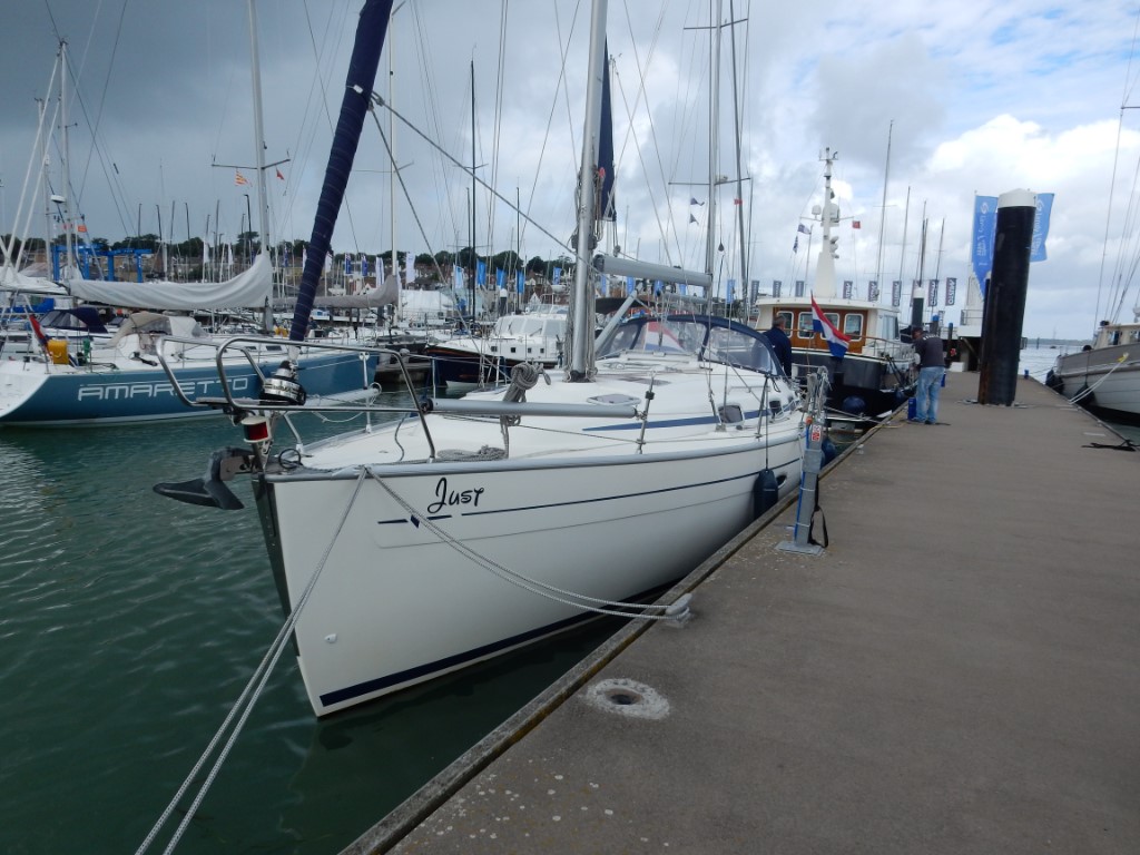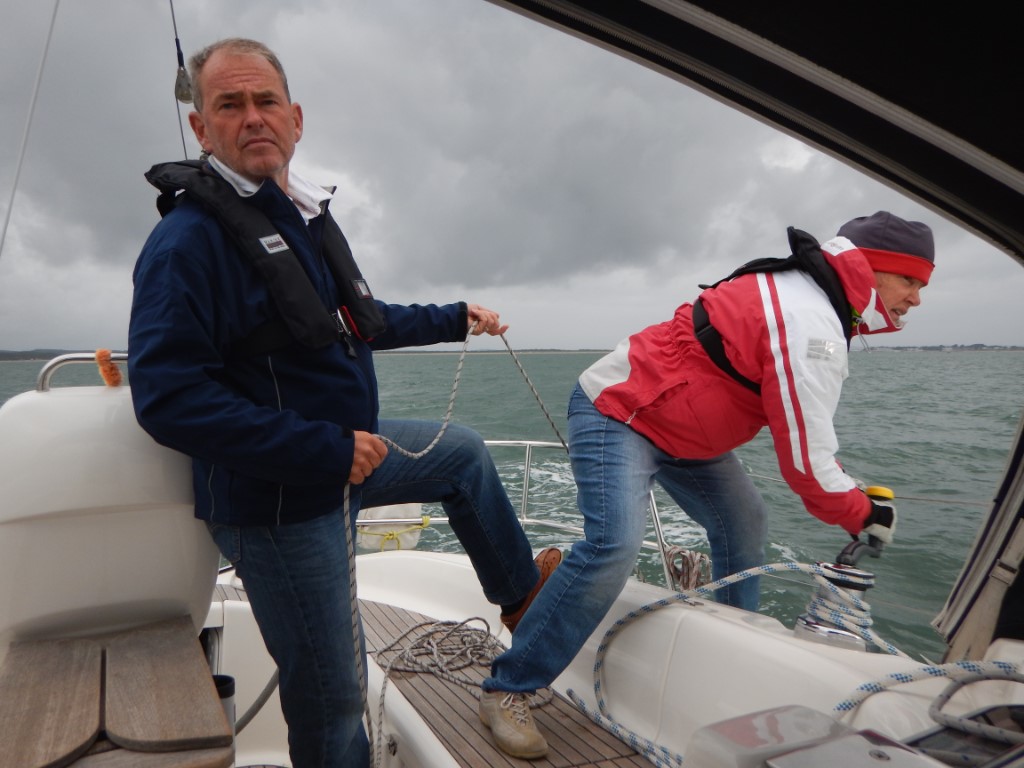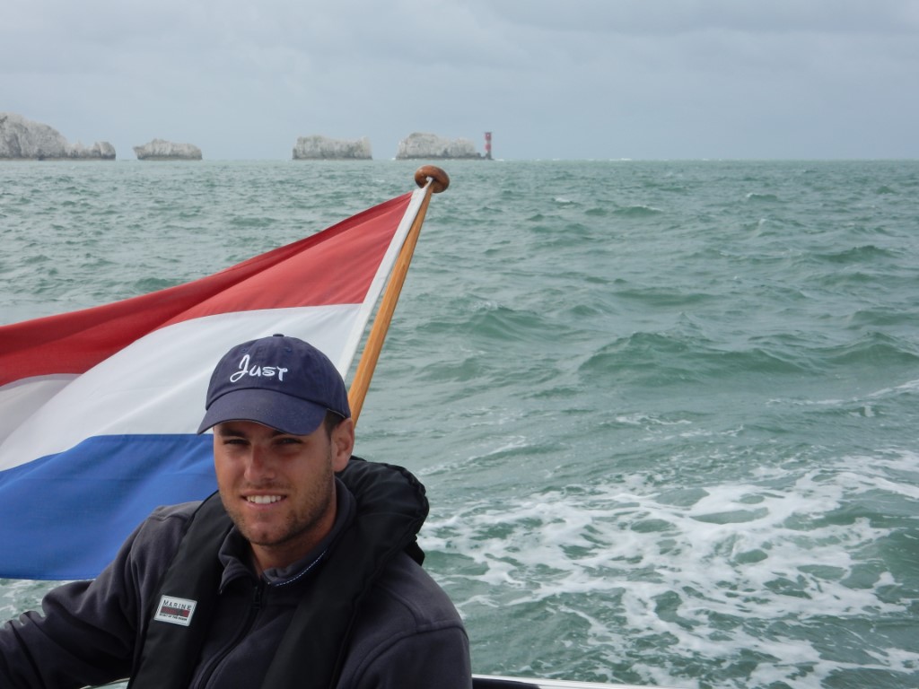 Om de stroming naar de Solent mooi te kunnen meepakken, moesten we rond 7:00uur vertrekken. Bij de supermarkt hadden we gevraagd hoe laat de broodjes er zouden zijn. De vriendelijke verkoper beloofde ons, dat hij eerst de stokbroodjes ging bakken, zodat we lekker vers brood zouden hebben. Dus daar hing de vertrektijd vanaf. En inderdaad, wat een service! De stokbroodje waren om 6:45uur klaar en 5 minuutjes later gooiden we los. Eindelijk voor het eerst deze vakantie een koersje voor de wind met alleen het fokje uitgerold, stoven we op de Needles af. Waar we weer teveel foto’s van namen. De stroming hadden we vol mee en met een top van bijna 11 knopen waren we zo in Cowes. Yes, het is een keertje gelukt om een ligplaats te bemachtigen in de Cowes Yacht Haven. Maar we moeten wel morgen om 8:00uur vertrekken, omdat de Cowes Week gaat beginnen en alle ligplaatsen gereserveerd zijn. Geen probleem, we wilden toch al vroeg vertrekken. We liggen nu wel tussen allerlei racemonsters, die een weekje wedstrijden gaan varen op en rond de Solent. We gaan nog even gezellig Cowes in, beetje slenteren en wat koopjes jagen tijdens de Sale. En ja hoor, Marianne is de enige, die 3 truien heeft gescoord en wij mochten de tasjes dragen. We hadden ook inmiddels besloten om op de Just wat klaar te maken en namen bij een supermarkt wat boodschappen mee. Terug op de Just hebben we lekker in het kuipje gezeten naar alle aankomende en vertrekkende bootjes gekeken en genoten van het mooie uitzicht op de Solent. Marianne was vandaag de keukenprinses en maakte een perfecte nasimaaltijd. Na de afwas even uitbuiken en hebben ons gereed gemaakt voor een wandeling richting de Royal London Yacht Club. Na de wandeling hebben we nu live muziek op de kade en gaan zo lekker erbij indutten.