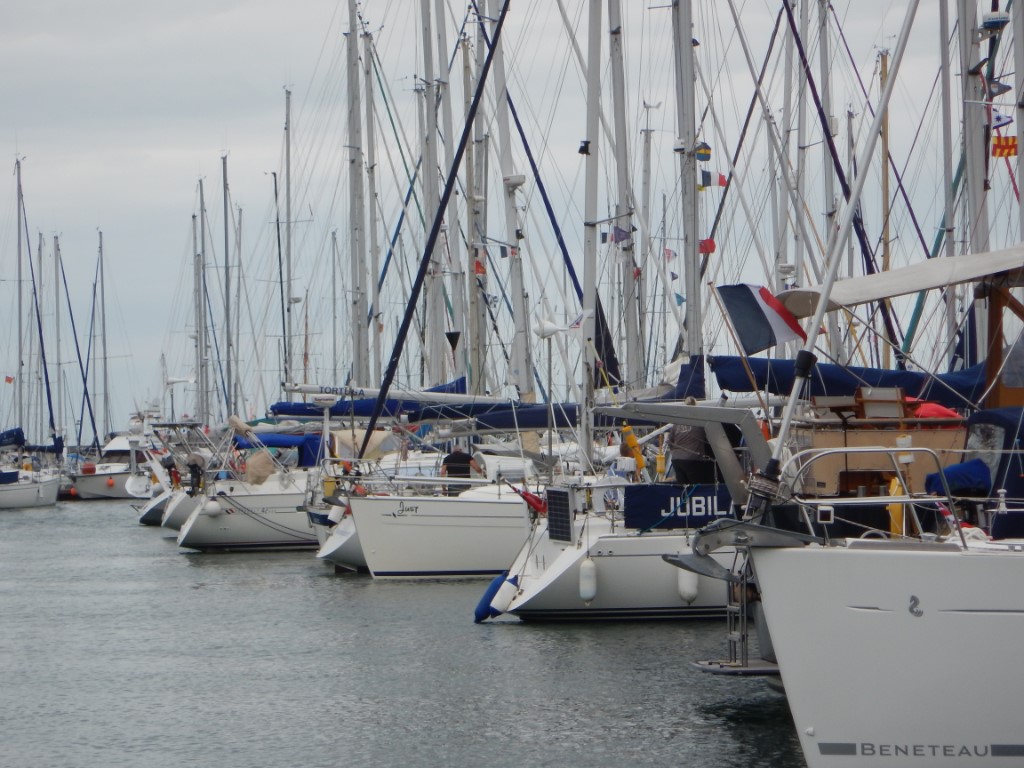 De weersvoorspellingen waren zeer slecht, windkracht 6 met regenbuien en onweer. Het wordt een haven/wasdag. De waszak was aardig aan het vol raken en moest nodig een keertje leeg geschud worden. Zowel Marianne en ikke kwamen terug op de Just met een dubbelpakket aan folders en info. We besloten om de stadswandeling te maken. We hadden ook nog eens een Nederlandse beschrijving erbij. Alleen klopte er niet veel van, waar rechts stond, moesten we links en we hebben de meest aftandse straatjes gezien. Alles leidde ons niet langs de vele leuke winkelstraatjes. We hebben er een eigen draai aangegeven en er toch een leuke wandeling van gemaakt. Het slechte weer bleef ver weg van ons en het zonnetje brak door. Met een strak blauwe lucht zijn we naar de Just gelopen en hebben lekker in het kuipje zitten relaxen en van het onverwachte mooie weer zitten genieten. Het restaurantje was ook al uitgezocht: een eenvoudige maaltijd bij een soort selfservice, prima eten voor een hele lage prijs. De knoop is doorgehakt, we steken morgen over naar Engeland, Poole. Vertrektijd is rond 6:00uur nu kunnen we nog even van het Franse zonnetje genieten.
