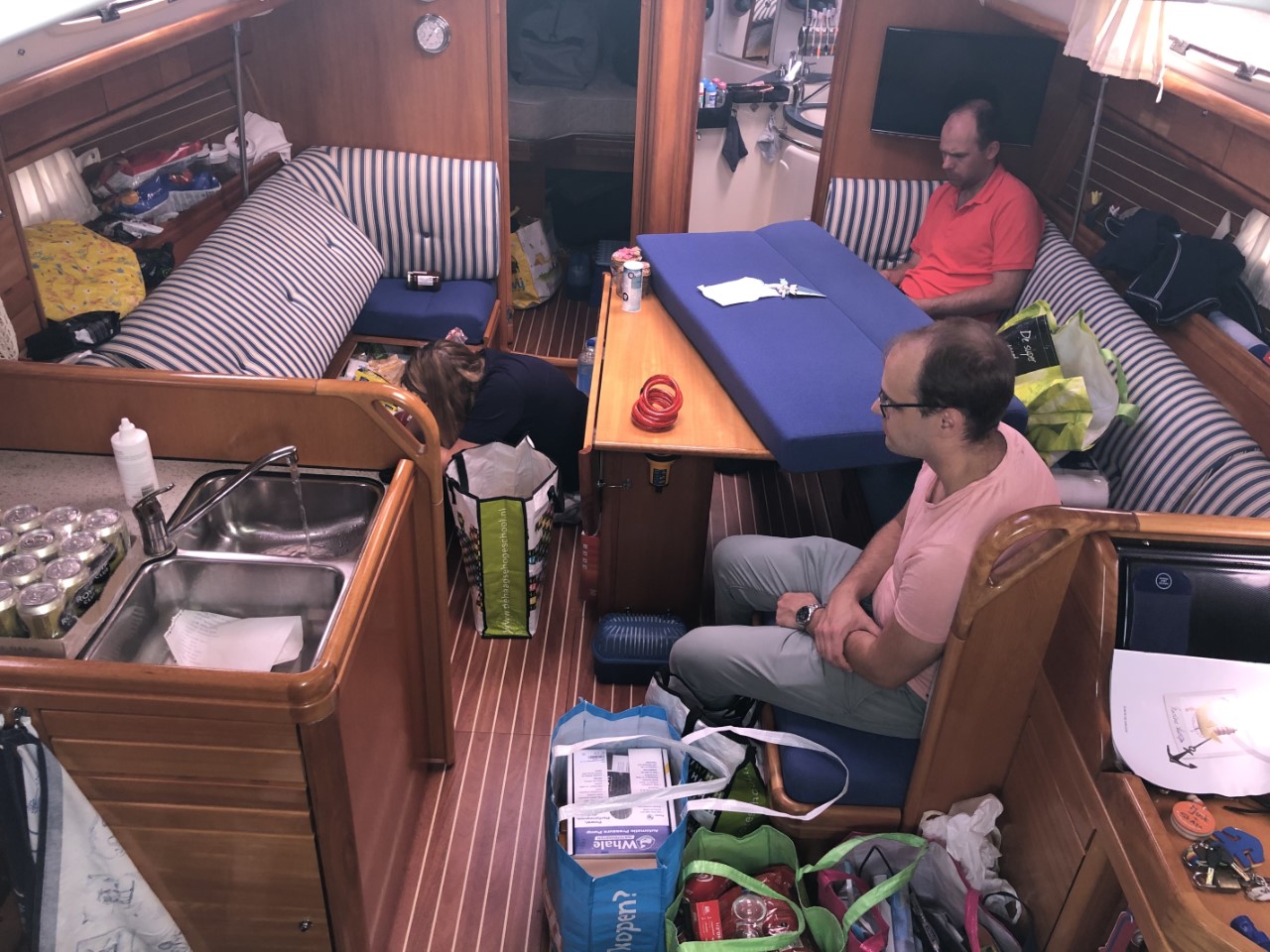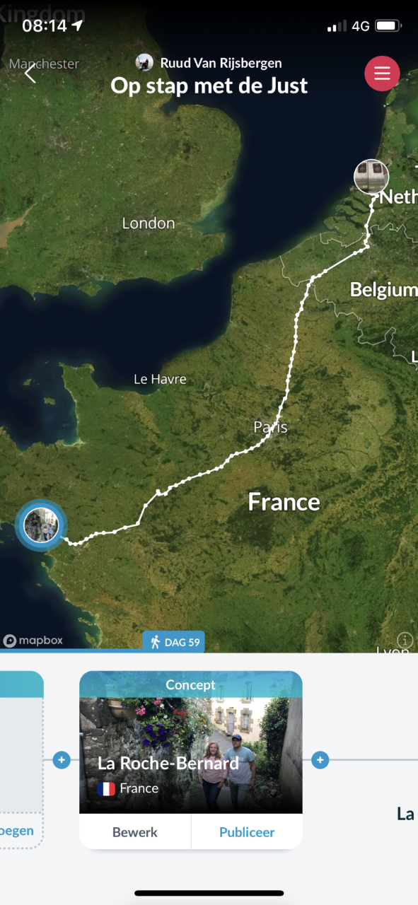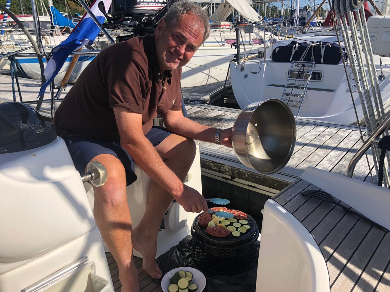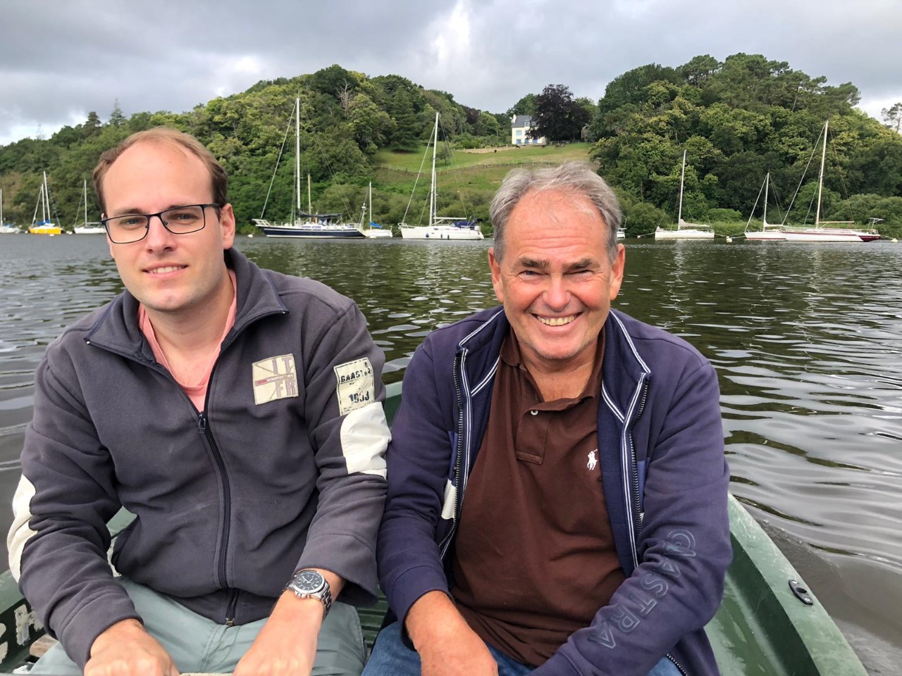 Maar eerst moeten we in La Roche-Bernard komen.Vrijdagavond (23:00 uur) vertrokken we uit Leidschendam voor een rit van ruim 900 kilometer. Met Mark en Daniel als extra chauffeurs waren we even voor 9:00 uur in La Roche-Bernard. Met een roeibootje hebben we de Just van z’n mooringplekje bevrijd en zijn we naar een box gevaren. Het was even schrikken, want we hebben de Just nog nooit zo vuil gezien. We hebben de volgestouwde auto leeg gemaakt en verplaatst naar de Just. Het schoonmaken kon beginnen. Nou ja, een klein beetje alleen de kuip en het voordek en de kuiptent. Verder hebben we alles ingeruimd in de kastjes. Omdat we een nachtje hadden doorgereden zijn we vroeg gaan slapen. Zondagochtend was het zachtjes aan het miezeren, dus de gehele Crew draaide zich allemaal nog een keertje om. Ik zocht een bakkertje en maakte zelf een Vaderdag ontbijtje en natuurlijk ook voor Mark, die voor ons zijn eerste Vaderdag opofferde en niet kon genieten van Marnix. Rond de middag klaarde het op en een zonnetje brak door. We hebben de Just een flinke sopbeurt gegeven en zelfs nog flink gepoetst. Dat was nog wel het mooiste vaderdagcadeau voor Ruud. De hele middag met poetslap en speciale scheepswax met z’n drieën in de weer. Ook de lieren glommen weer. Marianne vond het om 18:30 uur wel genoeg en begon met de voorbereidingen voor de BBQ. De Cobb-BBQ (Ruud zijn vaderdagkadootje) werd tevoorschijn gehaald voor een heerlijke BBQ. Mark viert volgende week zondag zijn eerste vaderdag en moest het doen met facetime waar Marnix heerlijk lag te slapen. We maakten na het eten nog een wandelingetje door de 15e eeuwse straatjes en langs de kade van de oude haven van La Roche-Bernard. Verderop in de straatjes was er life muziek bij de cafés en was er weinig merkbaar van Covid 19. We klommen nog even op de rots en bekeken de kanonnen.