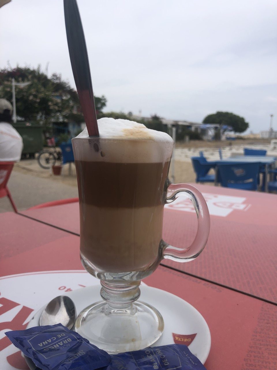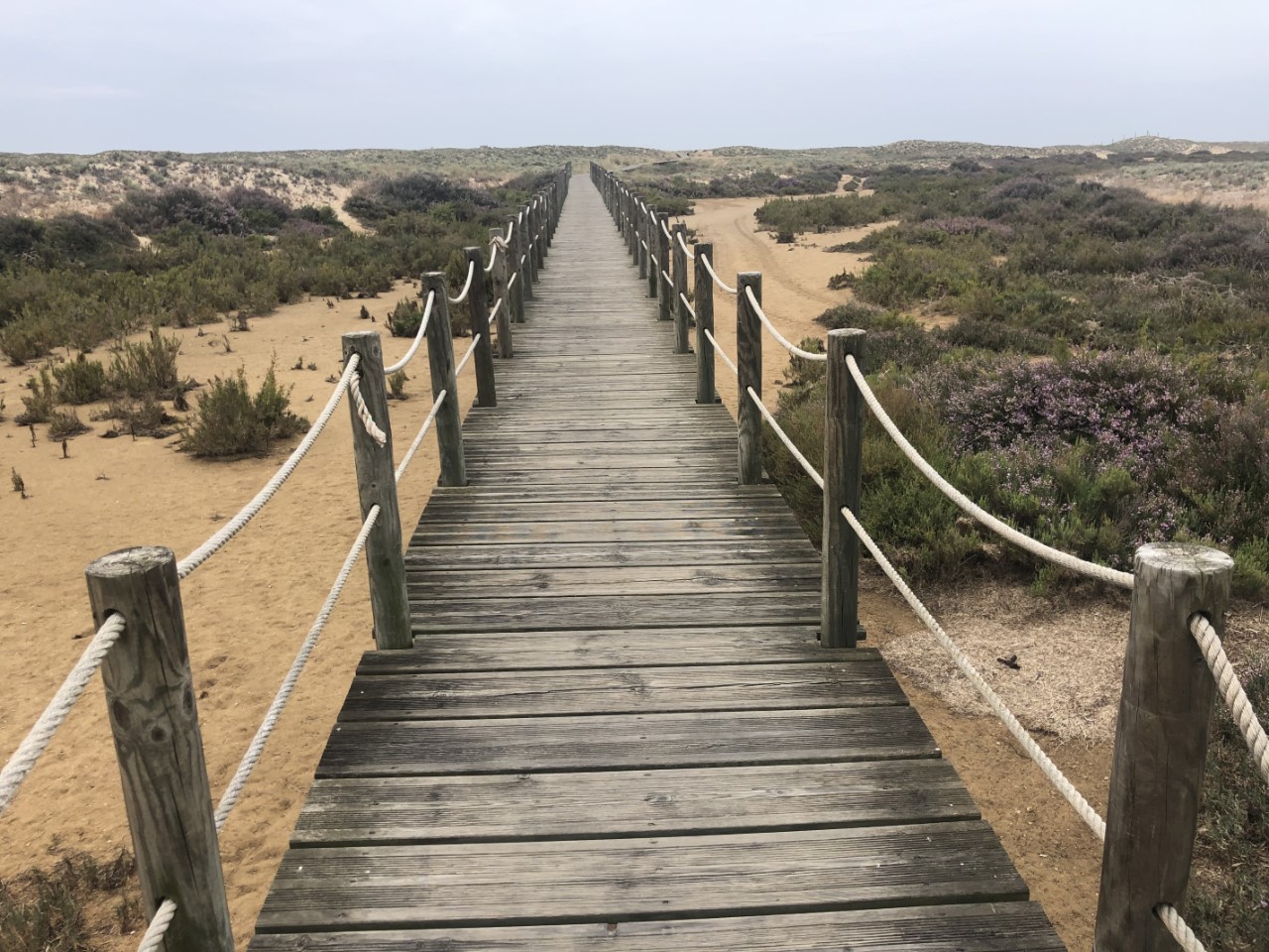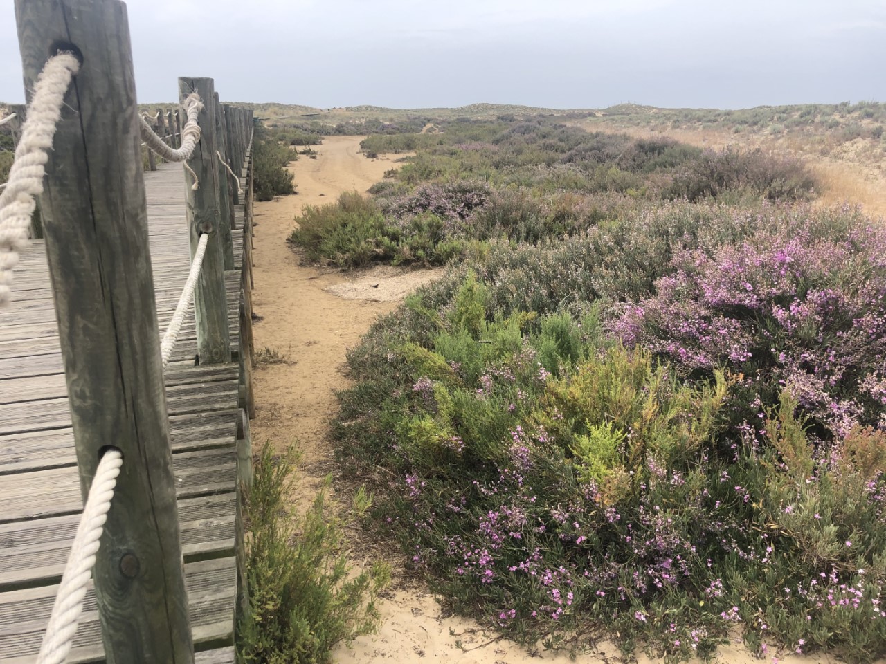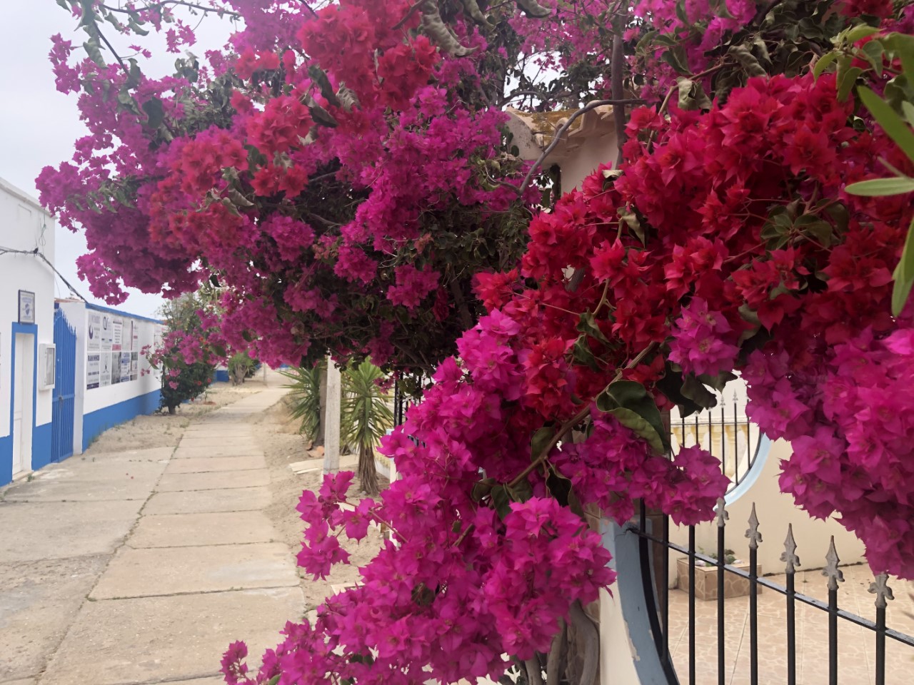 Wij gingen op onderzoek uit op dit autovrije eilandje. Er waren rommelige kleine leuke huisjes met veranda’s en bloemen bij de voordeuren. De ooit neergestreken hippies zijn oud geworden. Via een betonplatenweg kwamen op mooi aangelegde houten loopplankier, die een kilometer door de duinen ging naar een mooi zandstrand. Helaas was de strandbar deze week gesloten en hebben we even gekeken naar een eenzame visser in de branding. Via het plankier kwamen we terug in het dorpje. Mondkapjes worden door de lokale bevolking veel gedragen. Veel toeristen lopen zonder. We namen een andere weg terug, die slingerend tussen de huisjes door liep. Op een terras hebben we een lekker bakje koffie genomen voor een Portugees prijsje. We zaten tussen de al vroeg (nog voor lunchtijd) bierdrinkende vissers, die volgens ons de meest stoere verhalen vertelden.