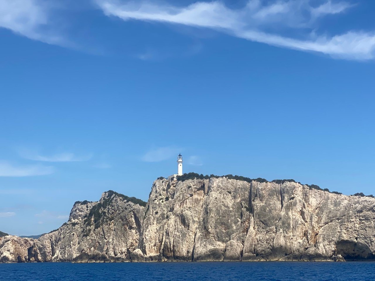 We hebben vier dagen aan de kade gelegen en lekker gegeten bij de restaurantjes. Gegrilde vis en lam en later gestoofde lemonkip en gestoofde lam. Traditionele Griekse gerechten en erg lekker, met friet, dat dan weer wel. Er waren veel Nederlandse zeilboten aanwezig, veel meer dan we vorig jaar zagen. Eén van die zeilboten was de Flux Capacitor, die we een aantal jaren geleden in Portugal hebben ontmoet. Maandag 30 april zijn we vertrokken van de kade. Er was wel een tegenvaller, de draaibrug bij Lefkas was defect. We belden de brugwachter en er werd gezegd dat het wel 2 tot 3 dagen kon duren. Aanvankelijk wilden we vervolgens het binnenmeer van Preveza opgaan, maar we besloten toch om langs de westkant van Lefkas te varen. Het was wel ruim 20 mijl meer, maar uiteindelijk was het een prachtig mooie windstille tocht. Bij Syvota lieten we ons anker vallen en niet veel later kwam ook de Flux Capacitor de baai binnenvaren.