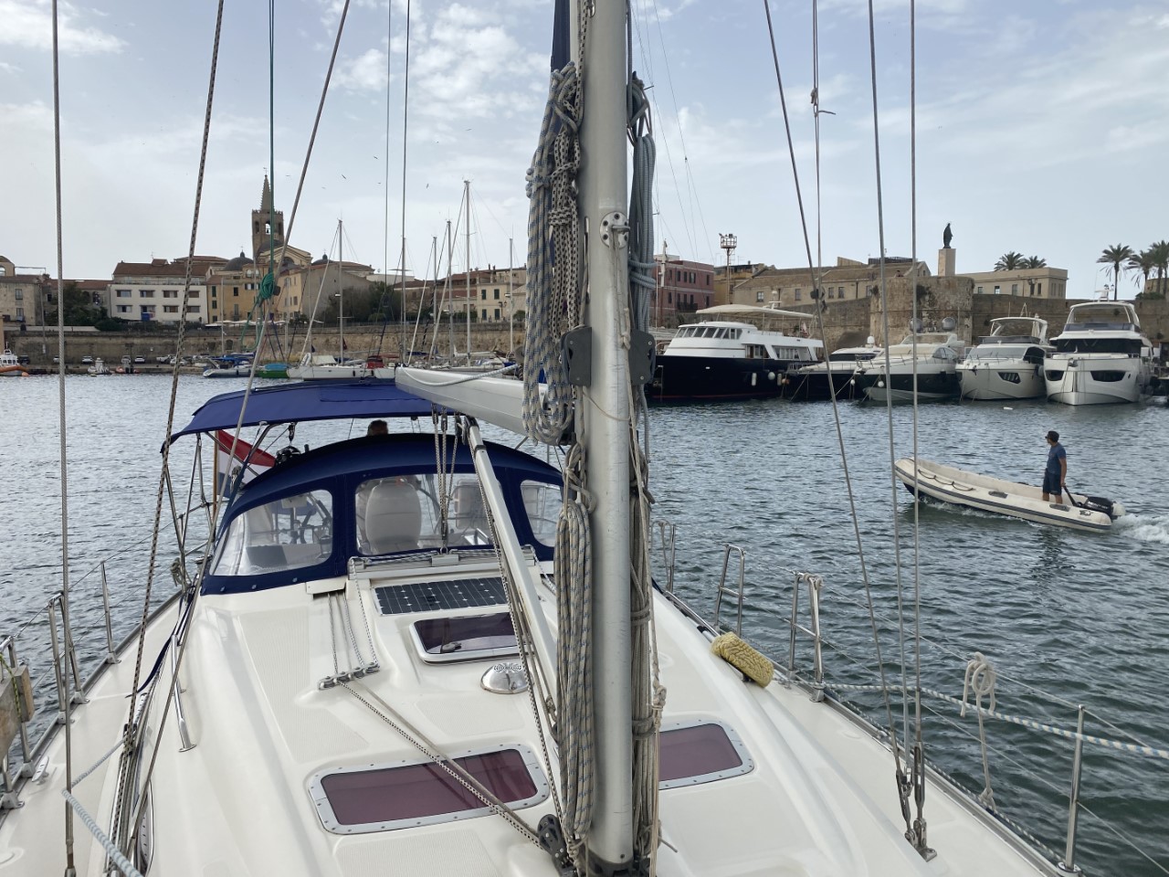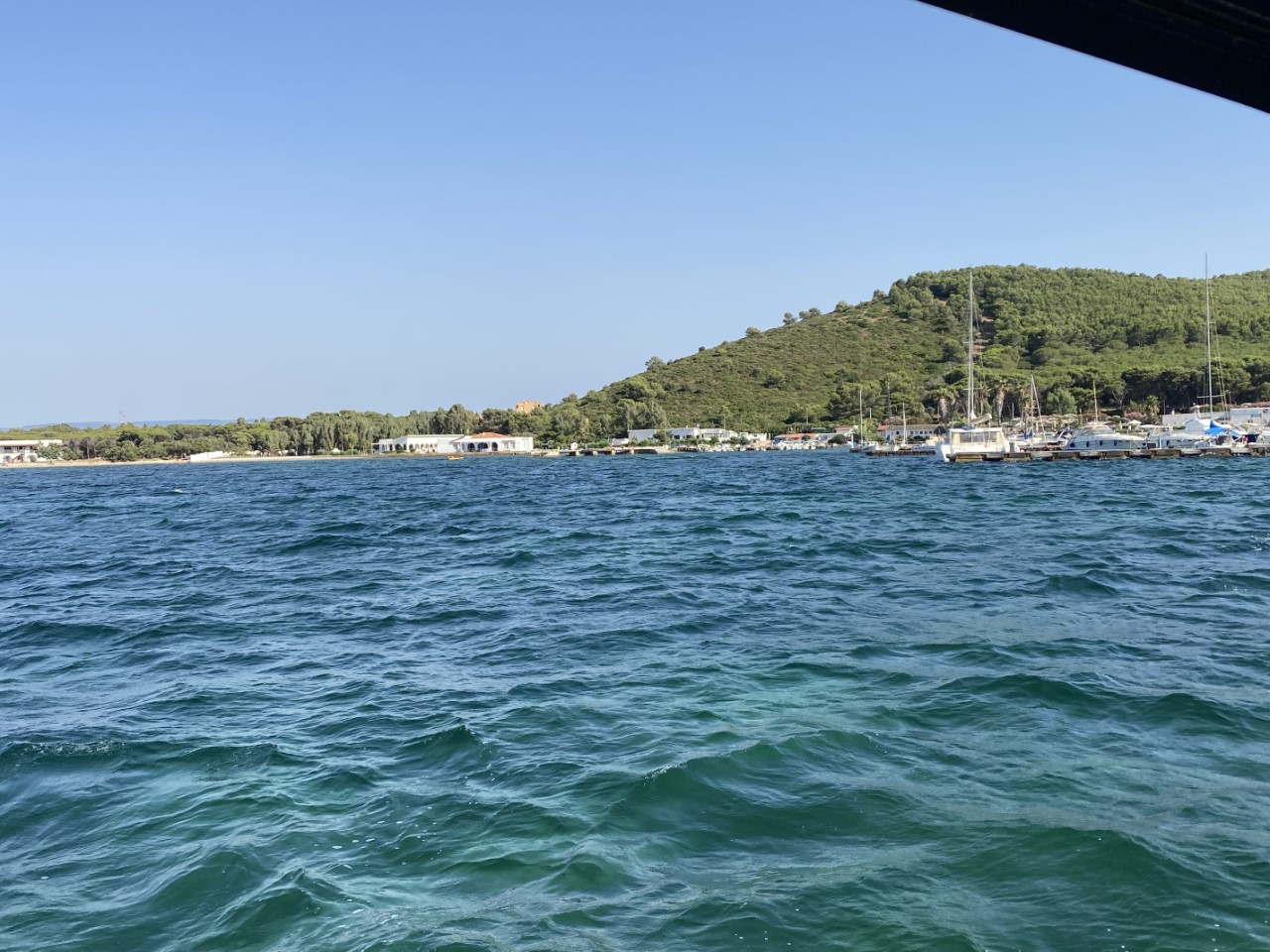 De verwachting is, dat de wind in de avond gaat afnemen, zodat we toch hier het perfecte ankerplekje hebben. Morgen heel misschien naar de Neptunusgrot met het bijbootje, als de golven niet te hoog zijn.