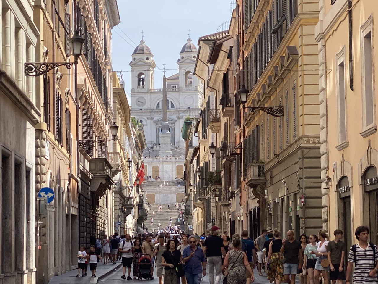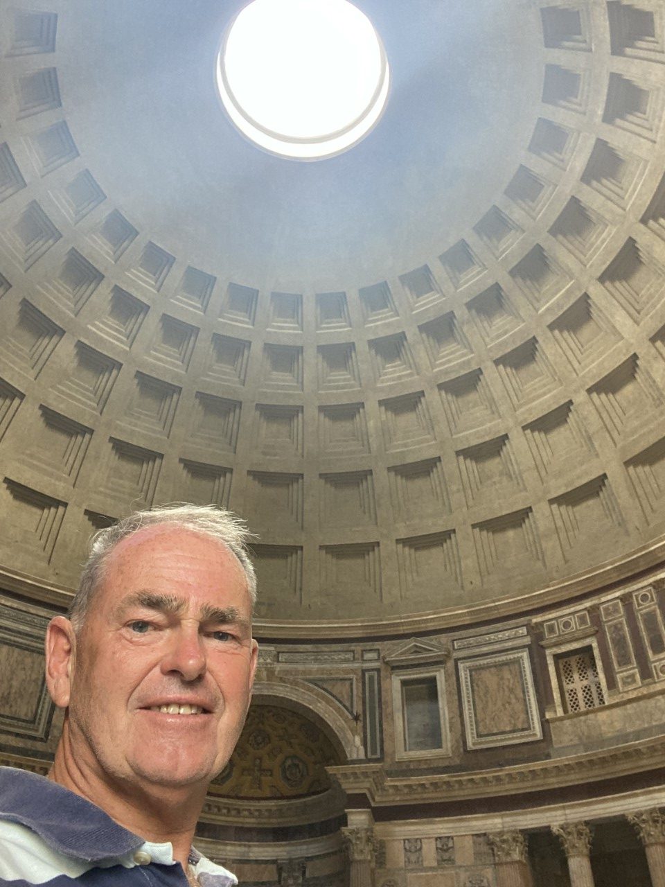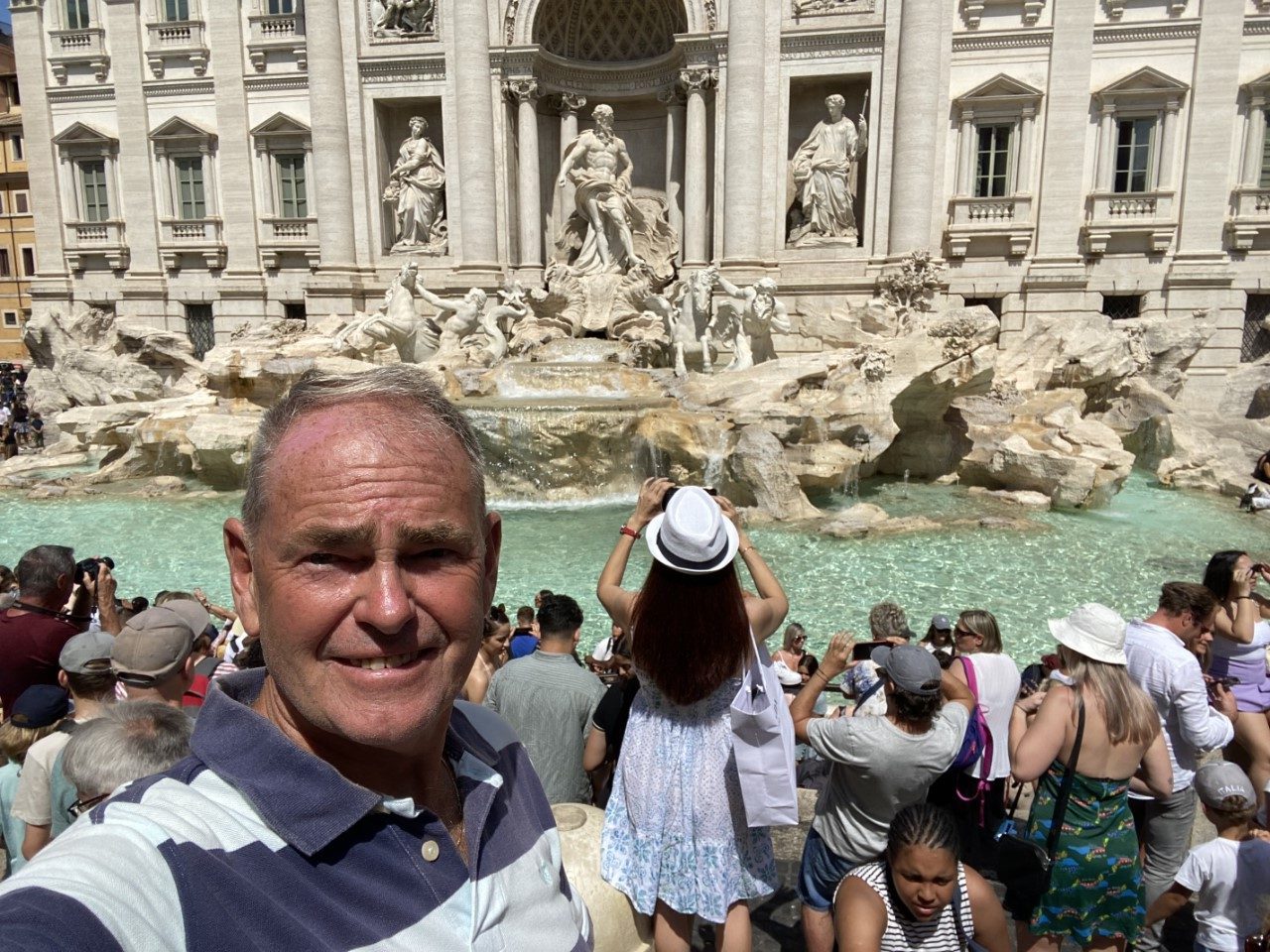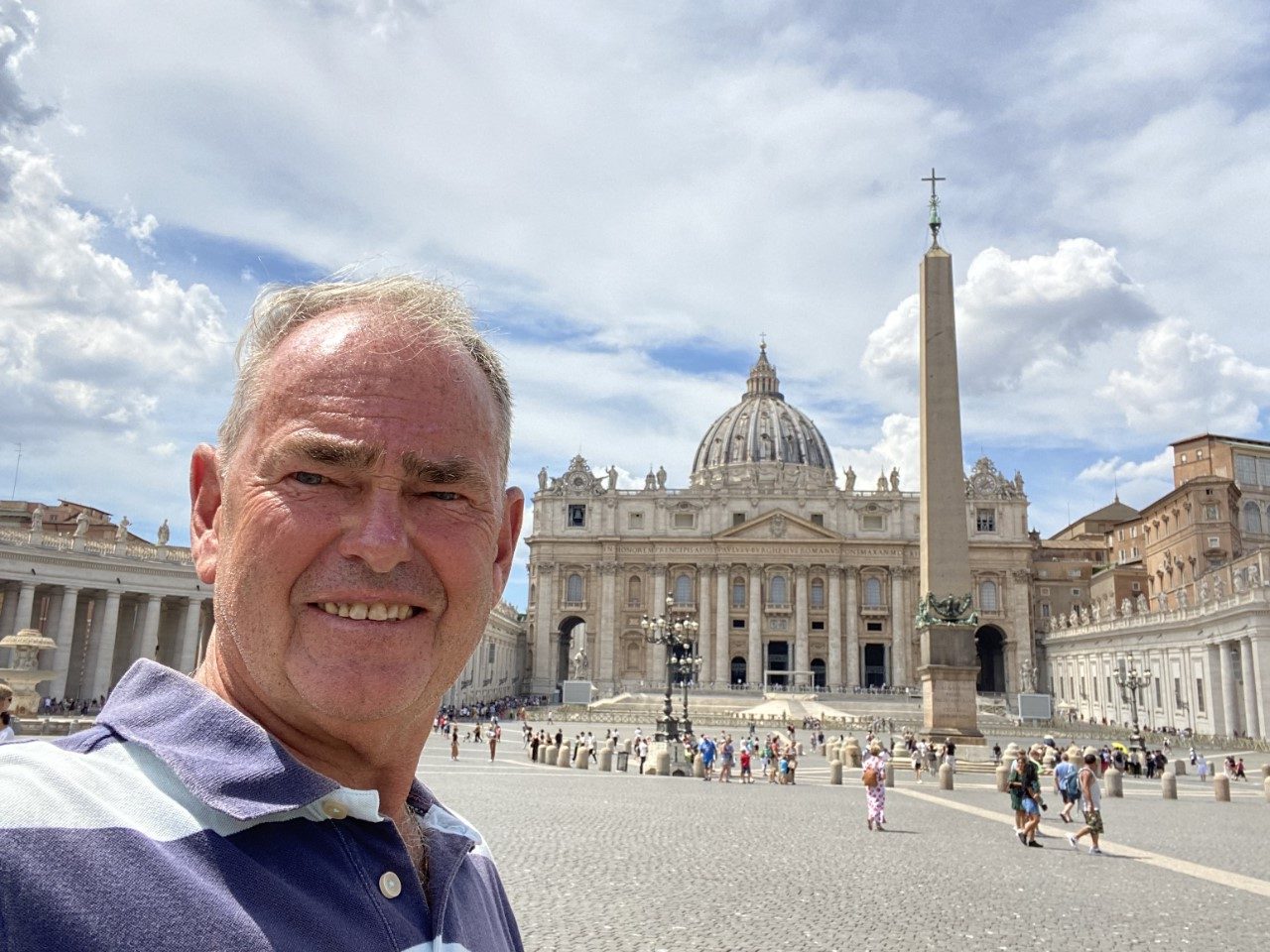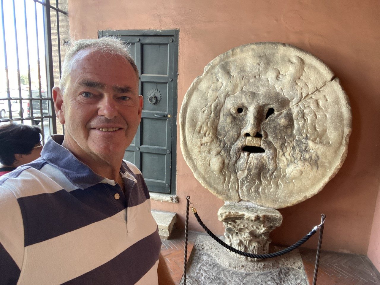 Om 07:30 uur sta ik bij de bushalte voor de rit naar de metro. Op het Station Lido Centro komt de metro al snel. Nog eenmaal overstappen en ik ben in Rome. Iets meer dan een uur reizen voor €1,30. Ik stap iets eerder uit en sta direct voor het Colosseum. De laatste keer was ruim veertig jaar geleden en ik vind er een hoop veranderd. Veel hekken en beveiliging. Het drukke verkeer in de brede straten eromheen is verdwenen. Veertig jaar geleden konden we een stukje het Colosseum inlopen en vrij de arena bekijken, die vrijheid is er nu niet meer. Langslopend ga ik via de grote renbaan van Circus Maximus en kom ik bij de Mond der Waarheid bij de Santa Maria In Cosmedin. Ik heb m’n hand nog. Vervolgens verder langs het Roman Forum, bij Piazza Venezia, waar het grote witte monument van Victor Emmanuel staat, loop ik richting het Pantheon, waar vlakbij het Olifantje van Bernini staat. Heel even sta ik in de rij voor het Pantheon en ik ben binnen. Een mooi indrukwekkend gebouw. Tijd voor een ijsje. De beste, volgens Mark en Marion, “Giolitti”. Het ijsje is lekker, maar ik mis m’n smaakje “Malaga”. Het is een stukje lopen naar Piazza Navona, ruim veertig jaar geleden hadden we daar vlakbij een pensionnetje. Dat heb ik niet terug kunnen vinden. Het is een klein stukje naar de Spaanse trappen, die ik allemaal beklommen heb. Bij de Trevifontein is het erg druk, maar wel mooi. Ik heb nu alle hoogtepunten gezien in Rome en ik ga lopen naar Vaticaanstad. Via een brug over de Tiber loop ik zo tegen de Engelburcht aan, dan linksaf en ik zie de Sint Pieterskerk. De rij om de Basiliek in te komen viel mee, dus ben ik maar aangesloten om op audiëntie te gaan. Ik heb nu echt alles gezien en loop een beetje door wat gezellige straatjes naar het treinstation van Rome. Het was gelukkig niet zo’n warme dag. Ik ben totaal 10 uur in Rome geweest en heb 24 kilometer geslenterd. Over een weekje zijn we weer in Rome voor twee dagen, gezellig met Marianne en Daniel en dan gaan we de hoogtepunten van binnen bekijken.