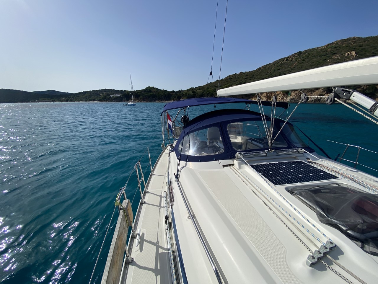 Maar wat doe je op zo’n ankerplek heel de dag? Niet zo veel, de boot wat opruimen, mail bijwerken en wat administratie, Italiaans leren, de krant lezen, het weer checken, ons reisplan bijschaven, beetje boekje lezen, de volgende haven reserveren, wat kokkerellen, een dutje en een heel kort verhaaltje schrijven.