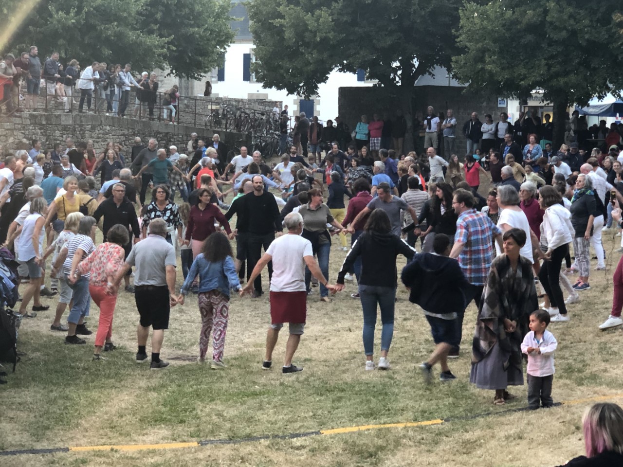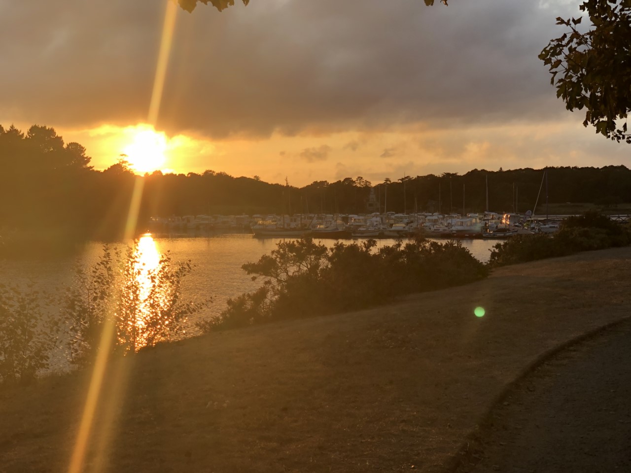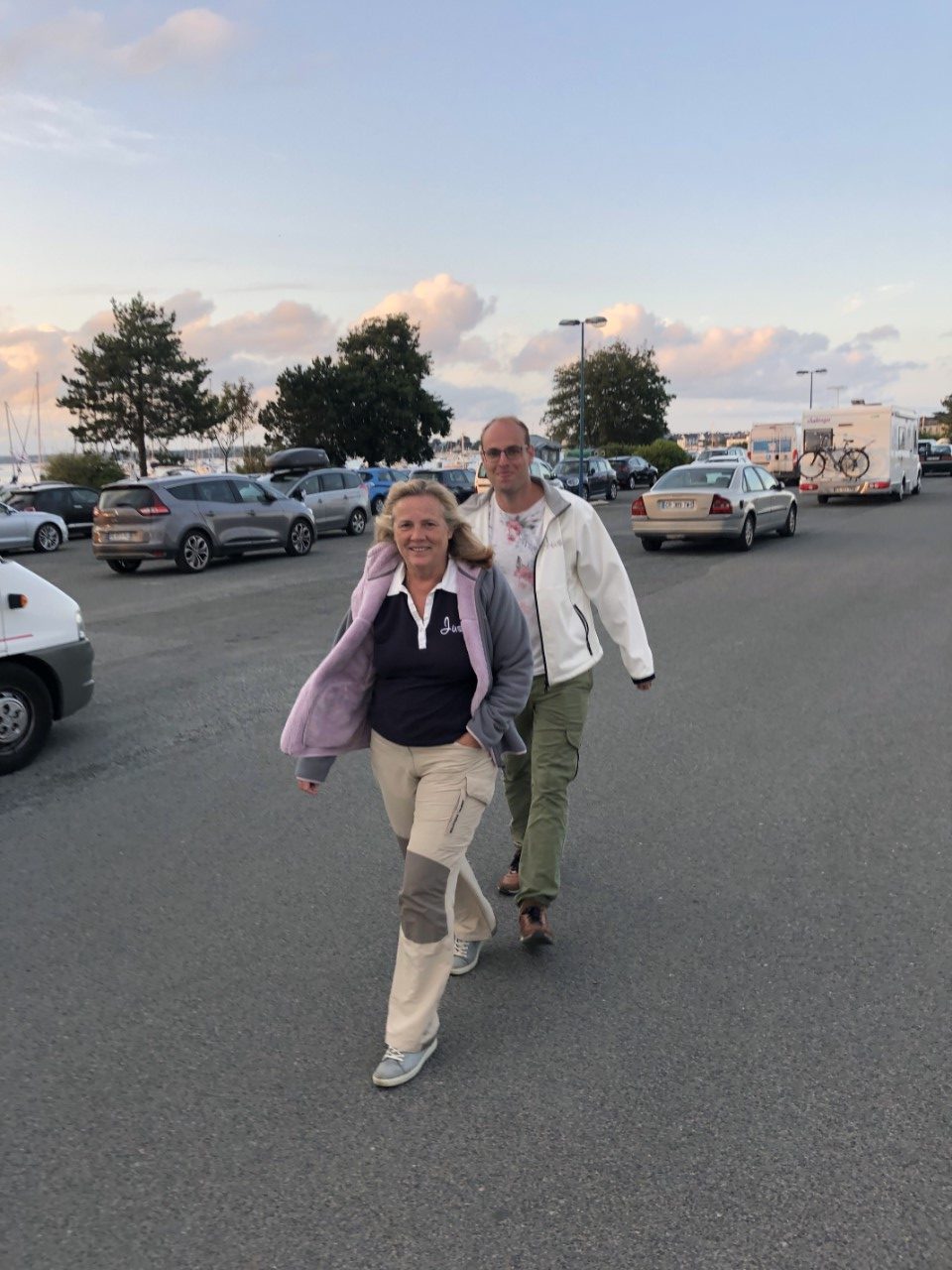 We vertrekken toch maar ietsepietsje eerder. Dit heeft als voordeel dat we langer de stroom mee hebben en we zijn op tijd in de haven voor de Formule 1 race. Zoals iedere keer is er weinig tot geen wind en als er wat wind staat pal tegen. Maar halverwege onze tocht, eindelijk wind, alle zeilen bij. Maar de wind die er was, zat in een klein frontje boven zee. We hebben het grootzeil weer ingerold en op dat moment belde de Jarige Mark via Facetime, die jammer genoeg vandaag niet bij ons is. Maar hij koos wel op een goed tijdstip, want we waren omsingeld door dolfijnen. We zagen in de wijde omtrek vinnetjes en hoog springende dolfijnen. Een enkeling kwam even dichtbij de Just, maar we denken dat ze een uitgebreid zeebanket hadden, want de vogels doken ook vaak in het water voor een visje. Toen we uit de Baie D’Audierne waren, verdwenen ook de dolfijnen. In Loctudy hebben we met z’n drietjes Mark’s verjaardag met een gebakje gevierd. Marianne ging op weg naar een feest in het dorpje en samen met Daniel heb ik de race gekeken. In de avond hoorden we nog steeds muziek uit het dorpje komen en zijn we met z’n allen even wezen kijken. Er speelde een bandje met Bretonse/Keltische muziek en heel het dorp was aan het dansen. De muziek leek voor ons allemaal hetzelfde, maar het dorpje had voor elk nummer een ander dansje. Terug op de Just hoorden we nog steeds de muziek en wij kijken wat we morgen gaan doen.