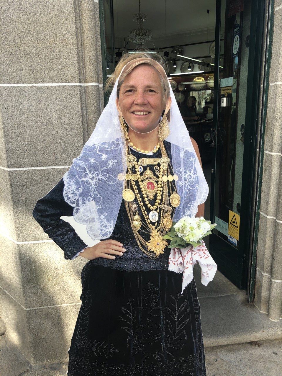 De landvasten gooiden we weer vroeg los. We hebben er zin in om naar Portugal te varen. Samen met een Zweedse zeilboot vaarden we de Ria van Baiona uit. Daniel ging het vandaag groots aanpakken, de vislijn voor een tonijn werd uitgezet. Om de Ria uit te varen gingen we over hoge golven heen, maar eenmaal op de oceaan hadden we een lange hoge deining. De Just wordt langzaam opgetild en we glijden er weer vanaf. We hadden ook nog twee Engelse catamarans achter ons. Af en toe probeerden we een zeiltje uit te rollen, maar die hingen er als vaatdoekjes bij. Dus die rolden we maar weer in. Bij Río Miño, een rivier die de grens is tussen Spanje en Portugal, hebben we het gastenvlaggetje gewisseld. Ook hebben we de klok een uurtje teruggezet om gelijk te lopen met de Portugese. Een uurtje na de vlaggenceremonie en de terug-in-de-tijdsprong te hebben gemaakt, hebben we het fokje bijgezet en nu stond die er wel mooi bij. Nadat we een hele lange havenpier zijn voorbij gevaren, konden we de rivier Rio Lima opvaren. We konden even voor de gecombineerde weg-spoorbrug van Eifel de haven indraaien. De voetgangersbrug een mini-Erasmusbrug stond open. Rond 11:00 uur hadden we gebeld voor een plekje en aangegeven dat we 13.30 uur aan zouden komen. Zoals Hollanders zijn, meldden we ons precies op tijd. De havenmeester had telefonisch aan ons een plek toegewezen en kwam ons al tegemoet gelopen. Alles ging in perfect Engels en leverde geen enkel probleem op. We hadden in de Almanak gelezen, dat er in het weekend dichtbij 20 augustus een soort carnaval gevierd wordt. Er zouden grote poppen door de straten gaan en veel klederdrachten te zien zijn. Jammer is alleen dat dit jaar met alle Coronaregels er volgens de havenmeester maar 10% van de feestelijkheden doorgaan. Wij zijn het stadje in gegaan en proefden gelijk al een Portugees sfeertje. De mensen zijn anders en veel huizen hebben de bekende tegeltjes op de gevels. Wat ook bijdroeg aan het sfeertje waren de luidsprekers overal, die traditionele volkswijsjes lieten horen. En het sfeertje hebben we ook geproefd bij onze eerste Pastéis de Nata, wat een lekkernij. Er liepen inderdaad veel bewoners in fleurige klederdracht en er was veel gezelligheid in de stad. Overal stonden op straat tafeltjes waar mensen zaten te eten. Hier en daar aan lange tafels met hele gezinnen. Wij hebben nog een paar makrelen in de koelkast voor ons avondmaaltje en die wilden we niet nog een dag laten wachten. Bovendien wil ik graag op zaterdag brood eten en dat houden we ook zoveel mogelijk in ere. In de avond gingen we nog even de stad in om te kijken of er iets te doen is. We hebben nog tot laat rond geslenterd en ook om 23:00 toen we terug gingen wat het nog net zo gezellig en druk.