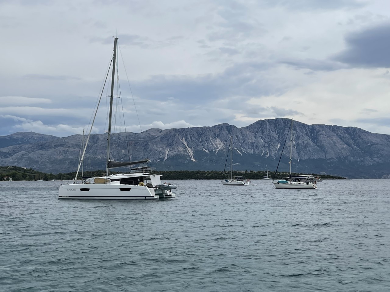 Soms komen er wat zeilboten langs om ook hier te ankeren. Wij hebben een stevig ankerplekje met voldoende ruimte om ons heen. We liggen in de relaxhouding met onze iPadjes en E-boekjes. Morgen halen we ons anker op en varen een paar mijl naar Nydri.