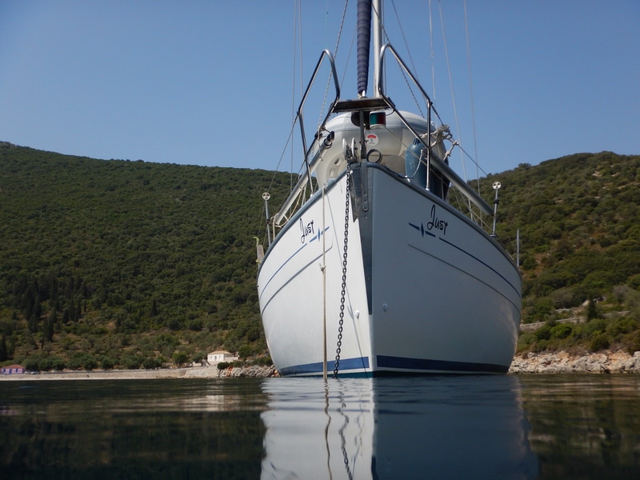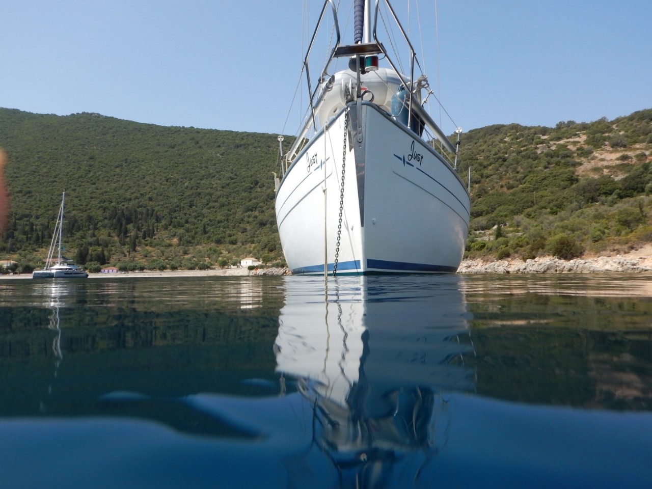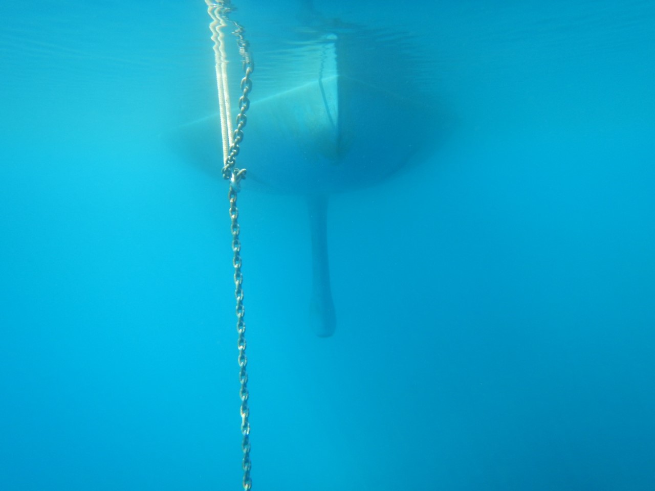 Zo we liggen weer, een uurtje later heb ik nog even een duik genomen om het anker te controleren en het sein veilig aan Marianne gegeven, dat we rustig kunnen slapen vannacht.