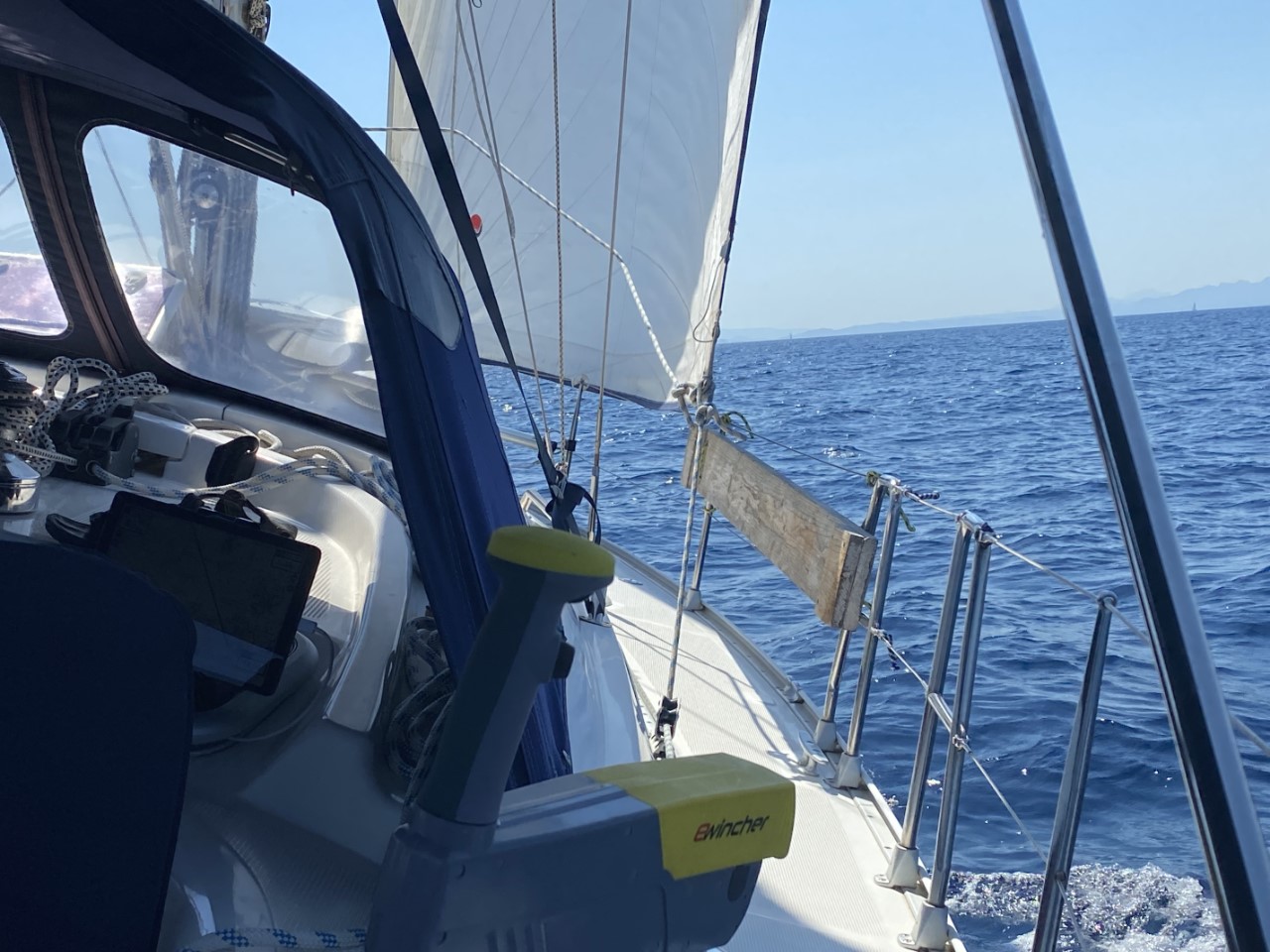 Wat een ochtend! Gisteravond heb ik de Just alvast vertrekklaar gemaakt, om zo vroeg mogelijk te vertrekken. Om 07:00 uur staan we op, want ik wil om 08:00 uur water en diesel tanken. Ik zie al op de AIS, dat het 40-meter jacht nog voor het tankstation ligt. Dan maar vragen voor een plek om alvast water te tanken. Via de marifoon krijgen we te horen, “iedereen slaapt nog, probeer het maar om 10:00 uur”. Wat een haven, het gaat met de Franse slag. Het wachten begint. Daar ben ik toch al niet zo sterk in, maar om naar Sardinië te varen met weinig water en daar ergens te tanken vinden we geen optie. Rond 9:00 uur komt dat grote jacht voorbij varen. Ik start direct de motor en gooi de mooringlijnen los. Dat is snel, zegt Marianne.