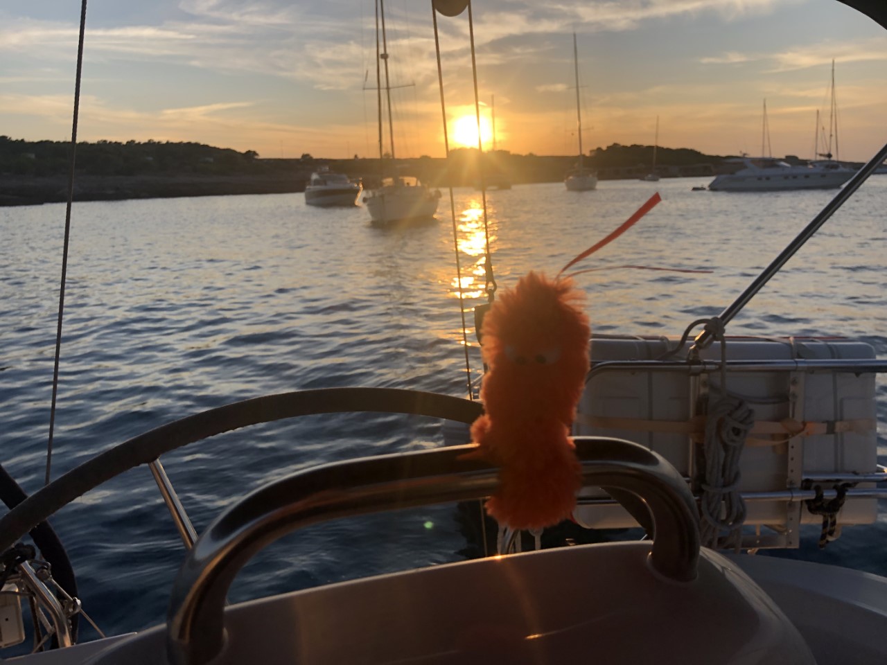 De rest van de middag hebben we naar andere bootjes gekeken, die last hebben van een krabbend anker of proberen te ankeren. Later in de middag neemt de wind weer af en is het hier weer even rustig als gisteren. We hadden nog het idee om naar Port Antoni de Portmany te gaan met de bus, maar dat is verschoven naar een van de komende dagen.