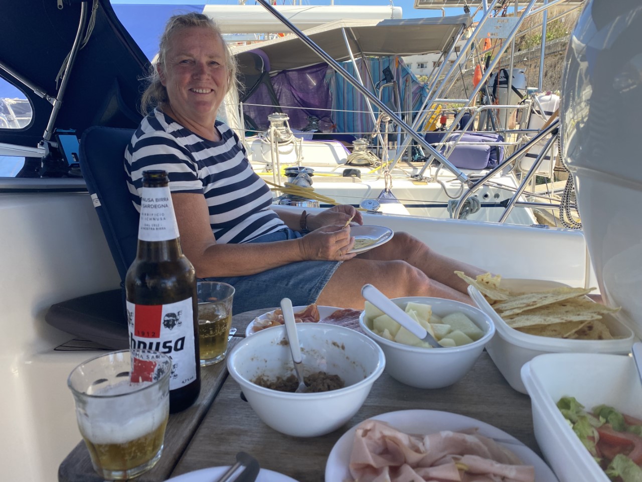 Na een rustig ochtendje verlaten we Bosa. We meren nog even aan bij het tankstation om de dieselvoorraad aan te vullen. Het is wel steeds schrikken. Vorig jaar betaalden we € 1,30 p/ltr en nu al € 2,10 p/ltr. We moeten toch vaker gaan varen als we de wind in de zeilen hebben en niet zoals vandaag weer recht op de kop. We hadden kunnen laveren, maar dat vinden we vaak te lang duren om ons doel te bereiken.