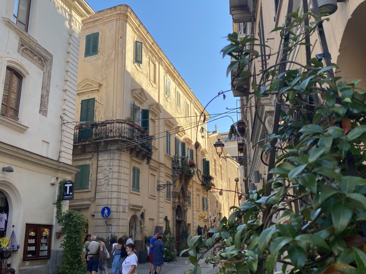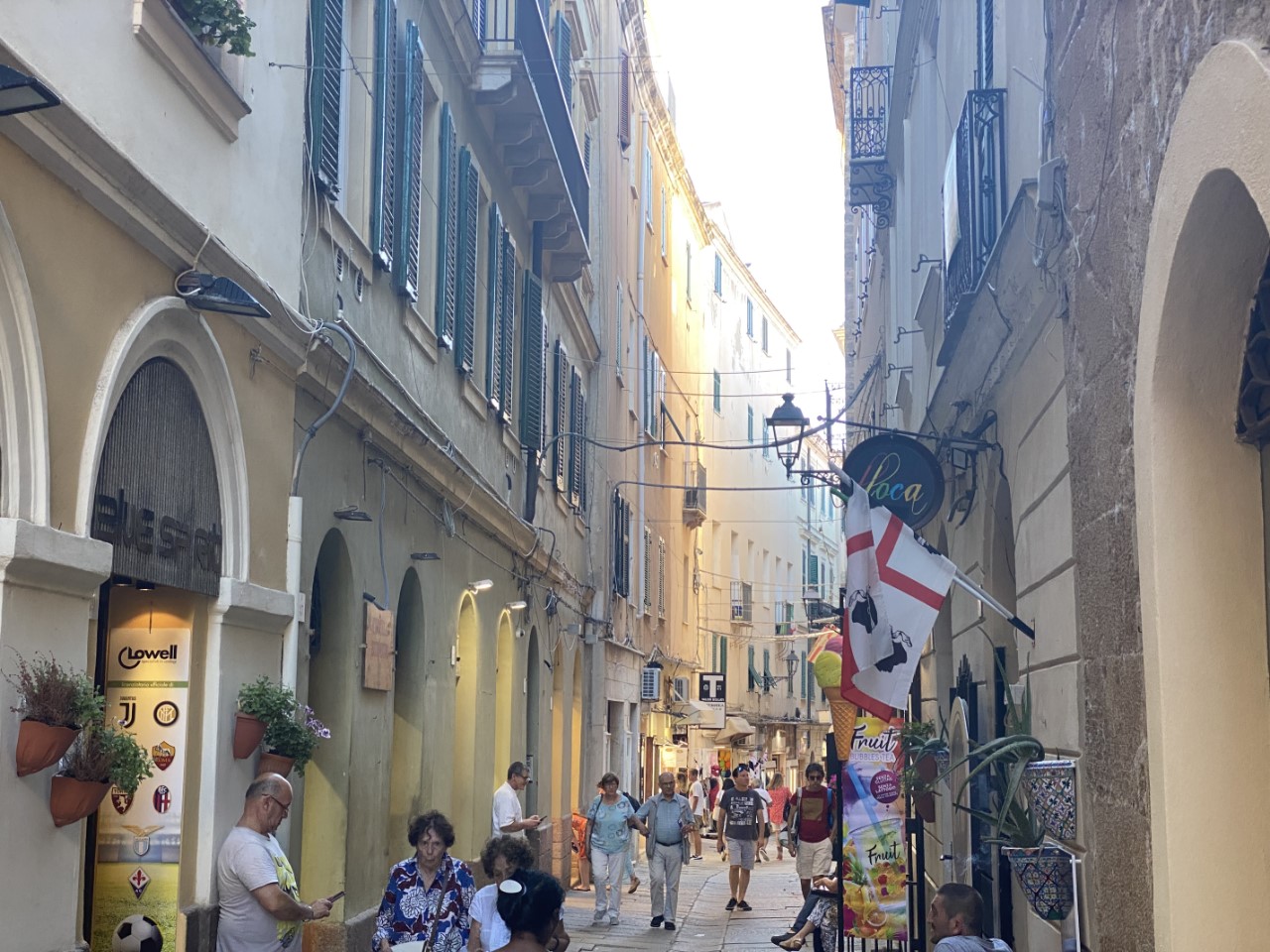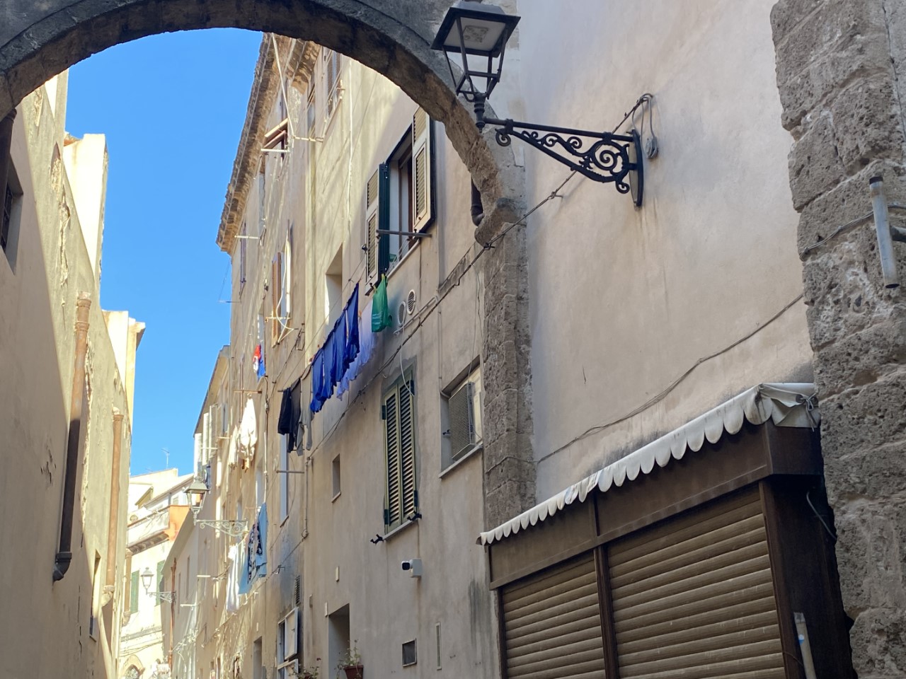 In het kuipje zitten we lekker te smikkelen van de Sardijnse specialiteiten, die we gisteren hadden ingeslagen. De temperatuur is in de namiddag nog steeds tegen de 33 graden, dus onze wandeling stellen we steeds iets uit. In de vooravond hebben we eerst de stadsmuur beklommen en bewandeld, voordat we wat gaan slenteren door de smalle winkelstraatjes met keitjes. Er zijn veel ijszaken, terrassen en sieradenwinkels met koraal en souvenirs. Hier en daar zien we in de zijstraatjes de was wapperen.