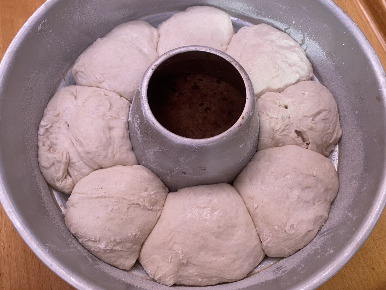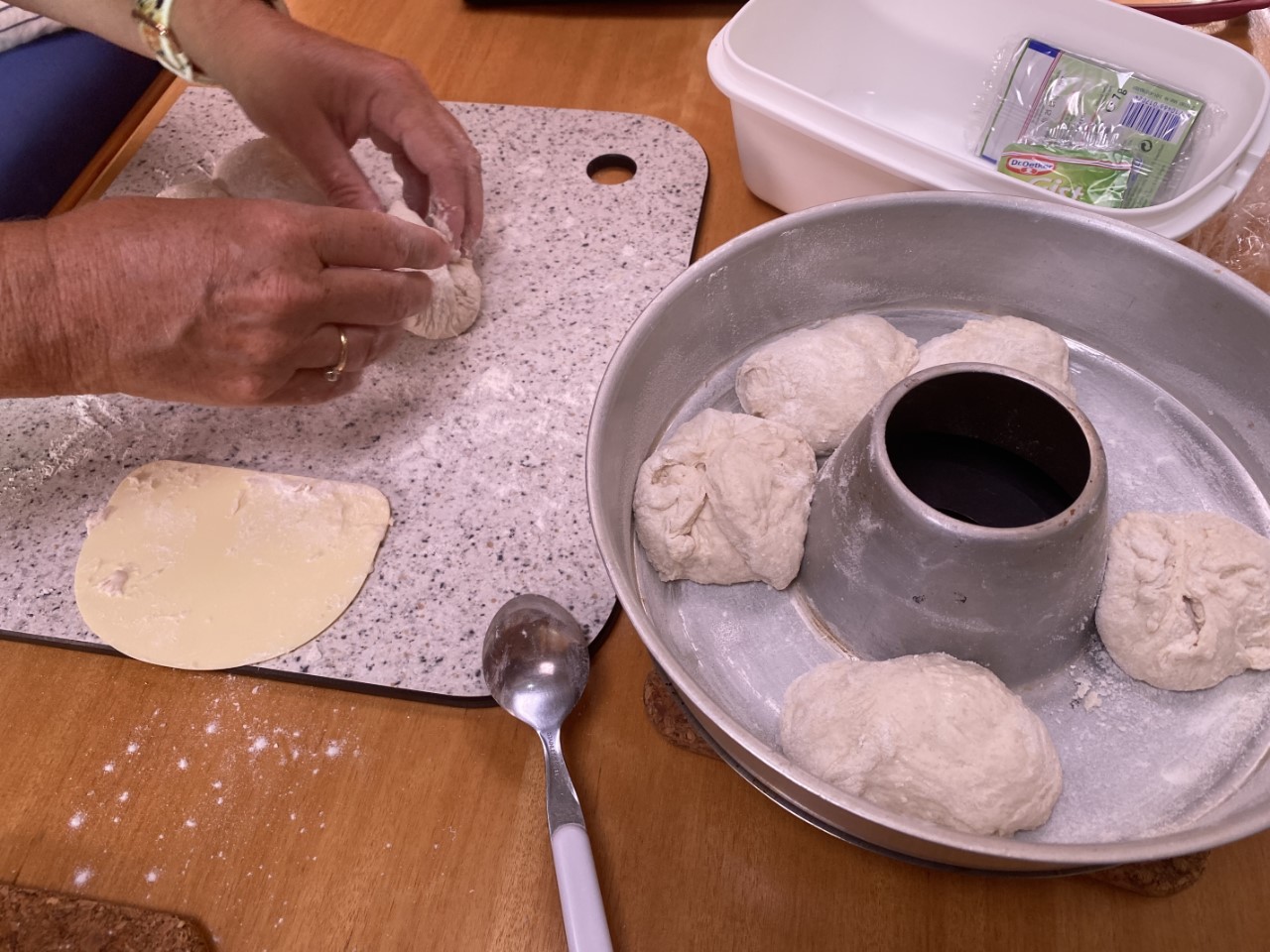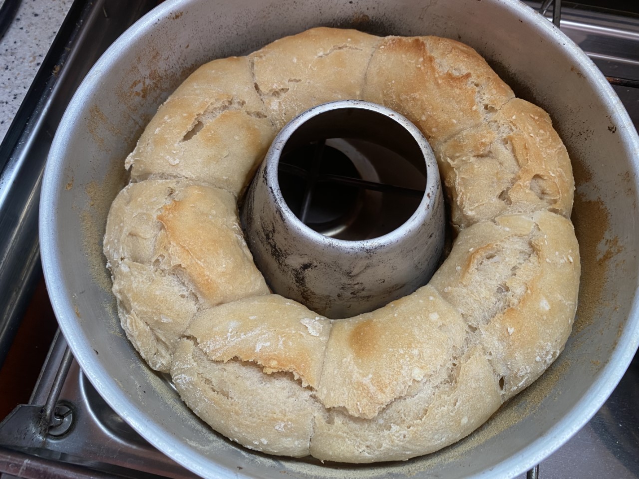 Gisteravond waren we het bijna vergeten. Er moest nog laat een deegje gezet worden, voor verse harde broodjes om ons zondagse ontbijtje iets specialer te maken. Het deegje is flink gerezen en bijna verdubbeld. Nog even een paar maal omvouwen. Dan nog een half uurtje narijzen in de wonderpan en de pan kan op de gaspit. De broodjes kwamen heerlijk knapperig uit de wonderpan. Dat moeten we toch vaker gaan doen. Ik heb even gecheckt in de blog van vorig jaar en behalve wat cake en taartjes hebben we geen enkele keer brood gebakken.