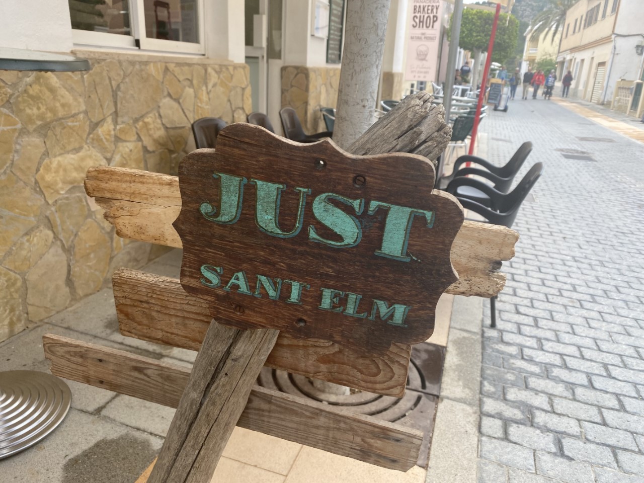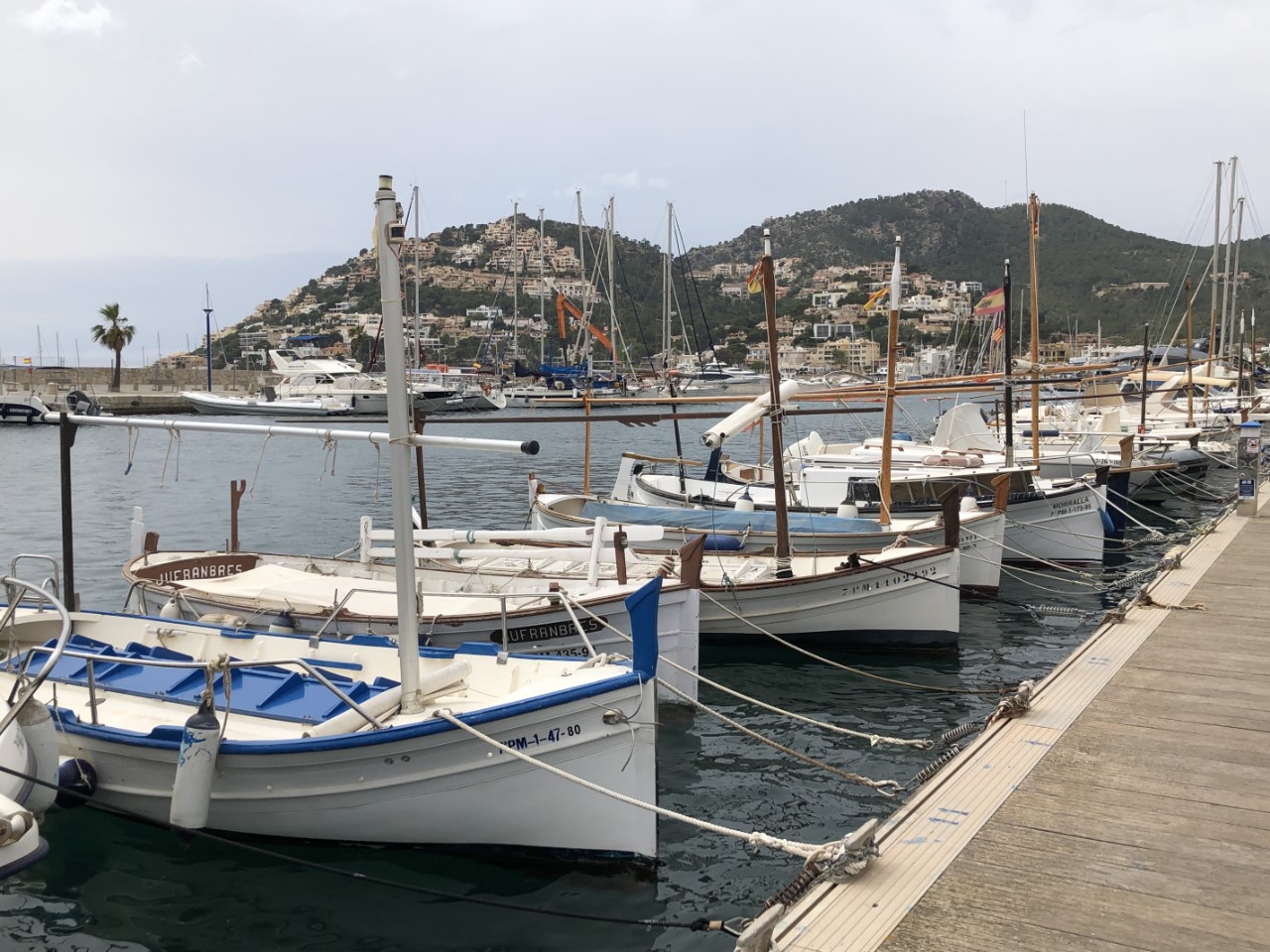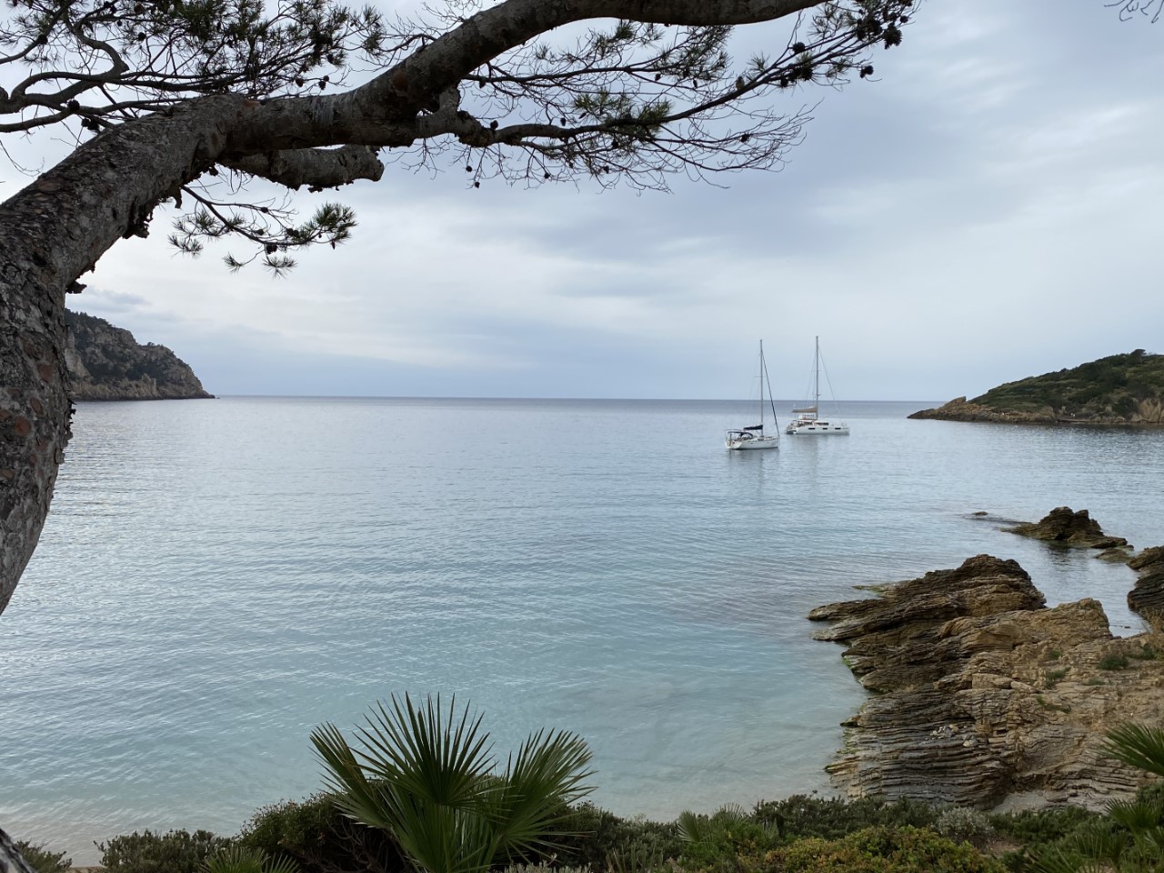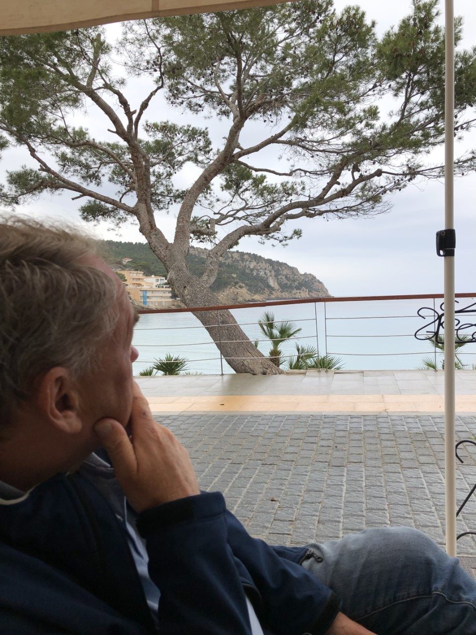 We hebben vanmorgen flink zitten puzzelen, wat gaan we doen. Er valt af en toe een licht regenbuitje en voor heel de dag waren die kleine buitjes voorspeld. We zijn toch maar gegaan. Met de bus naar Sant Elm. Dat plaatsje heeft een mooie Cala, waar we binnenkort ons anker uit gooien. De bushalte is onduidelijk, want daar staat de lijn 122 op. Er wordt door de Tourist Information en door het havenkantoor verteld, dat de 121 er ook stopt, en ja hoor, precies op tijd. De rit naar Sant Elm is schitterend. Mooie vergezichten, flinke beklimmingen, haarspeldbochten, pijnbomen en talloze olijfboomgaarden. Aangekomen in Sant Elm wandelen we een beetje rond en drinken een bakje koffie met uitzicht op de mooie baai. Daar zoeken we over een paar dagen een plekje.