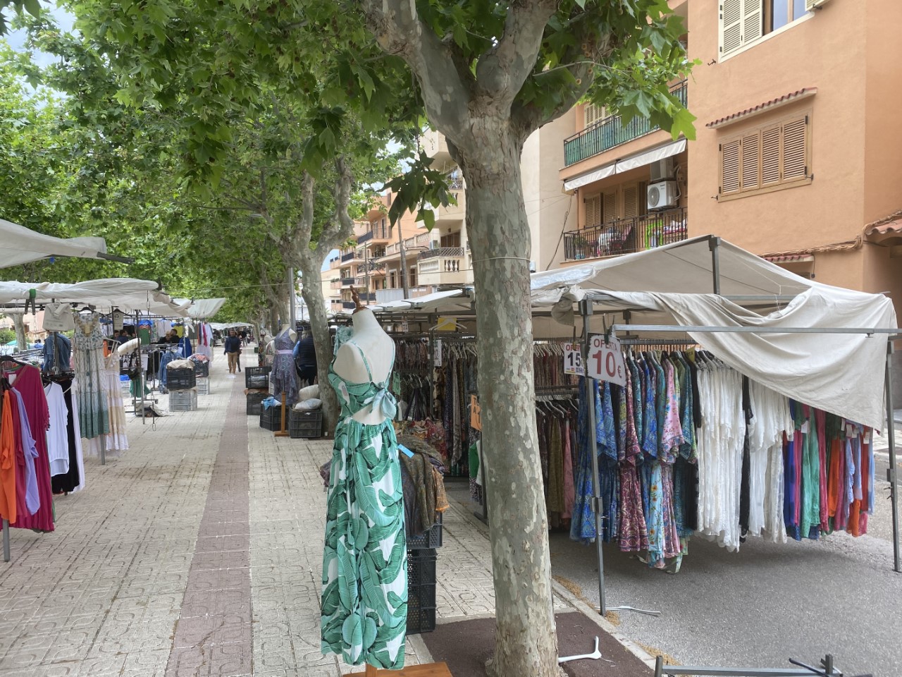 Een uurtje later nemen we de bus terug naar Andratx, een wat groter en minder toeristisch stadje. We zijn uitgestapt vlakbij een grote markt, die door verschillende straatjes loopt. De markt is al aan het afbreken. Het loopt tegen de siësta. We zijn nog een leuk aanziend restaurantje binnen gestapt voor een “Menu Del Dia”. Er zijn nog voldoende tafeltjes, maar die zijn allemaal gereserveerd. We halen dus maar een paar koeken bij de Mercadona voor extra energie voor de geplande wandeling terug naar Port d’Andraxt. De wandeling gaat eerst door allerlei kleine smalle straatjes en het laatste stuk langs de olijfboomgaarden. Bij elkaar vijf kilometer wandelen.