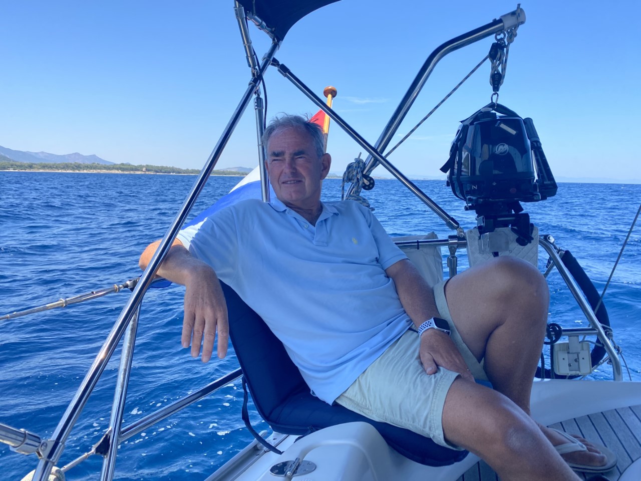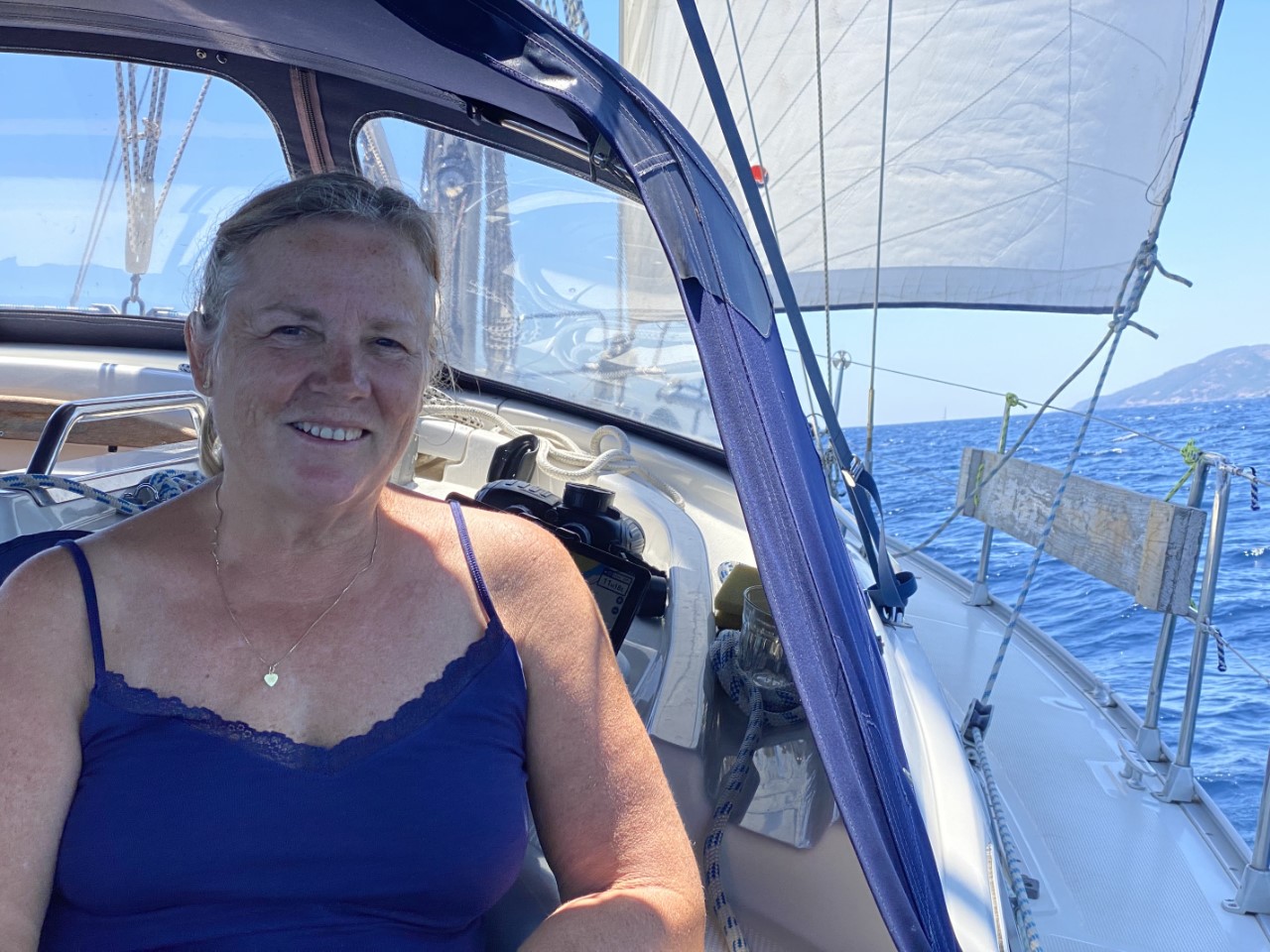 Vertrekdag. Gisteren hebben we de Just weer vertrekklaar gemaakt. Er ontbreken alleen nog wat boodschappen. Ik ga voor het ontbijt naar de lokale Lidl om daar het een en ander in te slaan voor de komende twee/drie dagen als we gaan ankeren. Na het ontbijtje vertrekken we op een mooie tijd. Samen met een heleboel andere zeilboten varen we tussen de ruime havenpieren en kiezen we het ruime sop. Een tiental zeilboten varen naar de Oostkant van Sardinië en hebben een mooi bezeilde koers.