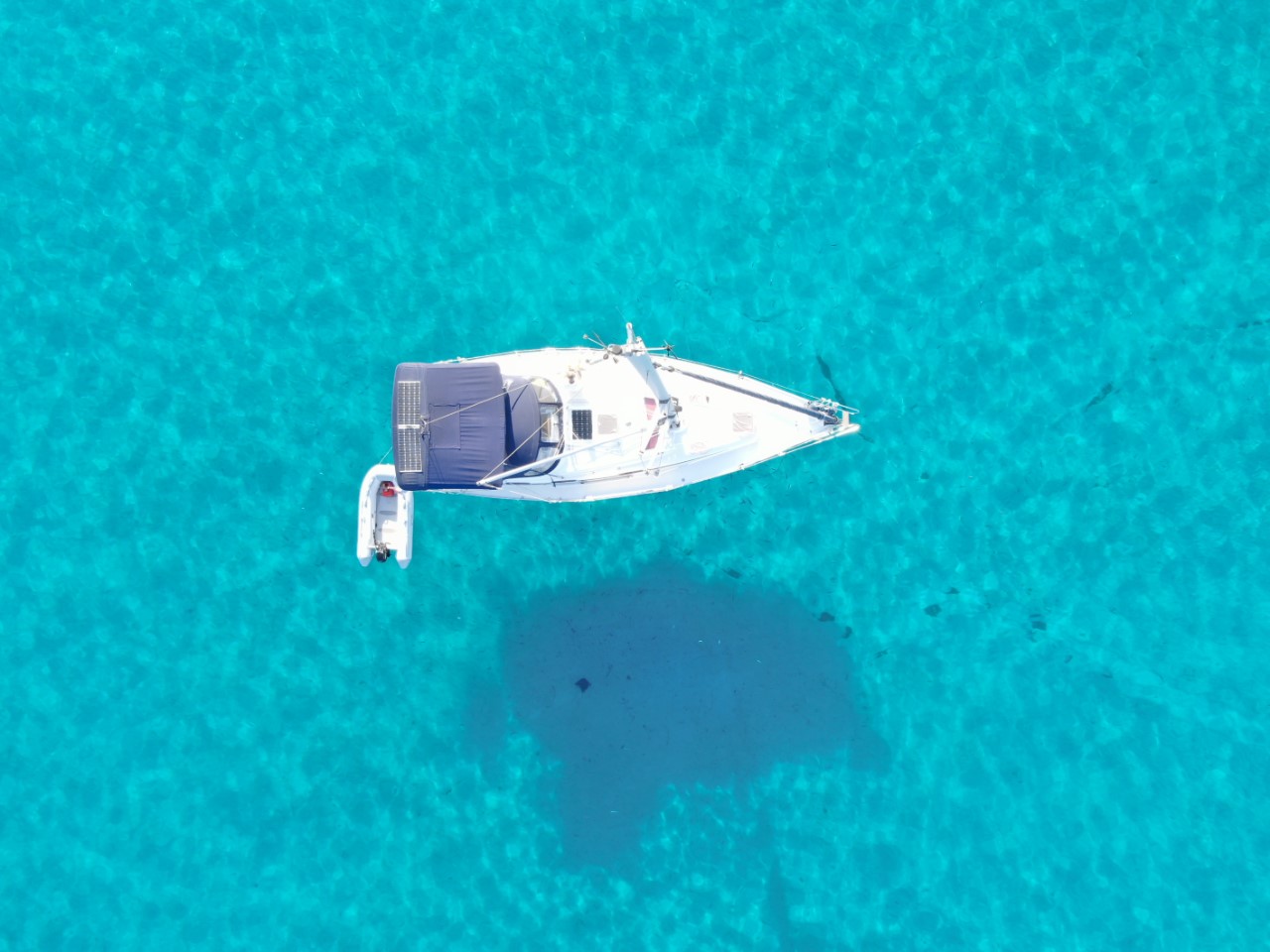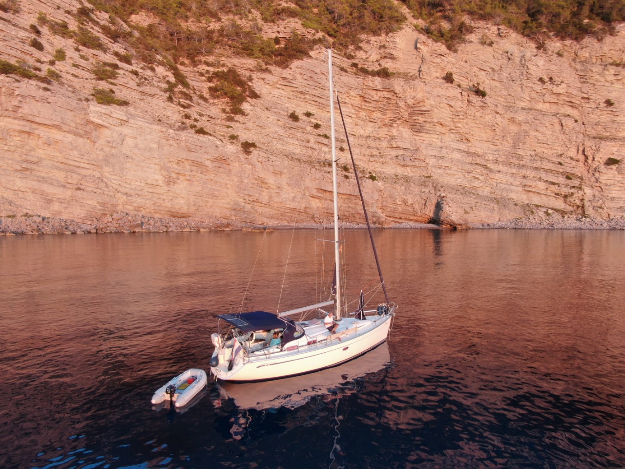 Eindelijk! Ik ga met de drone de lucht in, dit ankerplekje is zo ontzettend mooi. De drone is veilig geland en het anker gelicht. Afgelopen nacht hadden we wat last van de swell. Bij de laatste weerupdate tegen de avond bleek de wind te gaan draaien, maar we hadden geen zin meer om nog naar een andere plek te gaan. We zijn dan ook vroeg vertrokken richting Sant Miquel, daar is ook een Spar supermarkt waar we boodschappen kunnen halen.