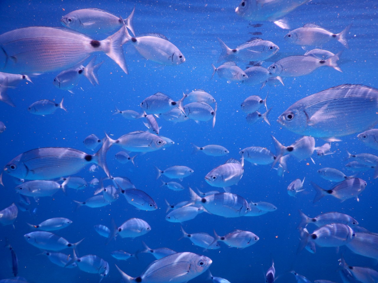Onze tweede excursie is snorkelen langs de rotsen, ik heb wat oud brood meegenomen en dat was weer een spektakel van honderden visje om ons heen. Het is vandaag wel één van de warmste dagen, vrijwel geen wind en die steile bergen rond ons stralen ook volgens ons veel warmte af. Maar we hebben afkoeling genoeg om de Just.