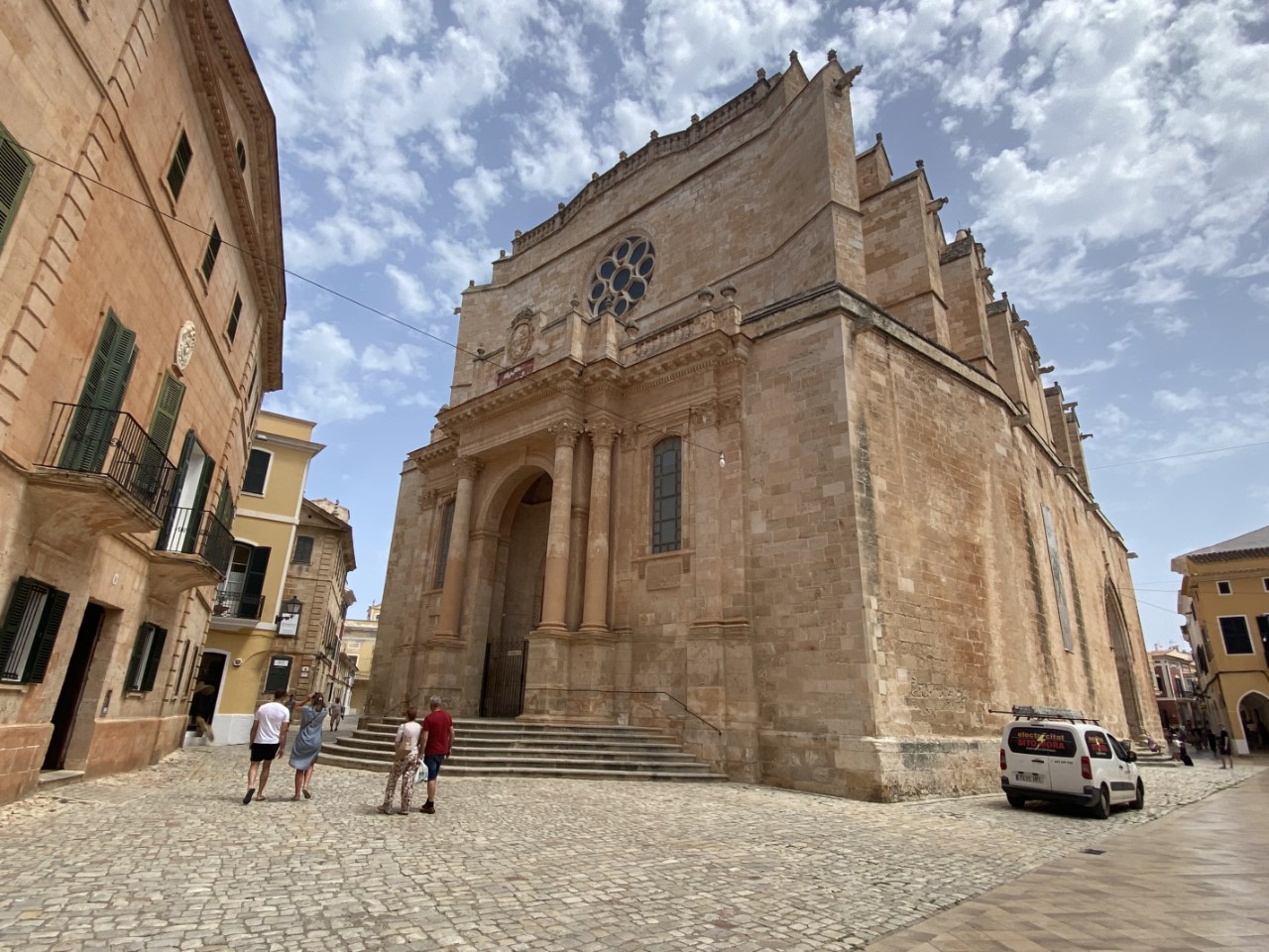 We wandelen direct door, het oude centrum in. Met de stadsplattegrond in de hand bezoeken we alle gebouwen, straatjes, kerken en pleintjes. Bij wat een klein restaurantje lijkt, gaan we voor een Menu del Dia. Het restaurantje blijkt een restaurant met een mooi, ruim dakterras, waar we luxe hebben geluncht.