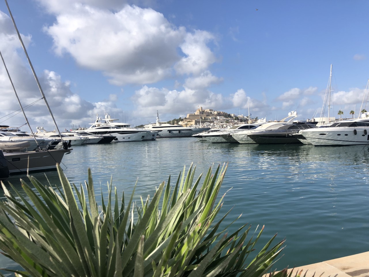 We gaan vandaag op de terugweg. Maar eerst naar Ibiza-stad. We kunnen nog steeds niet de haven in voor een redelijke prijs, dus stellen we voor aan Ria en Wim om met het bijbootje naar de kant te gaan om zo Ibiza-stad te bezoeken. We moeten daarvoor helemaal rond de haven lopen, wat nog een flink eind is. Er liggen daar veel luxe grote motorjachten en een enkele zeilboot.