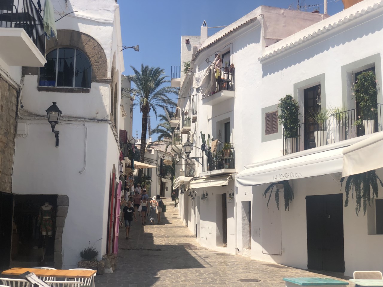 Vandaag maar weer eens een wekkertje gezet, want we moeten een bus halen. Gisteravond hebben we alle timetables bekeken om vanaf de bushalte bij onze baai naar Ibiza te komen. Wat wij begrepen dat de eerste bus om 9:15 uur zal gaan of dat hij op dat moment van het beginpunt vertrekt. Dus wij zijn al vroeg naar het strandje geroeid en hebben het bijbootje een beetje vastgebonden achter gelaten. We staan dan ook ruim voor tijd bij de halte maar geen bus. De volgende bus zou om 10:10 uur gaan en uiteindelijk ging die wel met een Spaans te laat kwartiertje. De overstap in Sant Joseph gaat redelijk vlot en we zijn ruim voor de afspraak van 12:00 uur in Ibiza voor de PCR-Test.