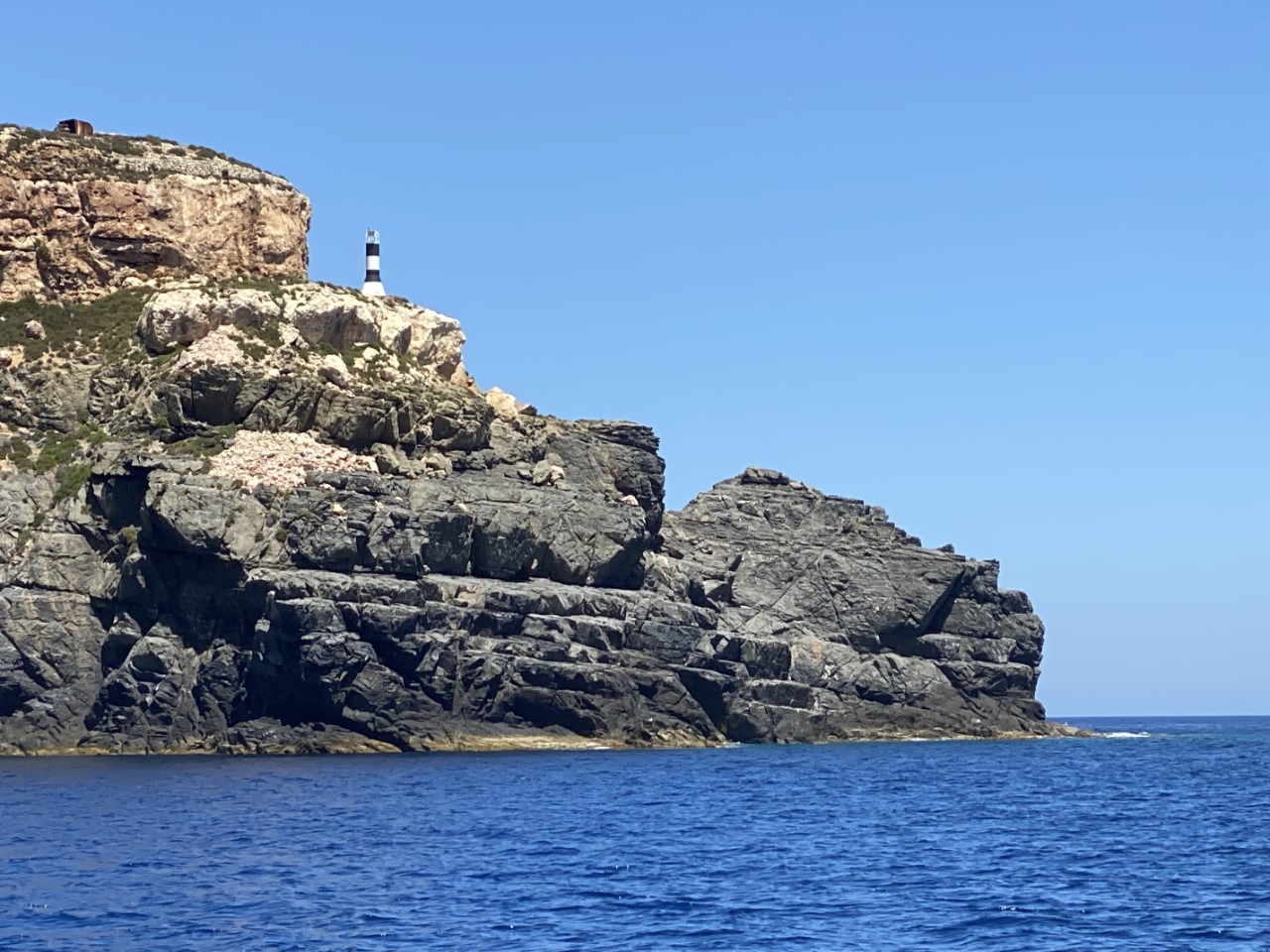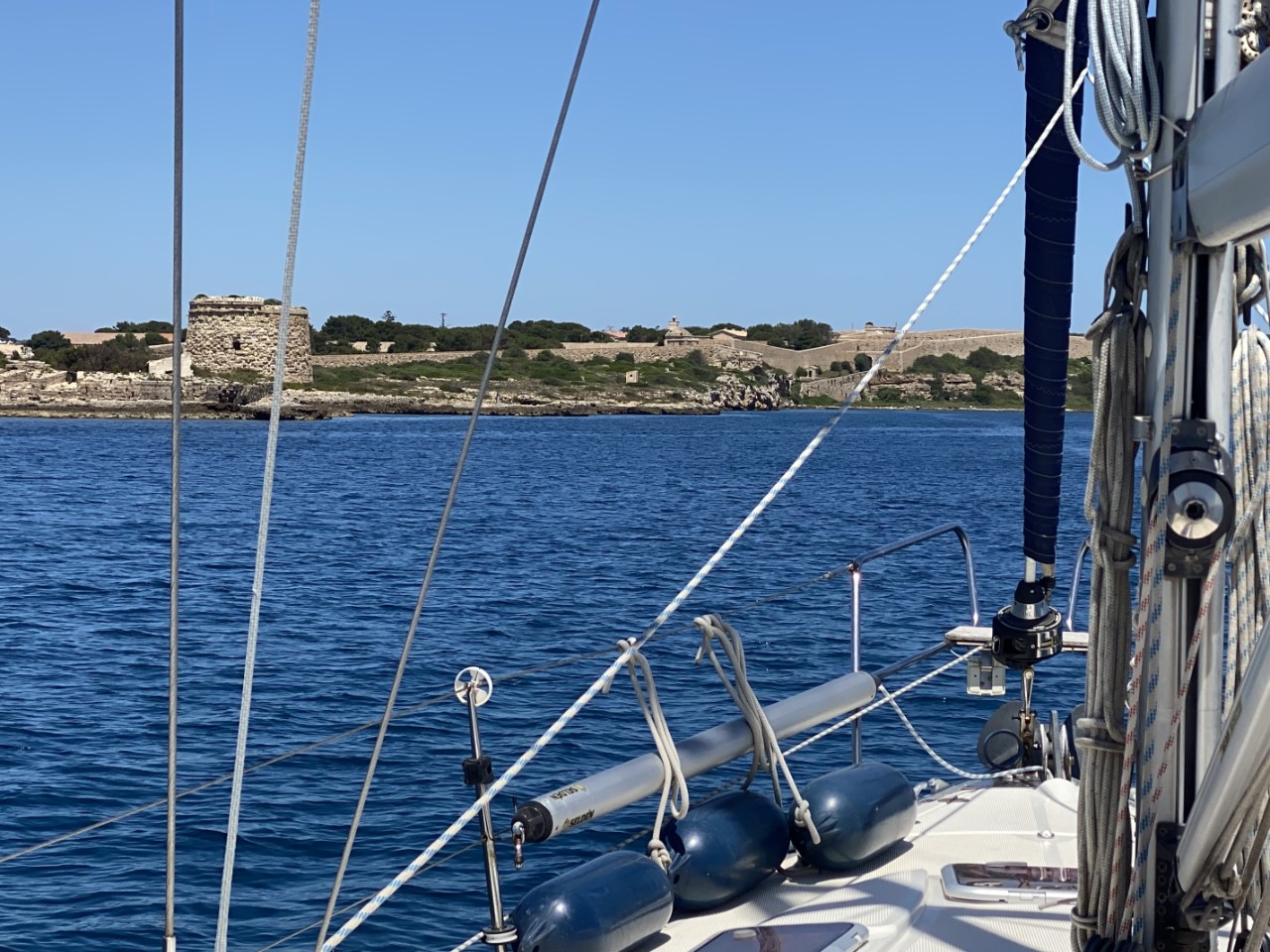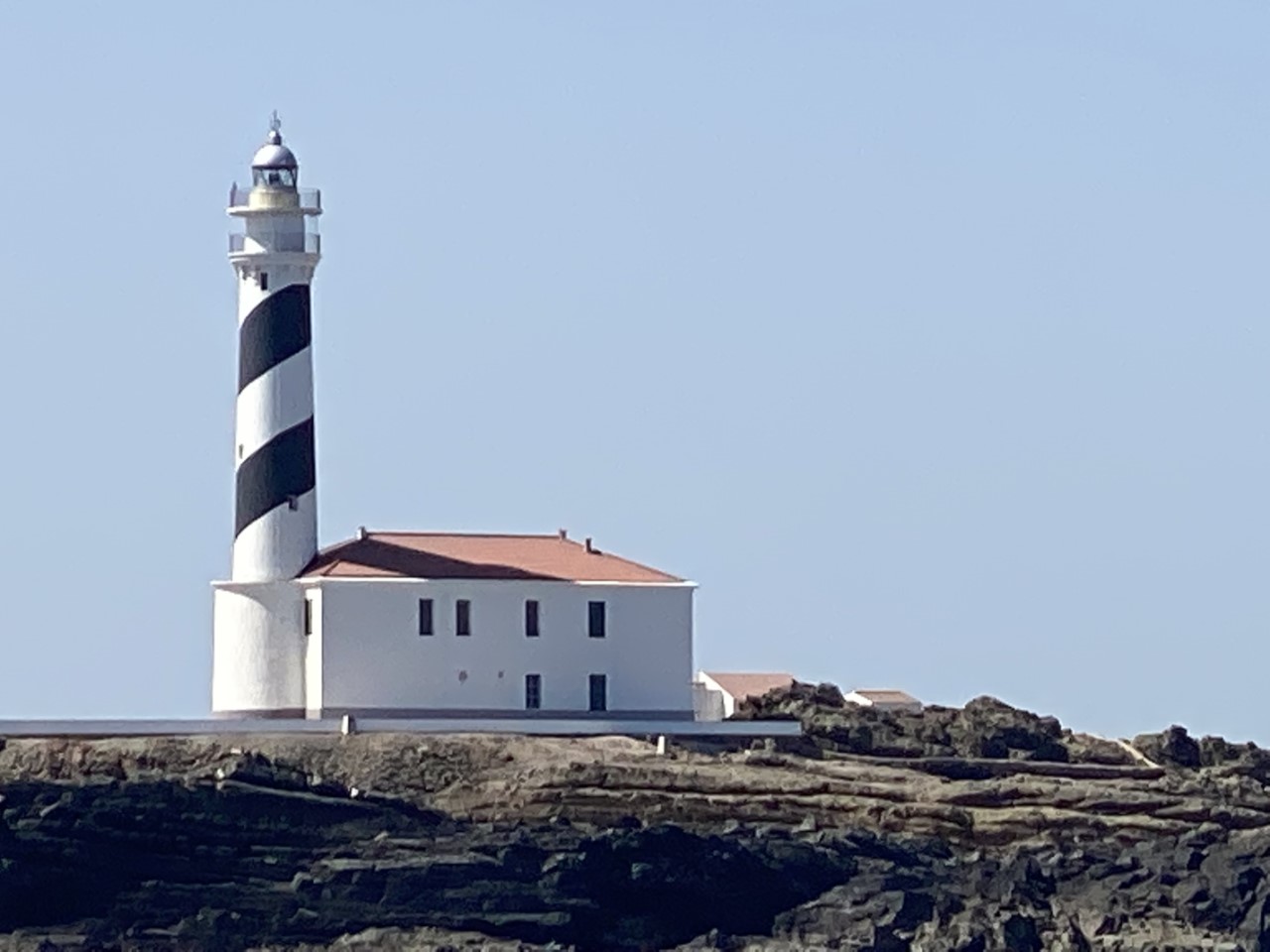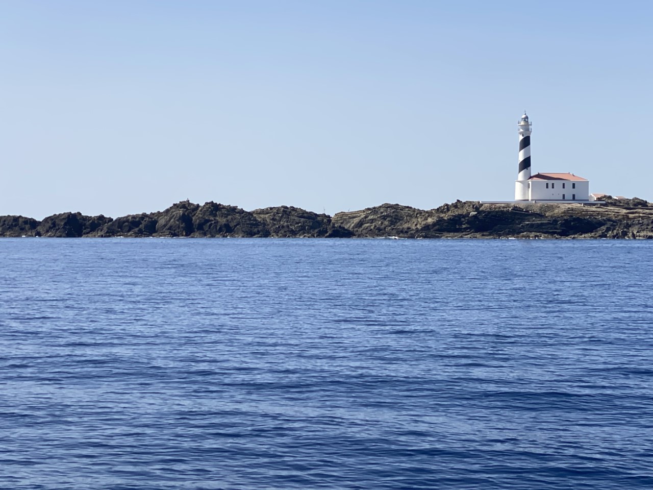 Tegen 8:00 uur neemt de swell weer af en gaan we toch voor een uitgebreid ontbijtje. Rond 9:00 uur verlaten we deze mooie baai, op naar de volgende. De zee is spiegelglad. We passeren de vuurtoren op de Punta de s’Espero, het meest Oostelijke puntje van Menorca, terwijl we zachtjes doorpruttelen naar de ankerplek vlakbij Mahon.