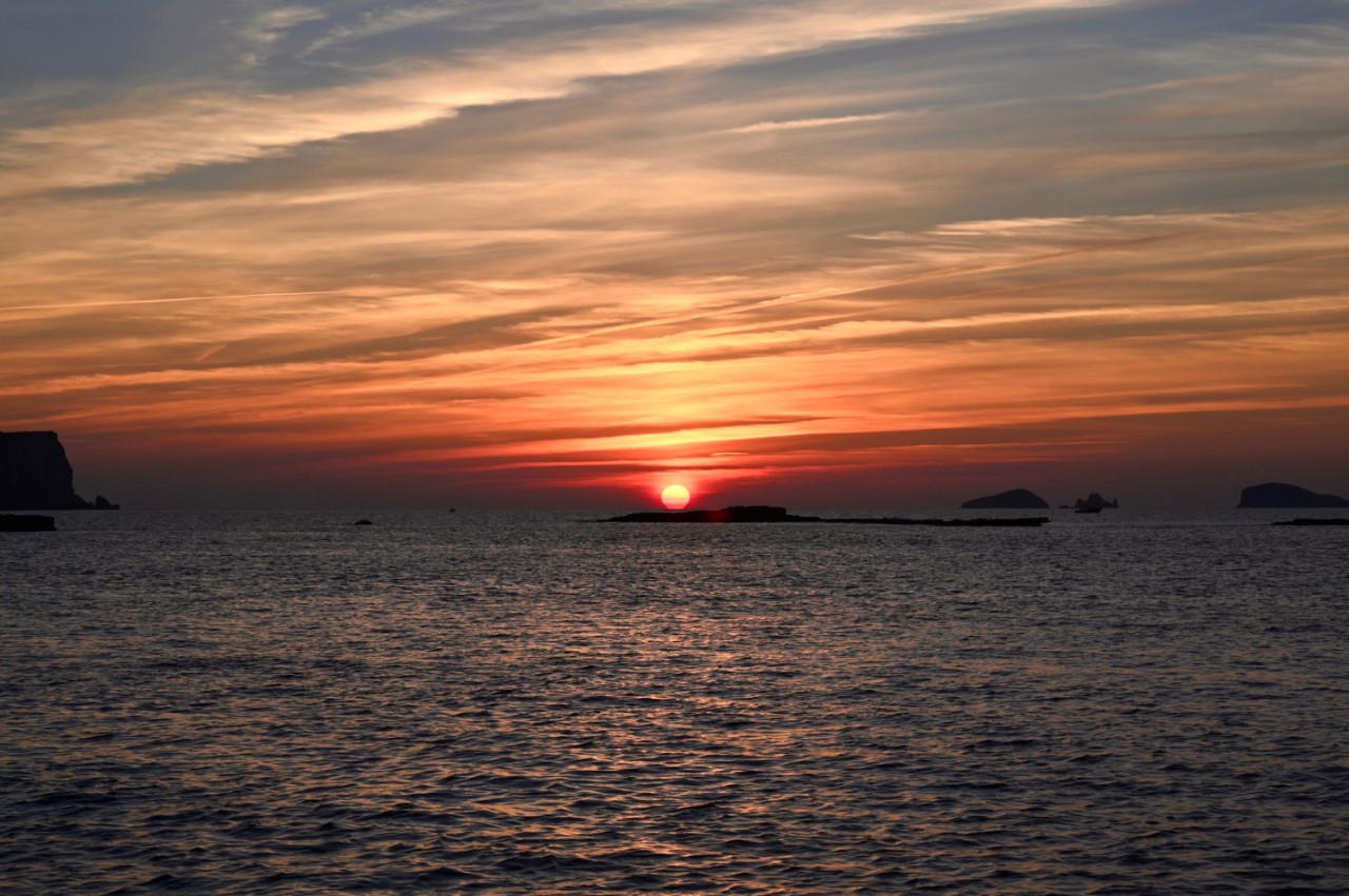 De zwempartijtjes op ons laatste dagje op Ibiza zijn nu van de baan, dan maar een beetje zonnebaden. Morgen/vannacht gaan we vroeg van ons anker voor nu echt ons laatste tochtje dit seizoen naar Valencia. En nu nog even genieten van de mooie Sunset bij Cala Comte.