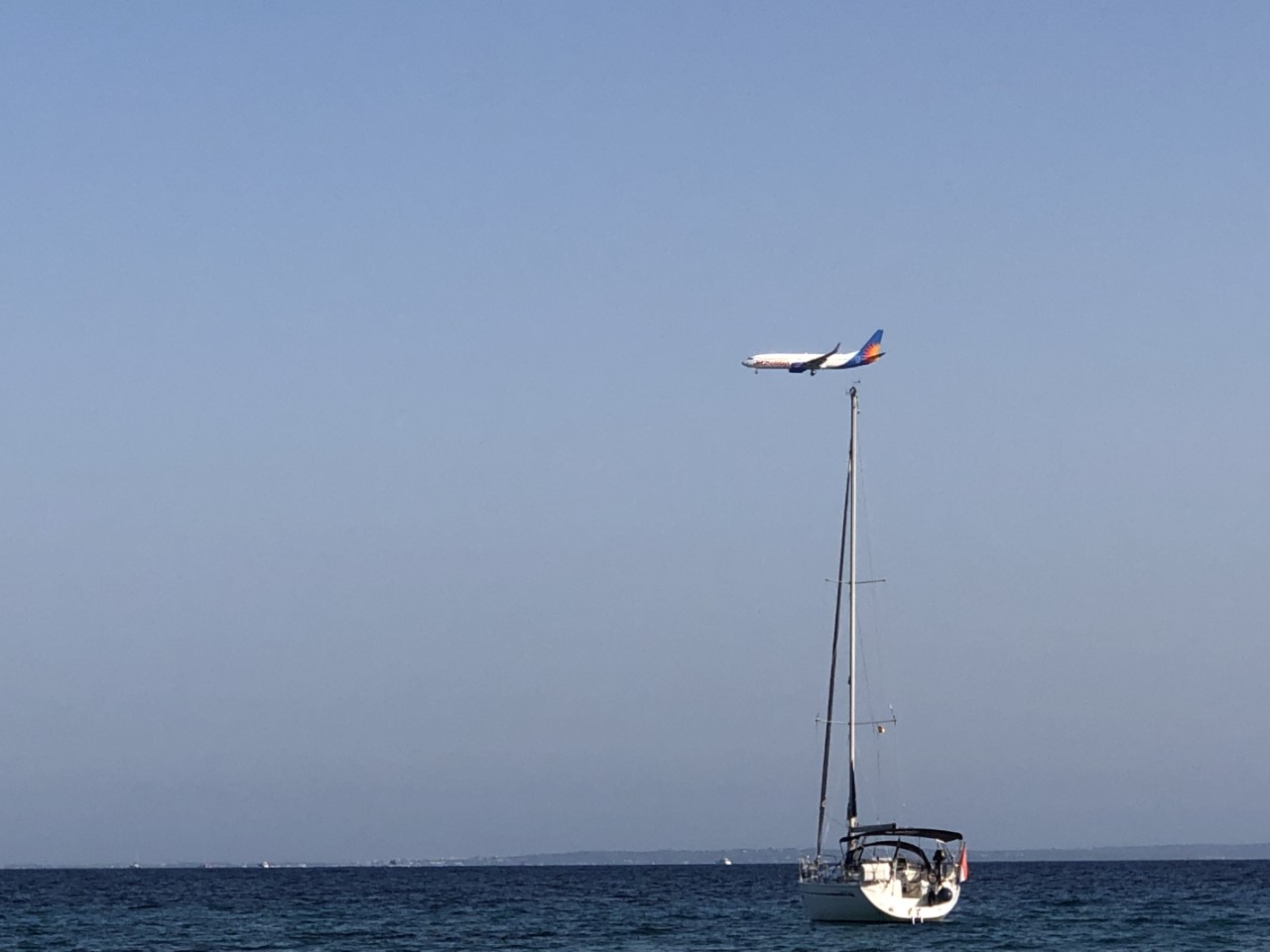 Als het wat rustiger op het strand is, zo rond 18:00 uur, zijn we met de rubberboot op pad gegaan, om te kijken of we toch hier naar een supermarkt kunnen. We wandelen langs de rotsen en we hebben samen even vanaf de hoogte de baai ingekeken, hoe de Just ligt te dobberen. Marianne gaat weer terug naar het strandje en ik doe een poging om 2 km verderop naar de supermarkt te gaan. Als ik op weg ben, heb ik ook weer internet. Ik zoek de route op en helaas, toen kreeg ik een melding, dat de winkel al om 17:00 uur gesloten is. Dus ben ik terug gewandeld naar het strandje met een lege knapzak. Marianne gaat zwemmend naar de Just, waar we na een warme douche, de koelbox hebben geplunderd. Nu maar kijken waar we morgen heen gaan, hopelijk gaan we dan wel direct naar ons doel, afhankelijk van de wind.