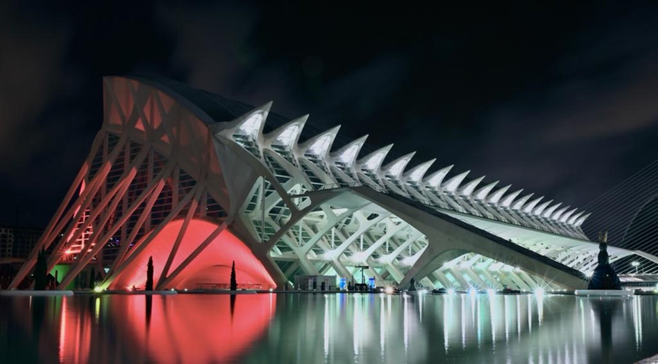 In Spanje ben je verplicht om op een elektrische step een helm te dragen. Wij gaan dan ook op zoek naar een Decathlon om aan die verplichting te voldoen. Inmiddels is het al donker geworden en we gaan nog even terug naar de “Stad van Kunst en Wetenschap” om daar te kijken hoe het daar in de avond is met alle verlichting van de bijzondere gebouwen. Het is heel mooi, maar we hadden iets meer van de verlichting verwacht.
