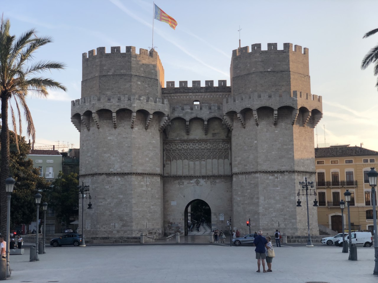 Na wat winkelen in dit centrum hebben we de fietsen en de step weer opgezocht. Ons volgende doel is het park dat door de stad gaat. Het was ooit een rivier. Echter na een grote overstroming in 1957 is er in de jaren tachtig na demping van de rivier een negen kilometer lang park ontstaan. We vinden het heel mooi aangelegd. Het is apart om door de rivierbedding te fietsen en onder de vele historische bruggen die over droog land gaan door te gaan. Overal door Valencia zijn de wegen uitgerust met een tweerichtingen fietspad. Zelfs in Nederland wordt er niet zoveel rekening gehouden met de fietsers als in deze stad. Het fietsverkeer op deze paden gaat op hoge snelheid door de vele elektrische fietsen en stepjes en dat samen met het grote aantal gebruikers van de paden is het best druk.